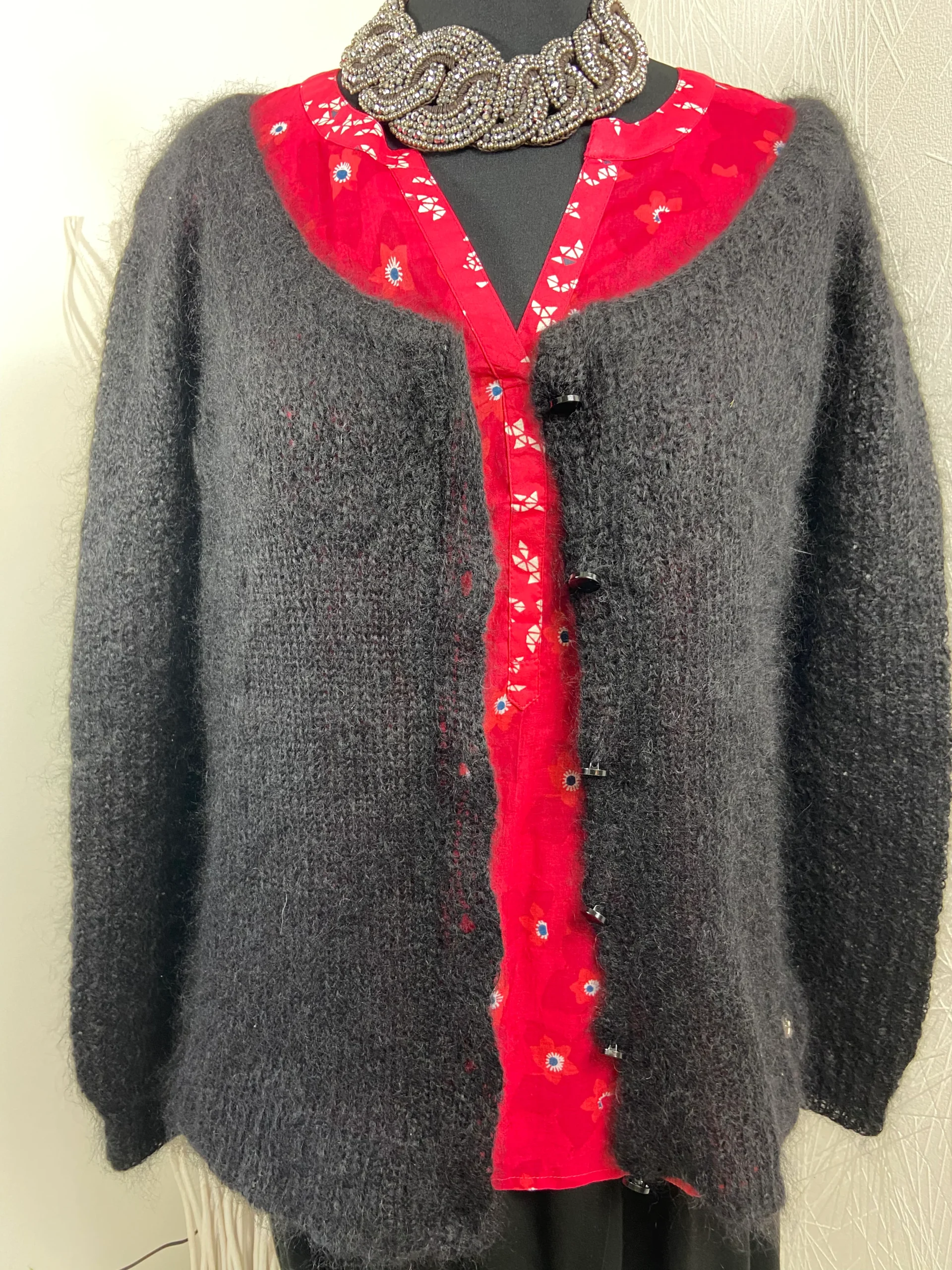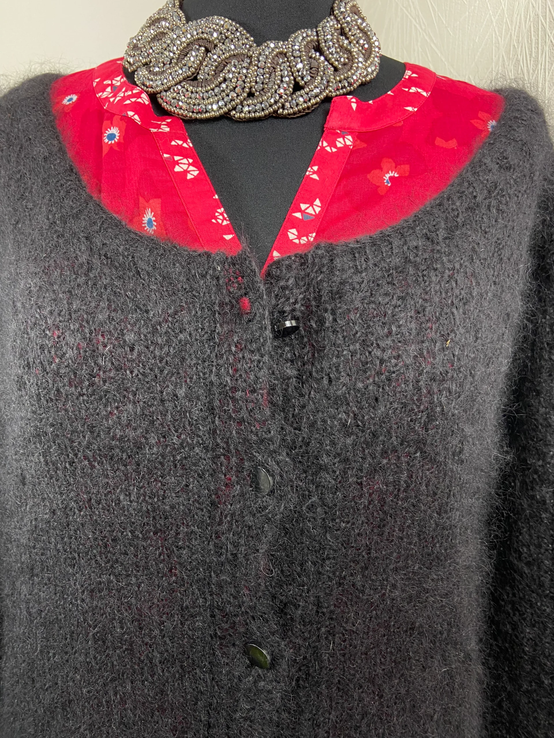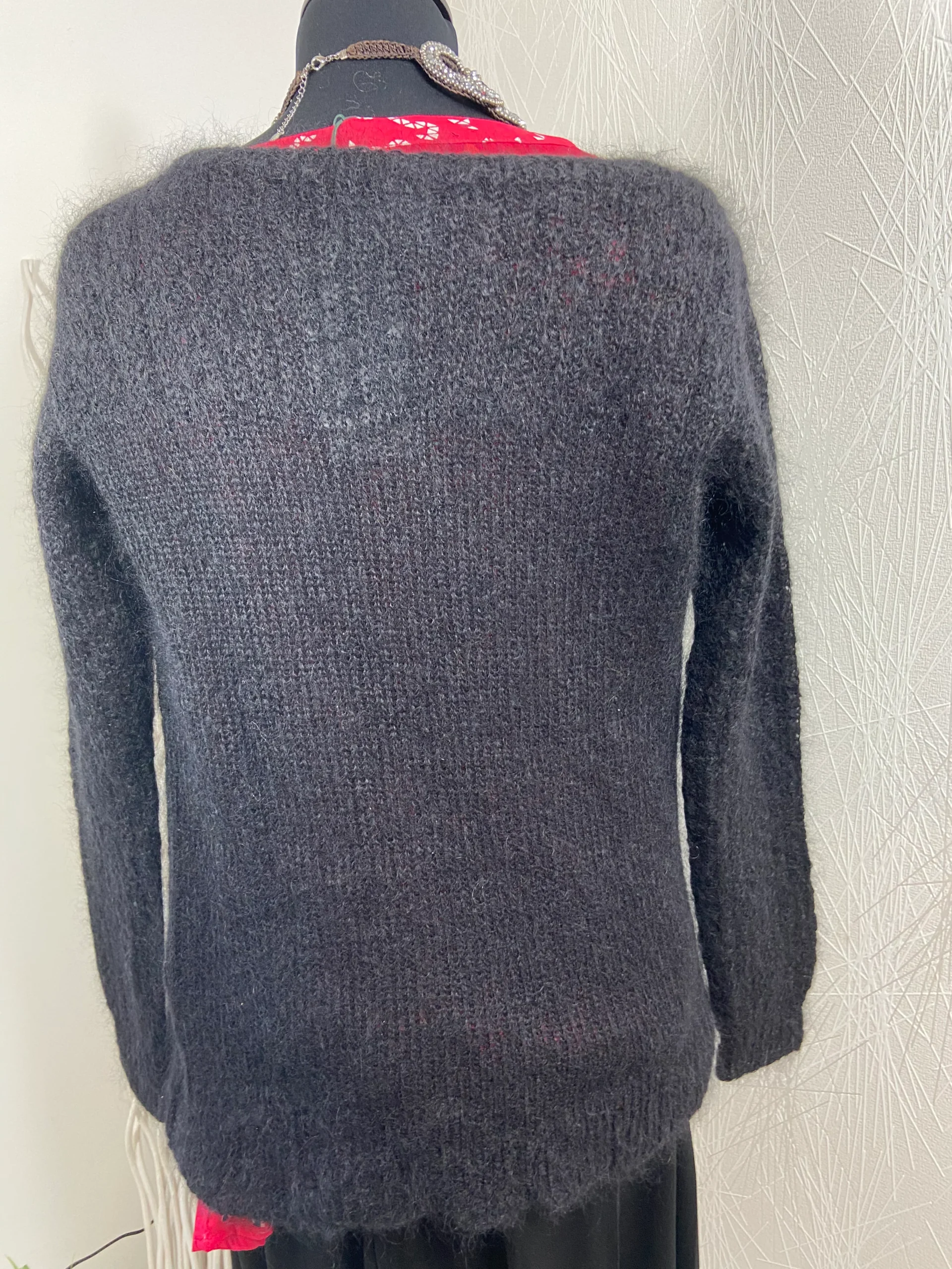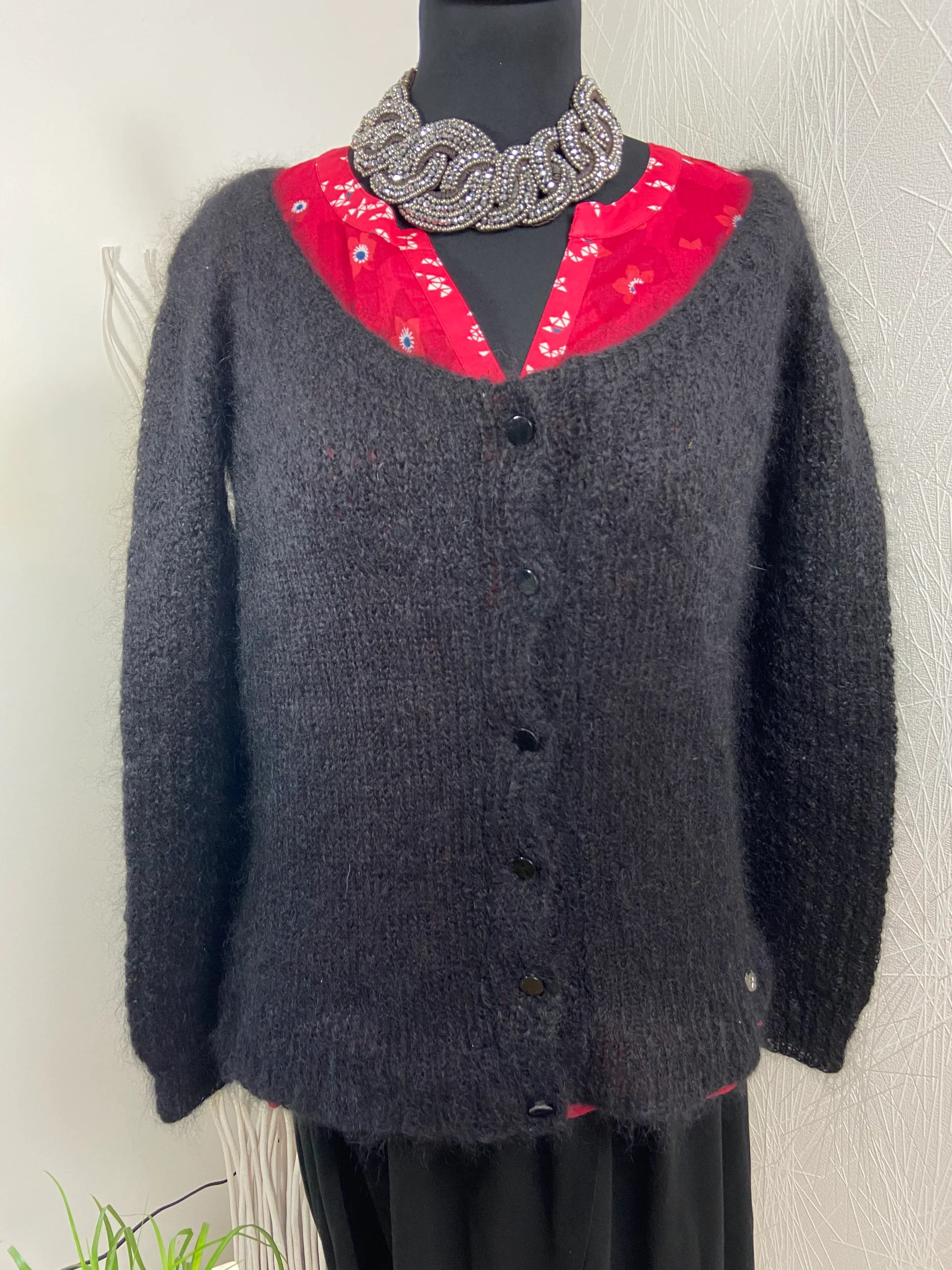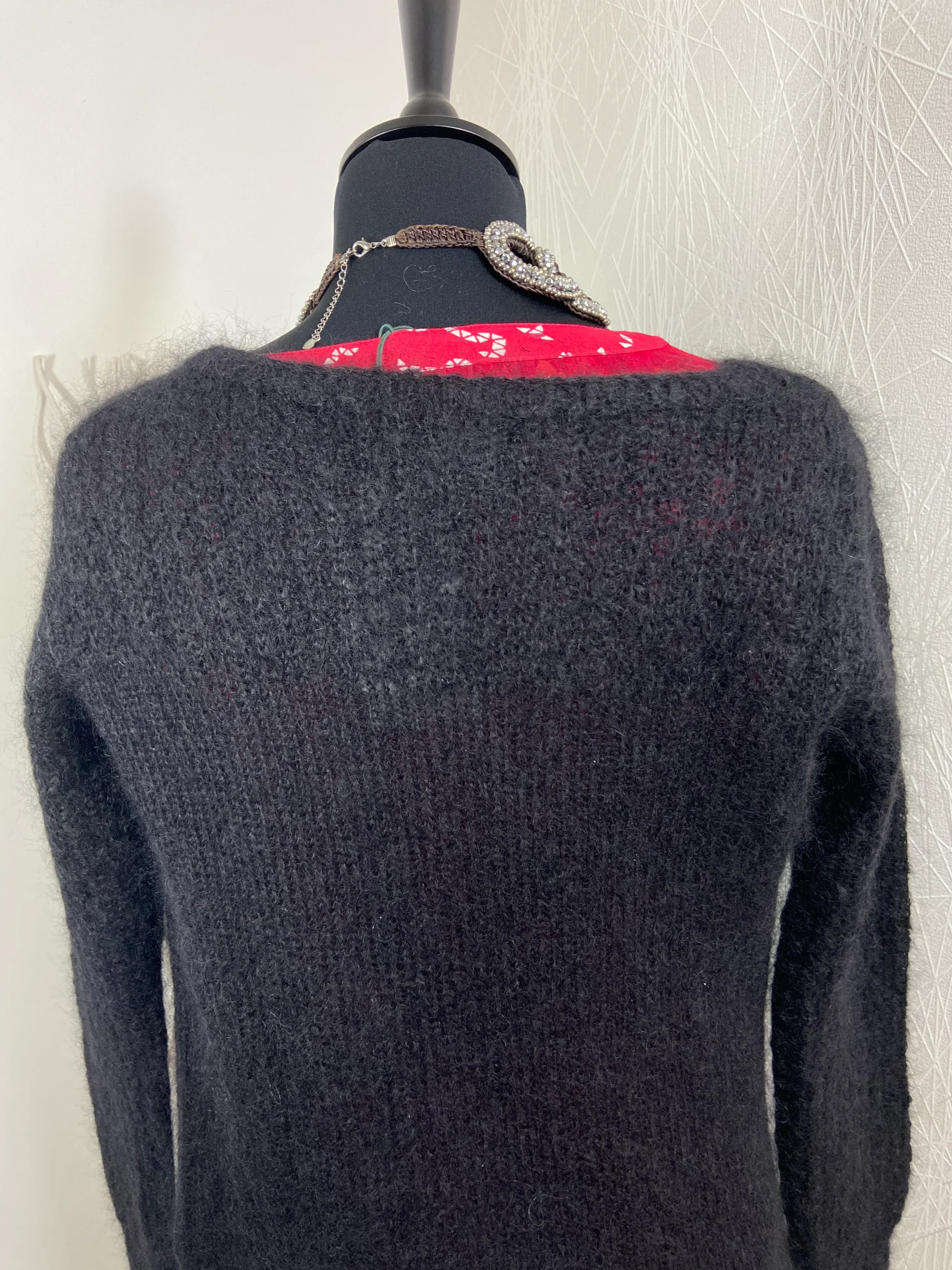 Gilet court noir manches longues laine mohair et soie Substance Biarritz