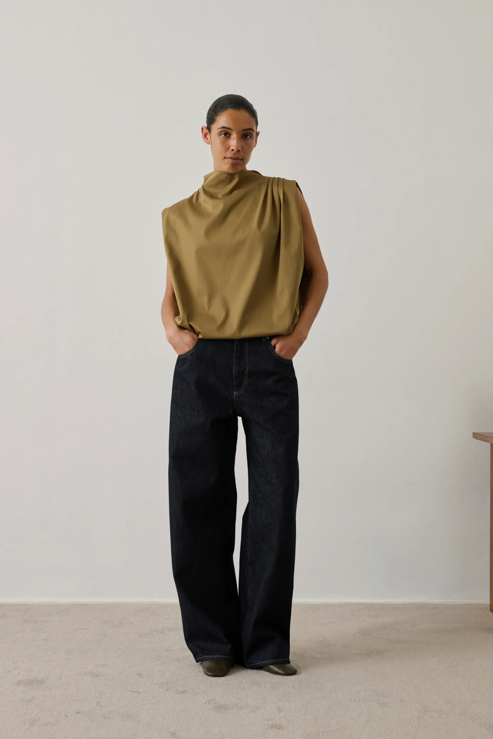 – Coupe oversize – Jambes longues – Ouverture boutonnée devant et braguette – Deux poches devant et dos – Détails de boucle martingale et rivets au dos