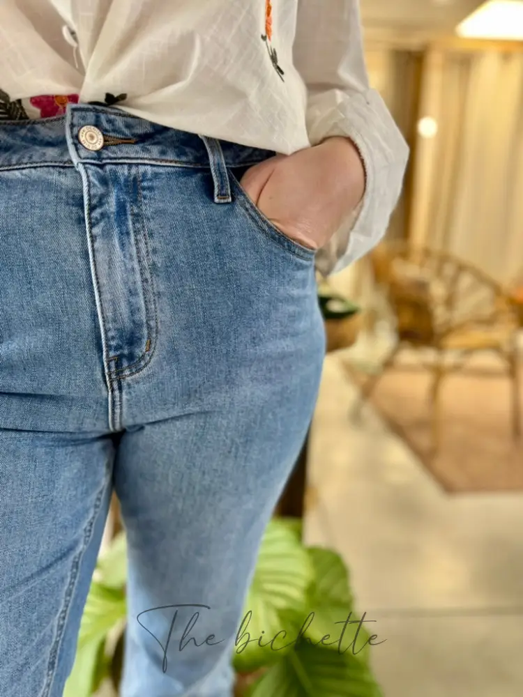 Jean droit large, il va suivre la jambe sans la coller • Oraije Taille haute Fermeture par zip et bouton Passants pour ceinture 5 poches