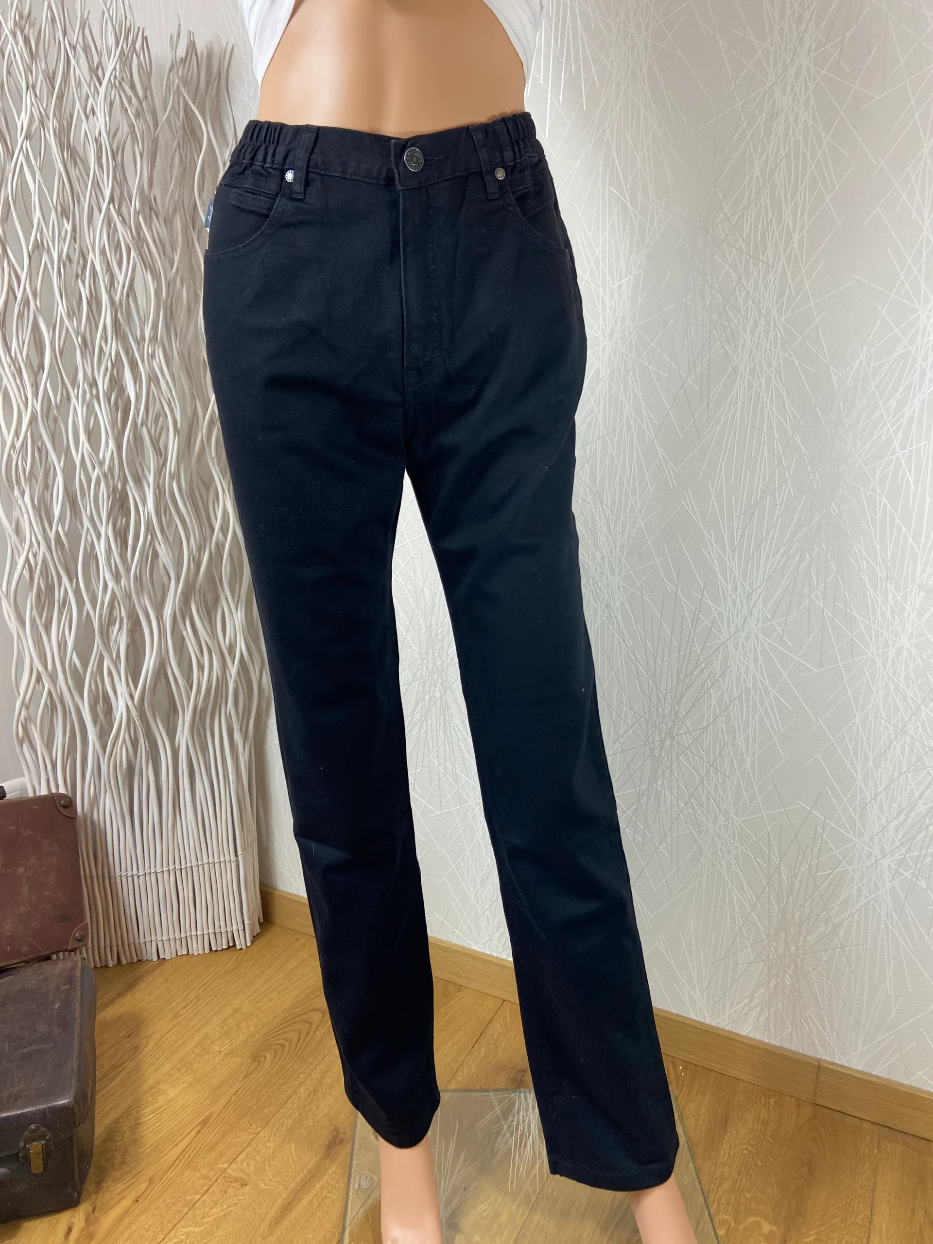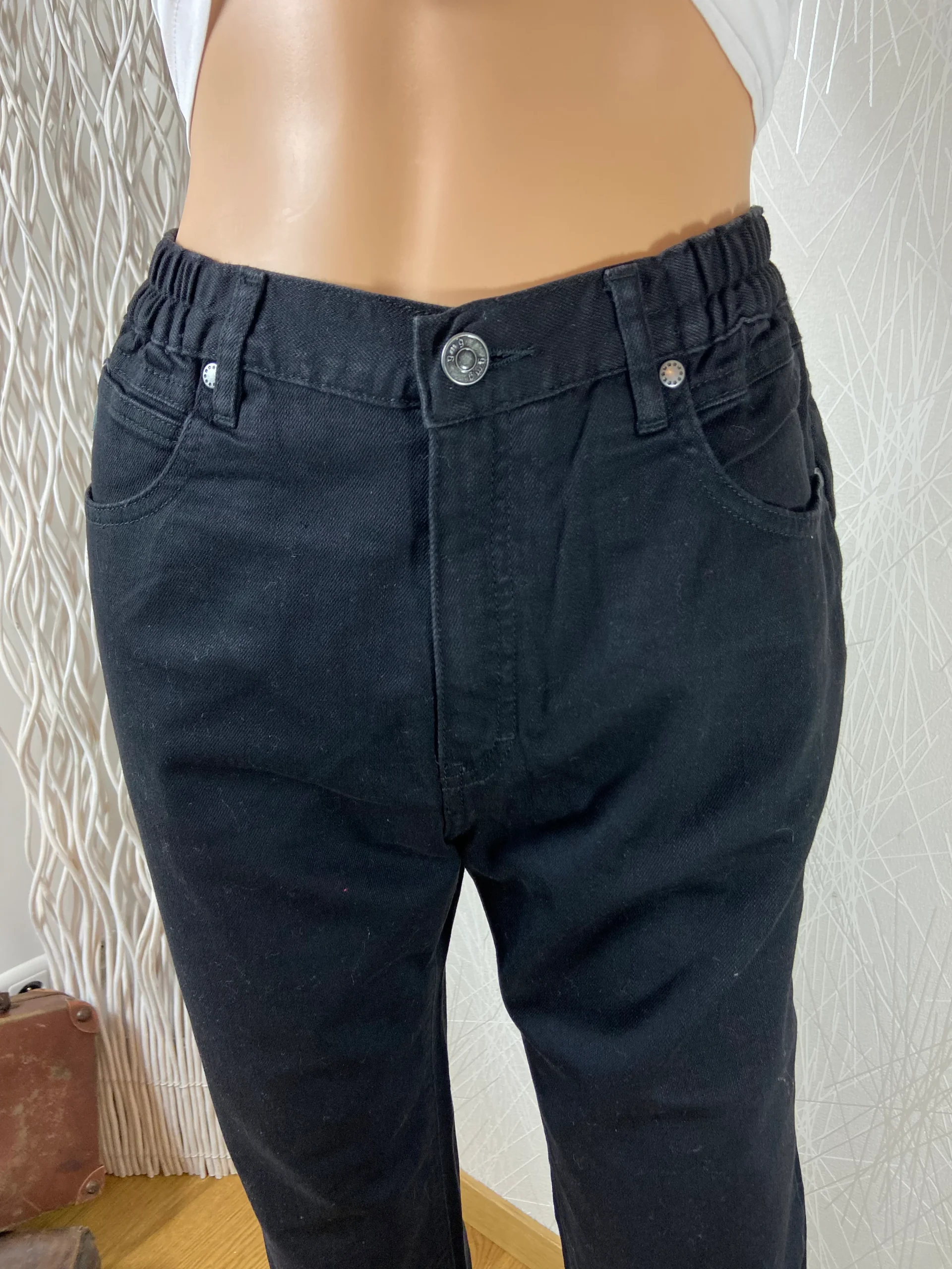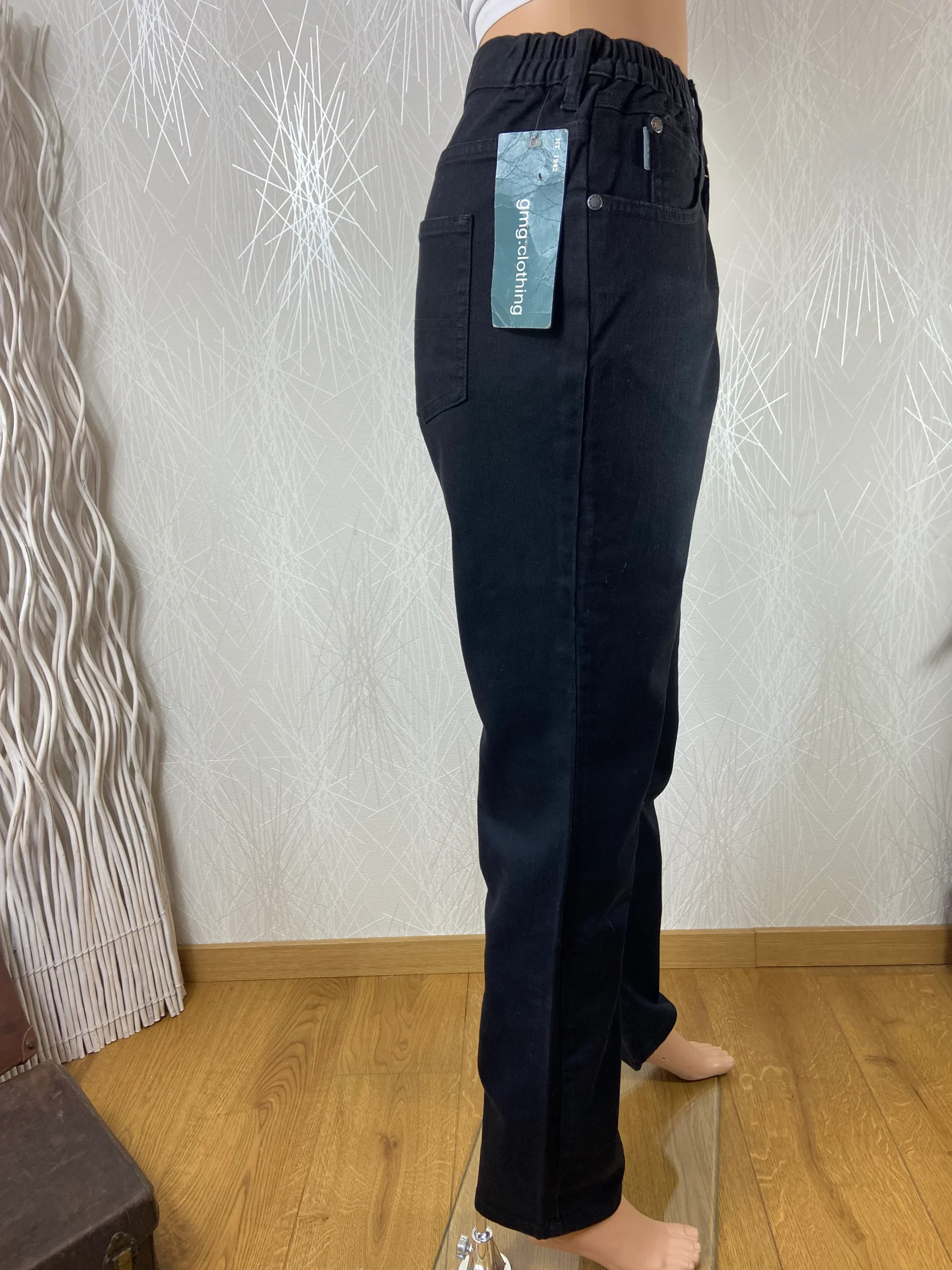 Jean noir taille haute coupe droite taille elastique GMG