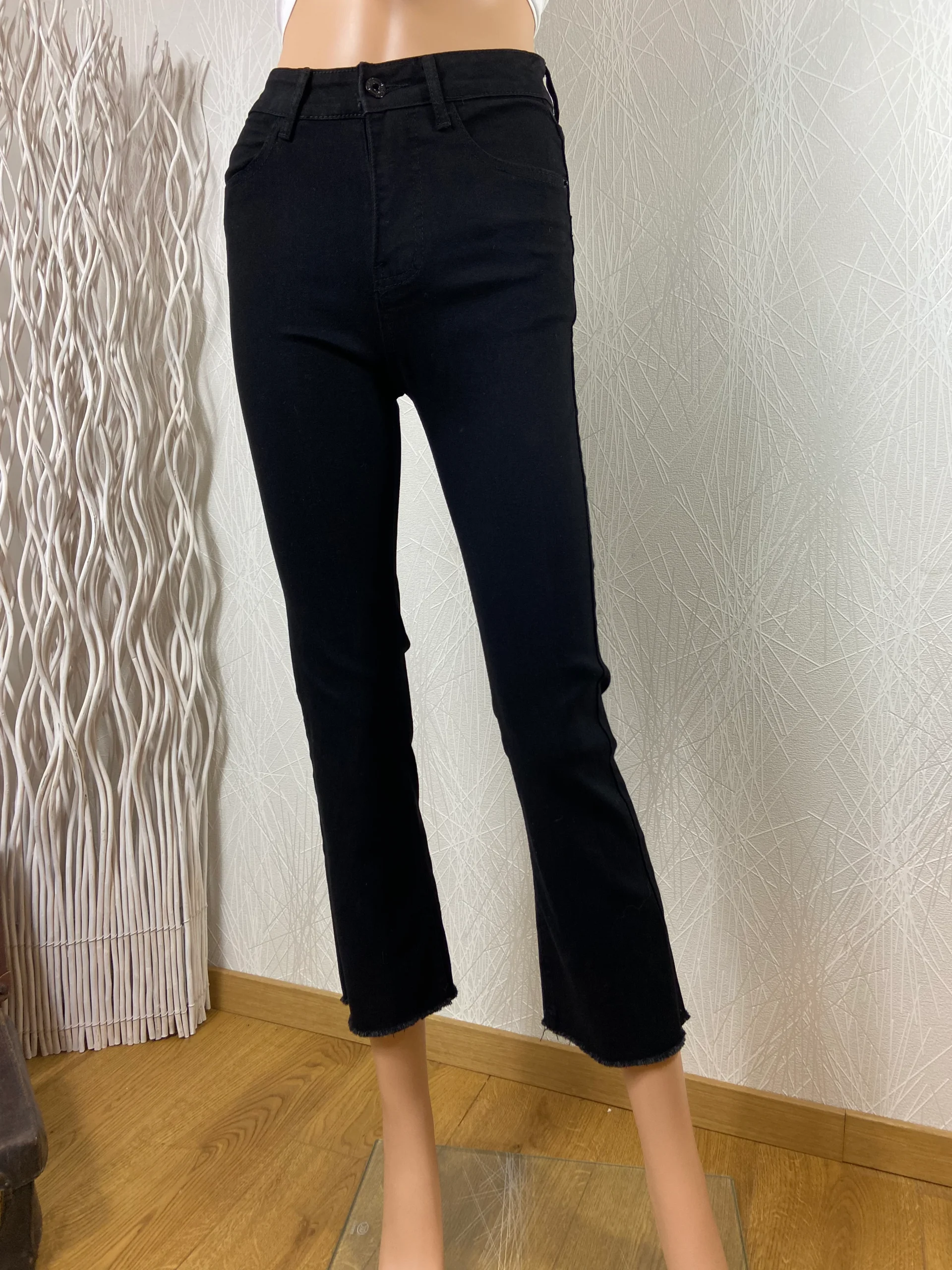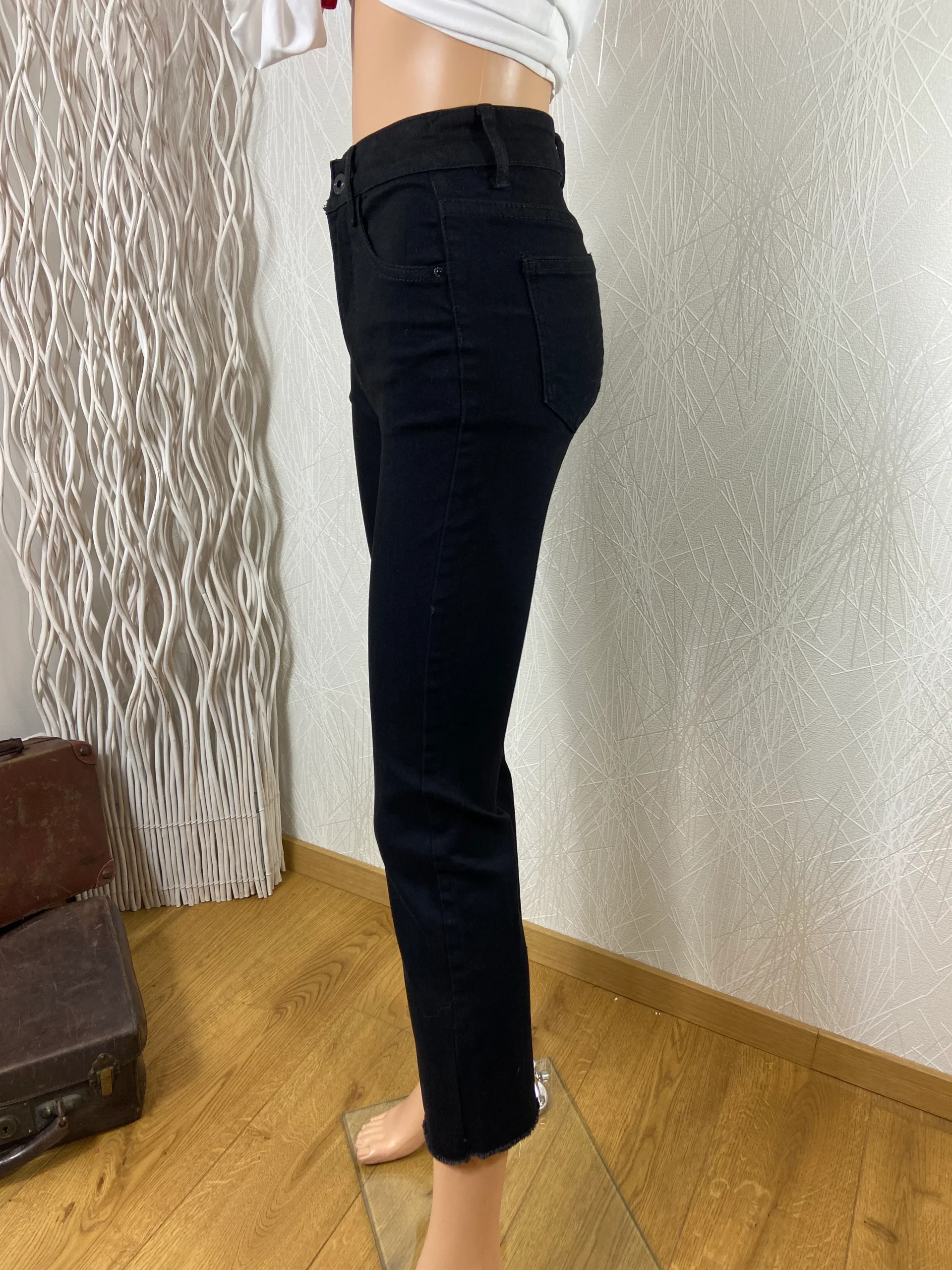 Jean noir taille haute coupe slim ourlet frangé Dorado