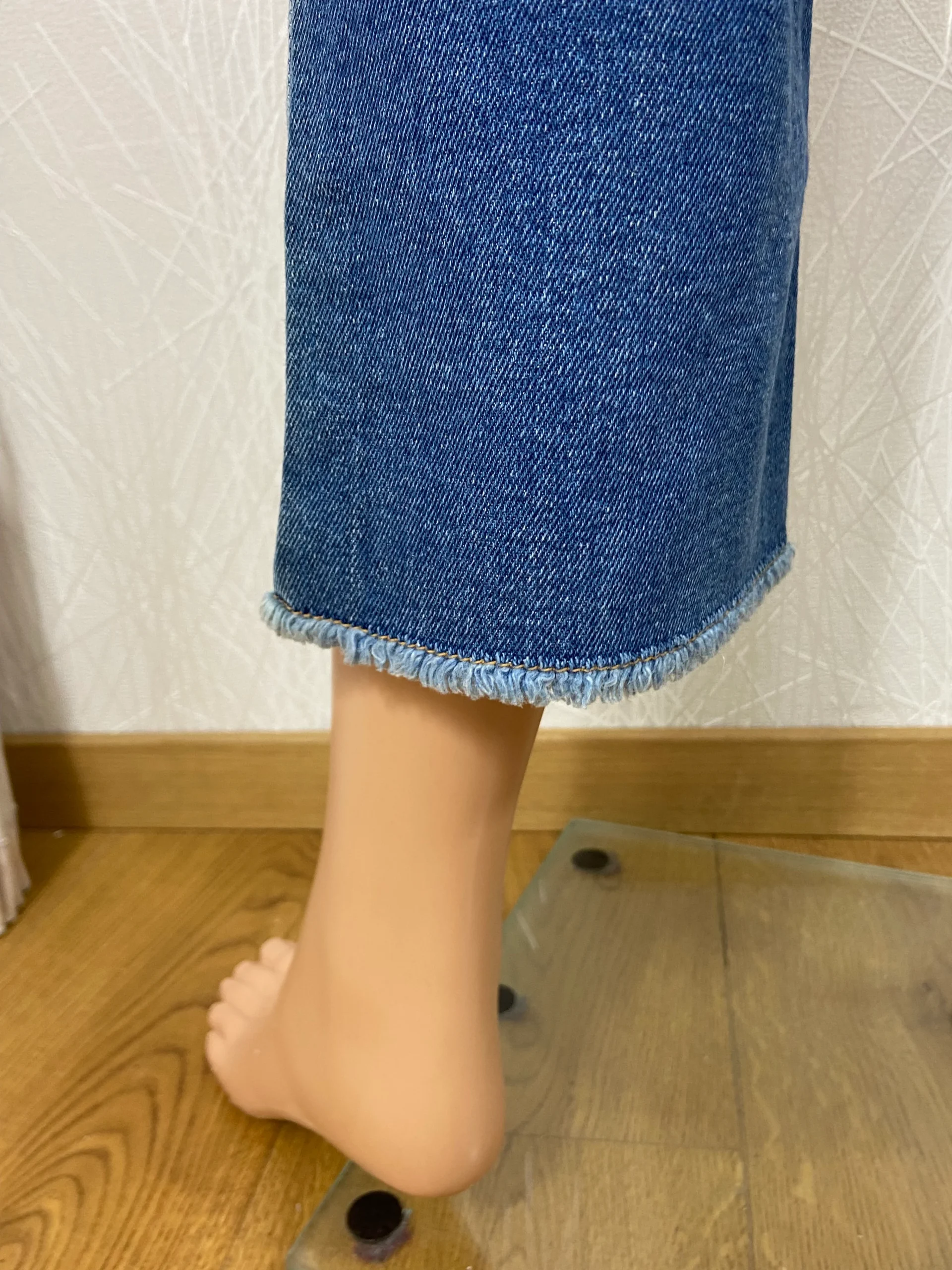 Taille mi-haute, coupe près du corps, 3 poches à l’avant, 2 poches à l’arrière, fermeture zip et bouton.