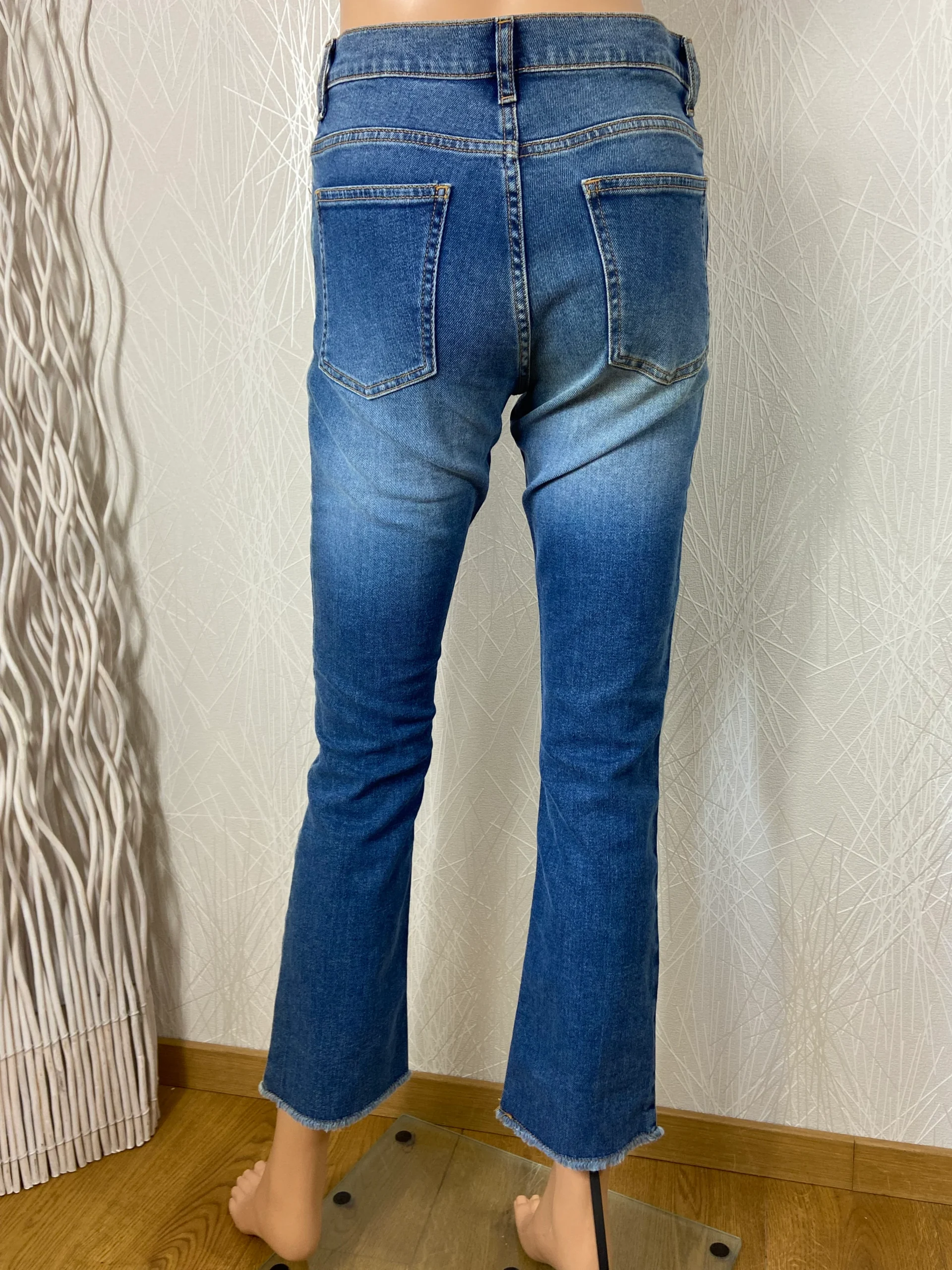 Jean skinny bleu 7/8 pour femme de la marque Acquaverde. Taille mi-haute, coupe près du corps, 3 poches à l’avant, 2 poches à l’arrière, fermeture zip et bouton. Matière : 98% coton – 2% élasthanne Couleur : Bleu Marque : Acquaverde Taille : S / 36 – Réf : 36SJ5928 Dimensions : Tour de taille […]