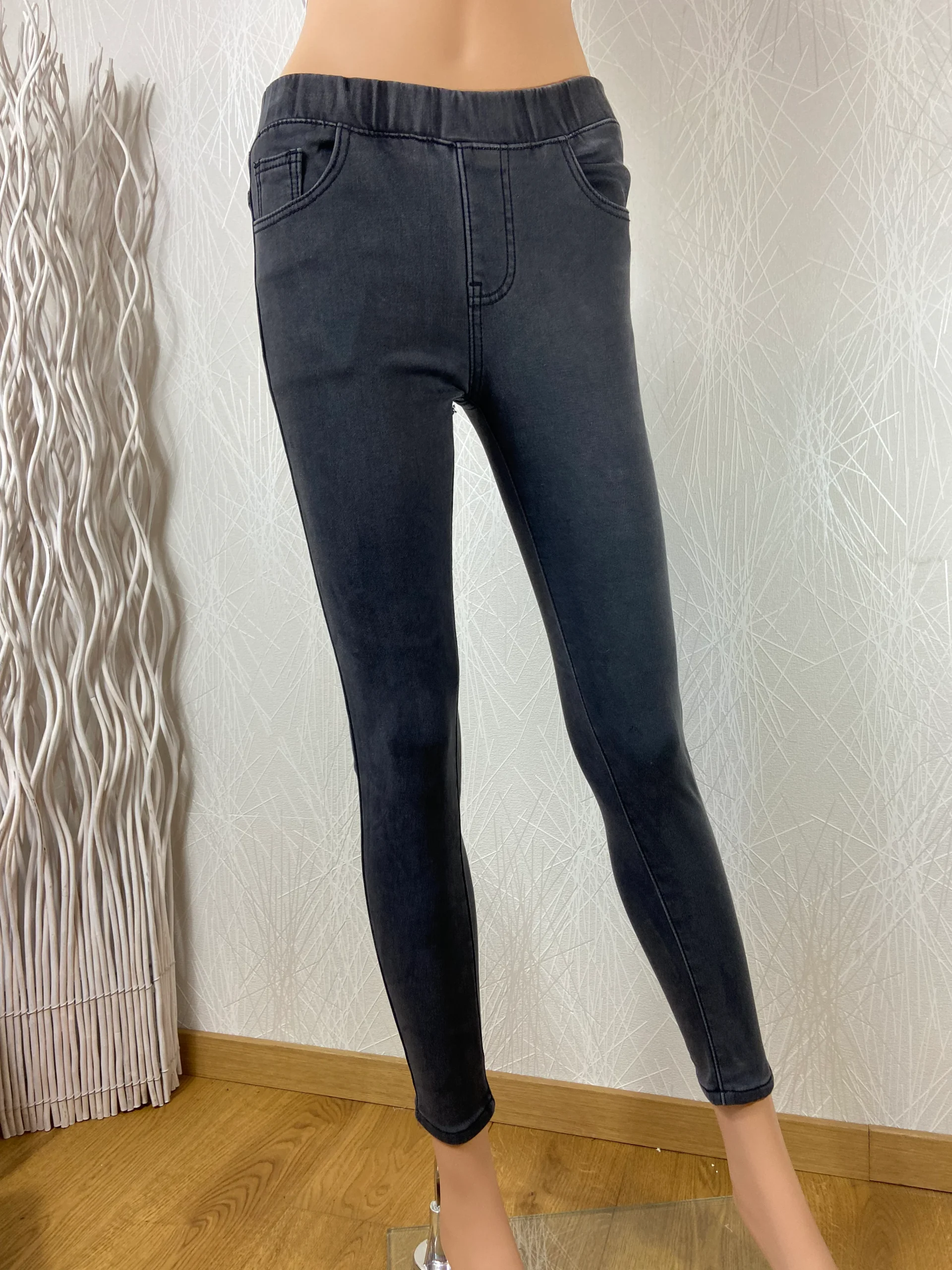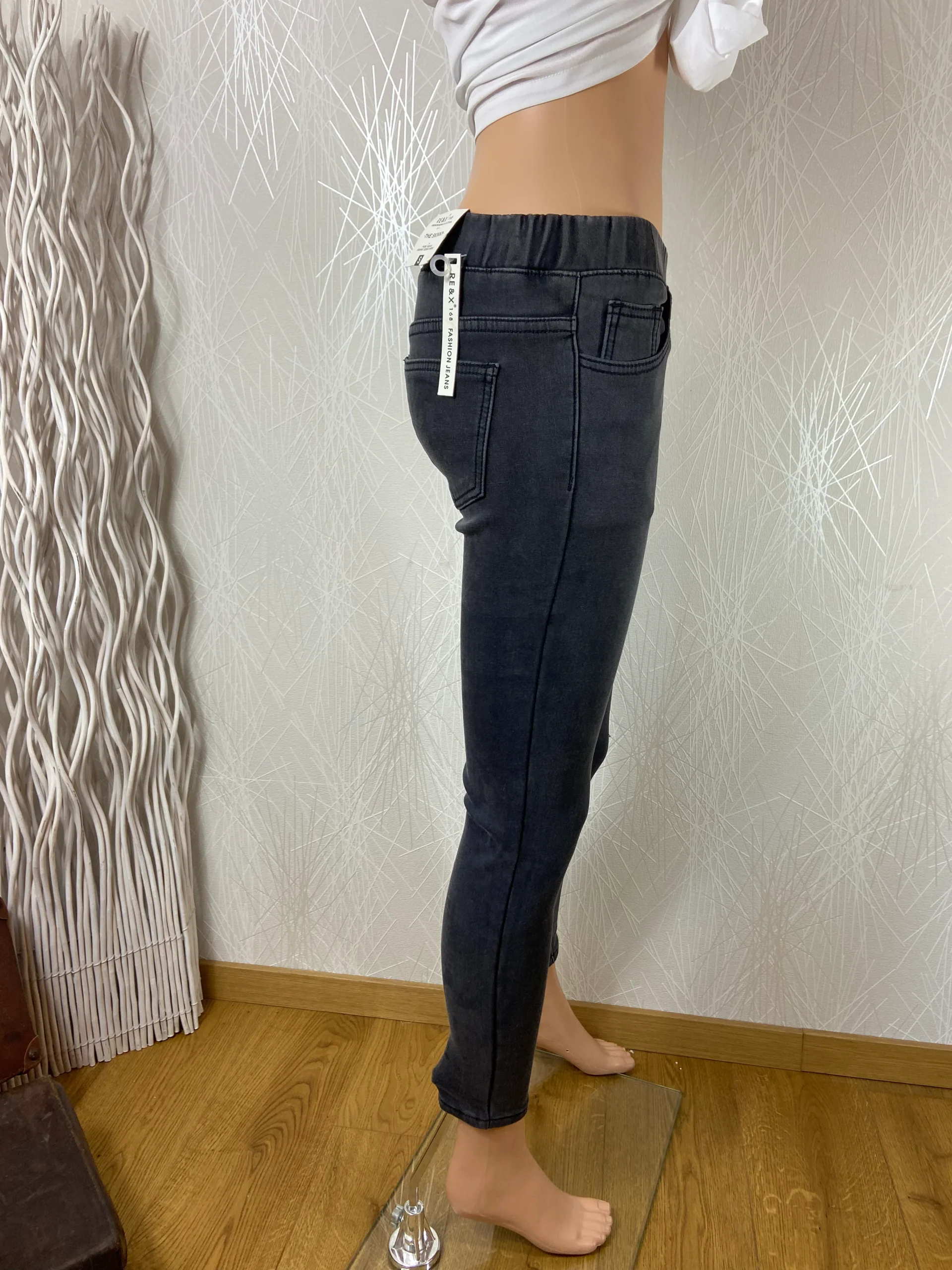 Jean slim gris taille moyenne skinny leg taille elastique Re&X