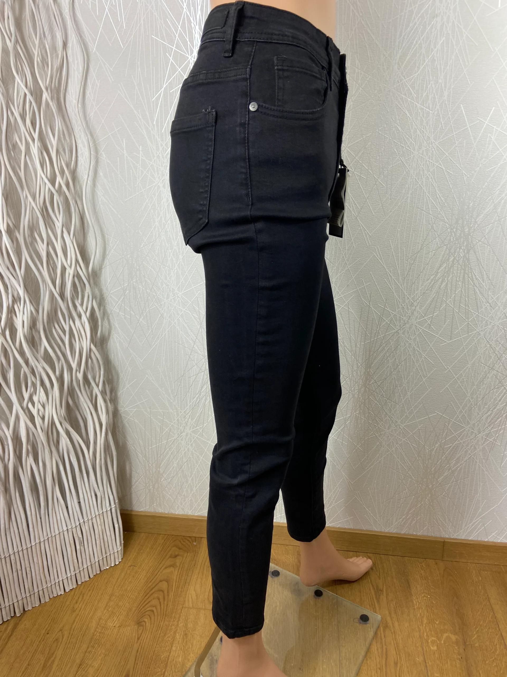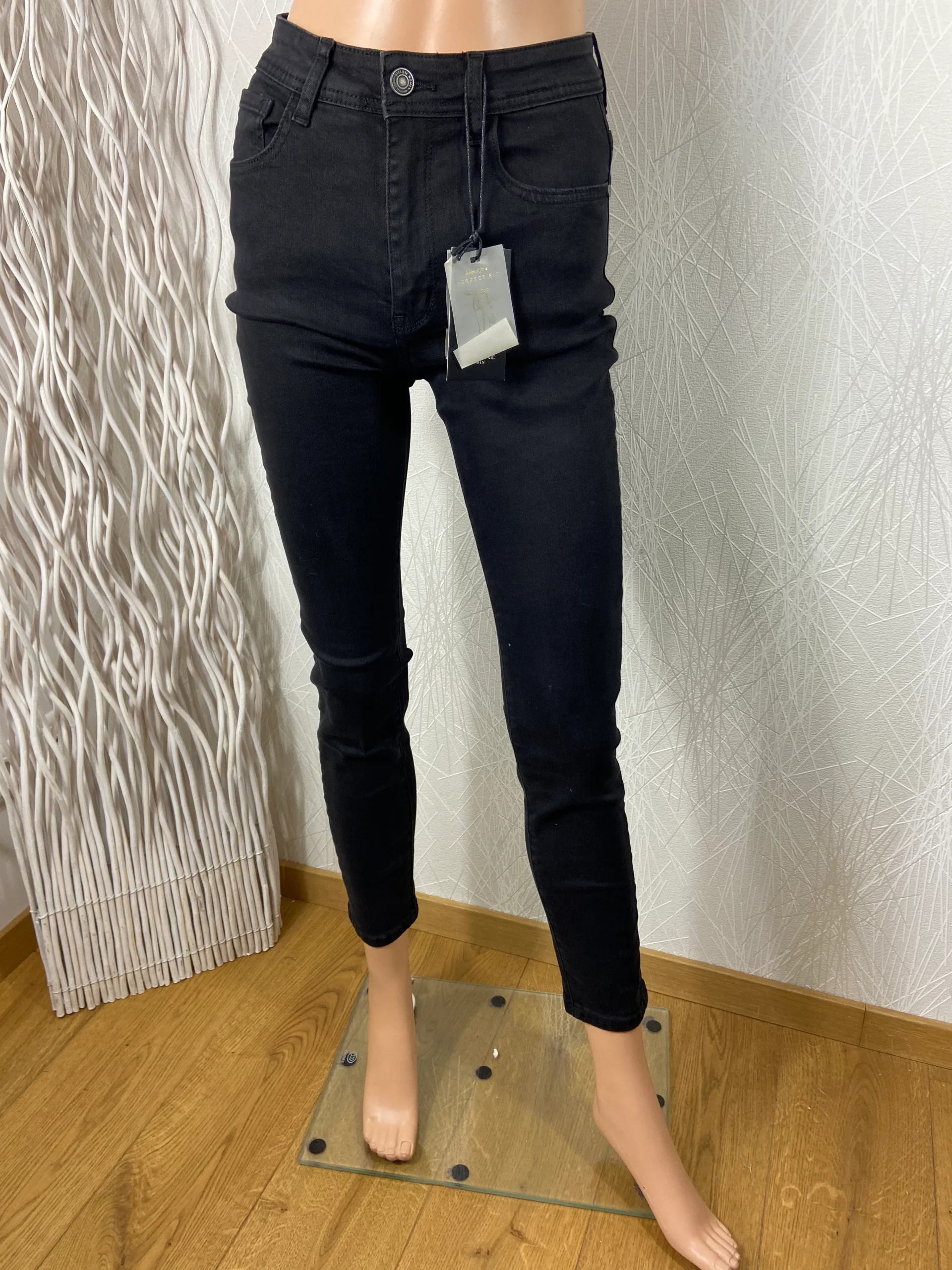 Beau jeans slim noir pour femme à ajustement parfait avec 5 poches de la marque Deeluxe