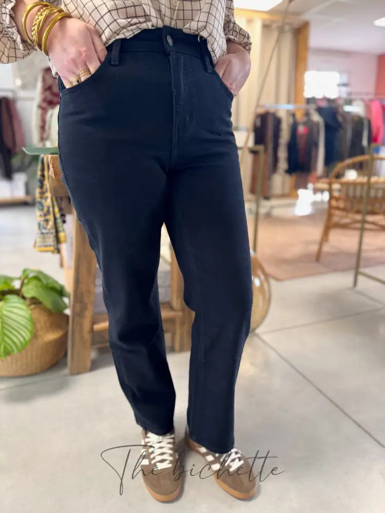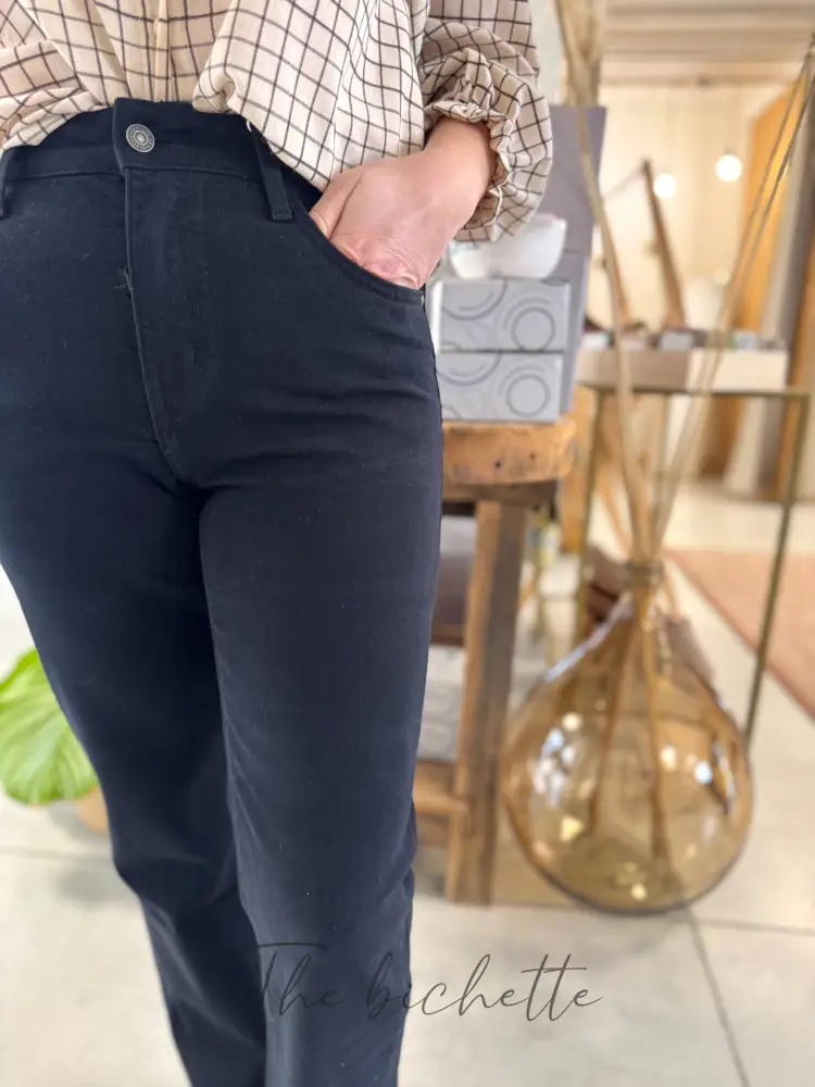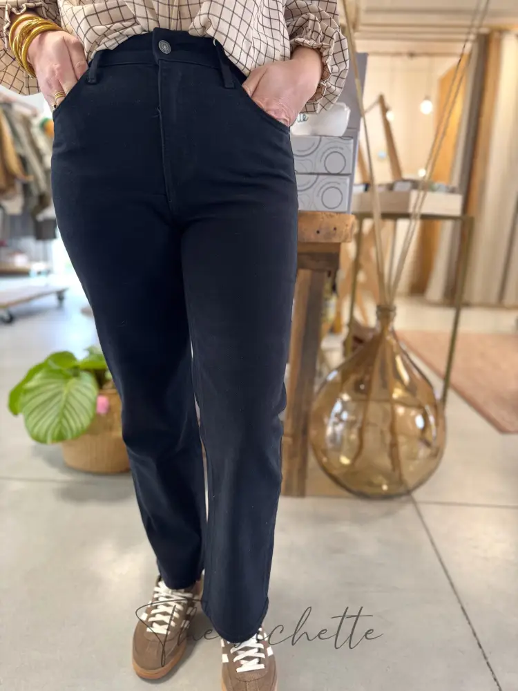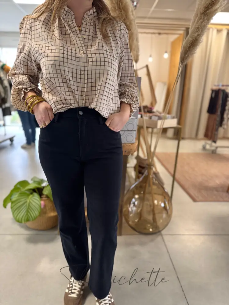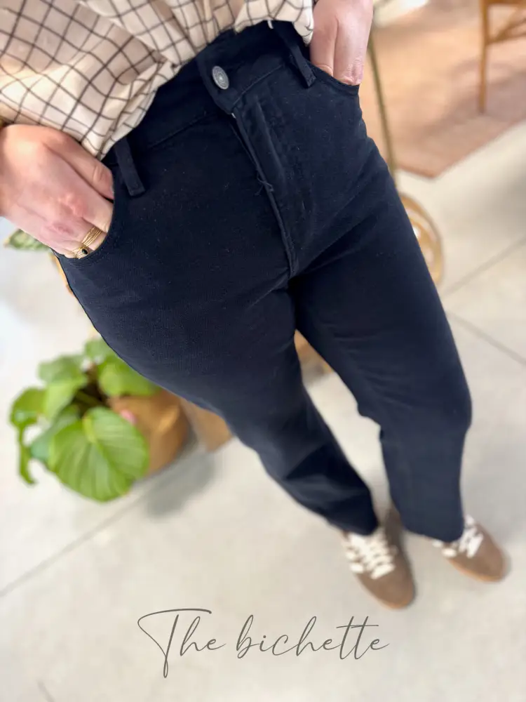 Jean Solange, un jean à coupe droite • Oraije Taille haute Passant pour ceinture Fermeture par bouton et zip 5 poches Coupe courte : idéale pour les bichettes mesurant moins de 1,70m
