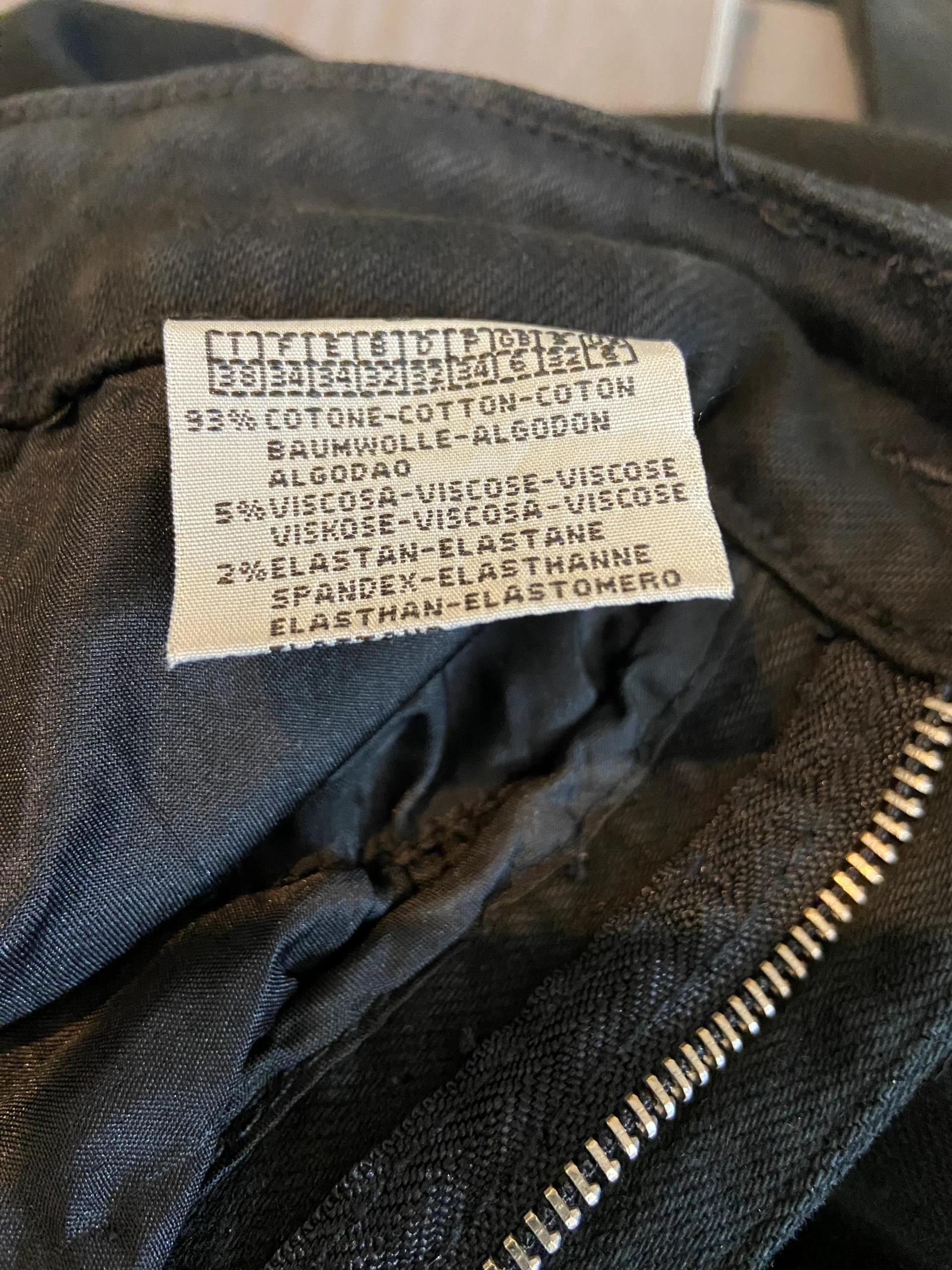 Dimensions Taille 34 : Tour de taille : 62 cm ; longueur entrejambe : 64 cm ; longueur : 92 cm.