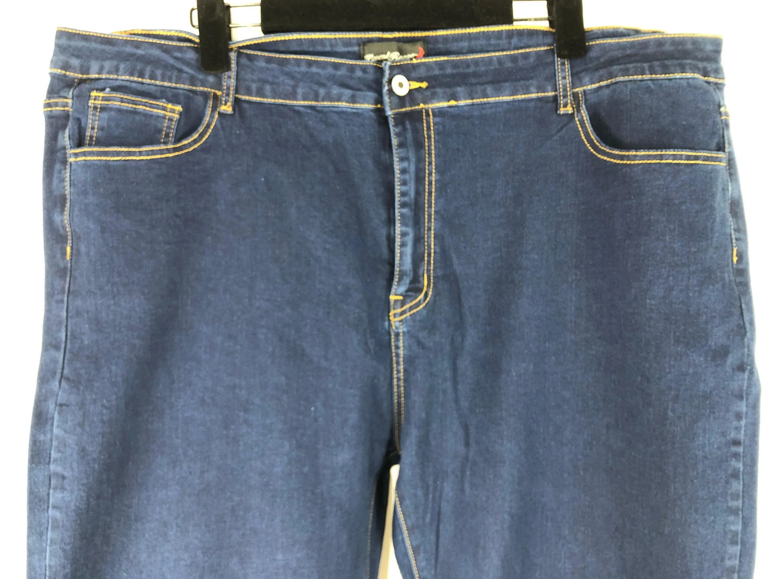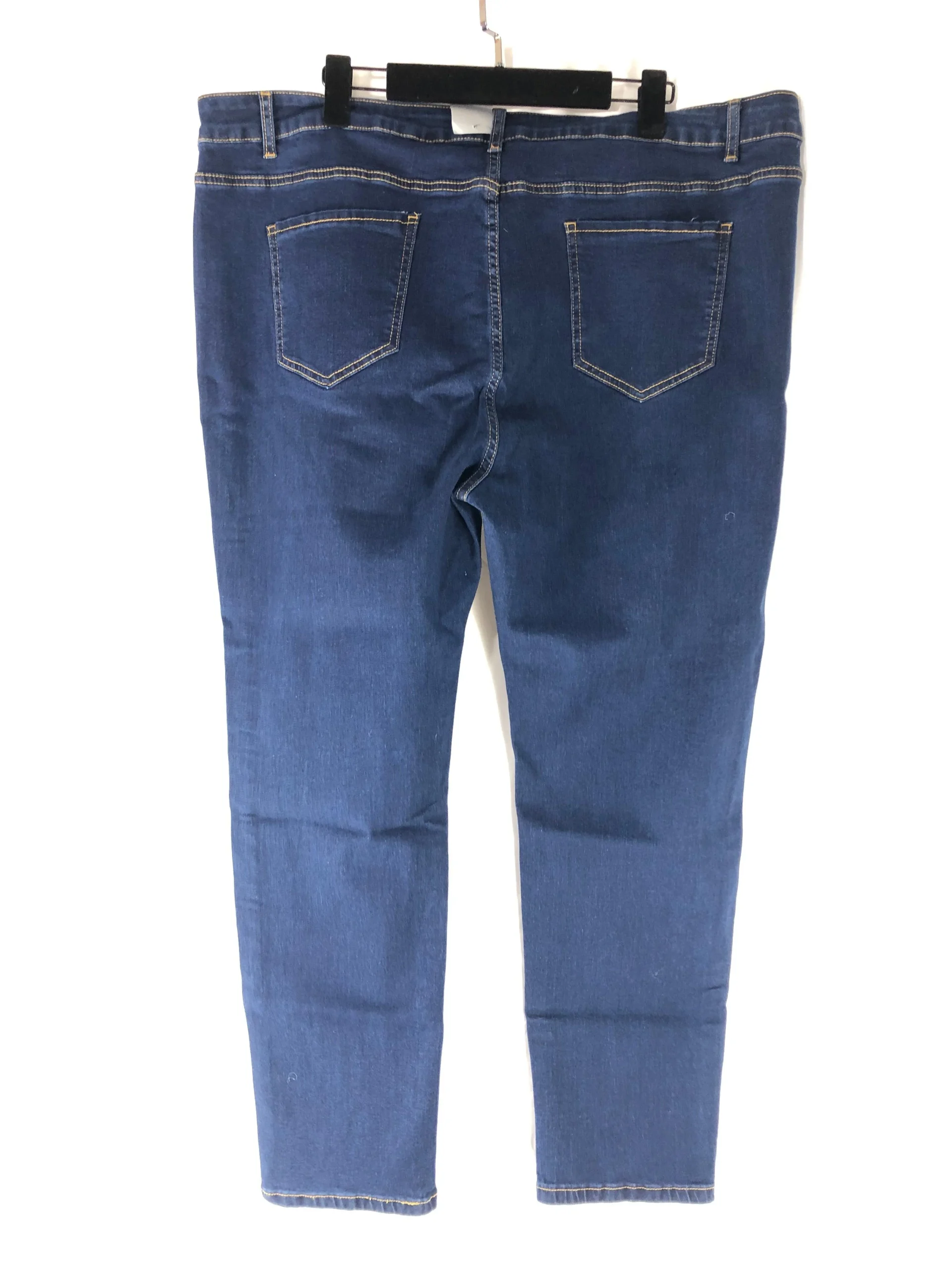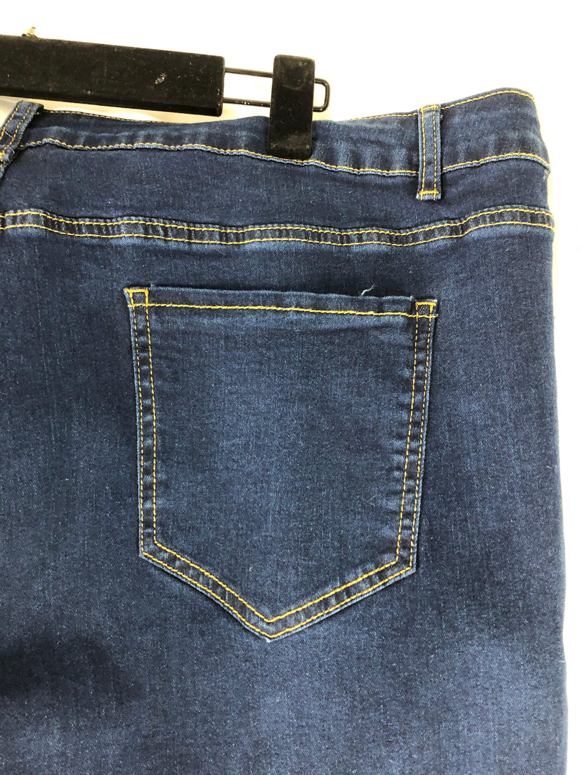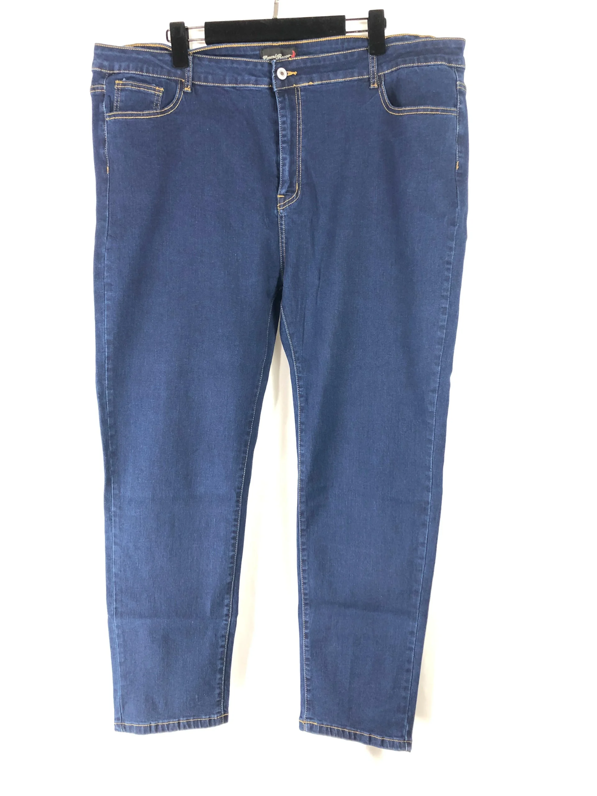 Jeans brut stretch pour femme, 5 poches, fermeture zip et bouton. Jeans souple pour femme de grande taille à petit prix. Taille 54 Tour de taille 112cm entre jambes 72 cm longueur totale 106c m 95% coton ; 5% lycra élasthanne Réf: 54DP1236 Valeur en boutique 55 €
