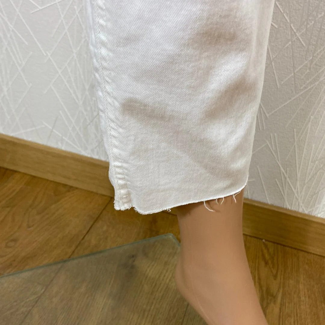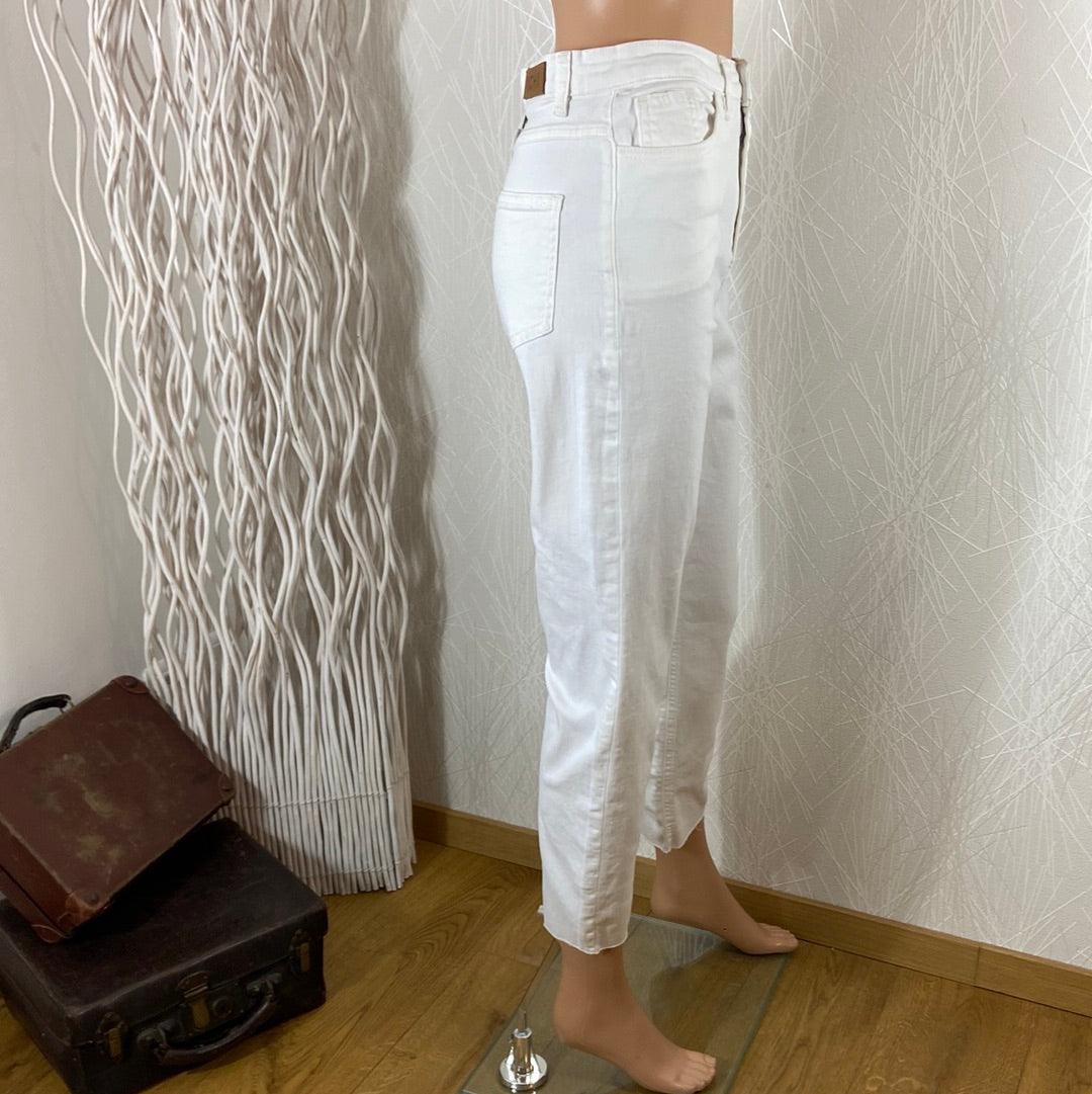 Jeans femme coton blanc taille haute coupe droite Ihziggy Raven Ichi