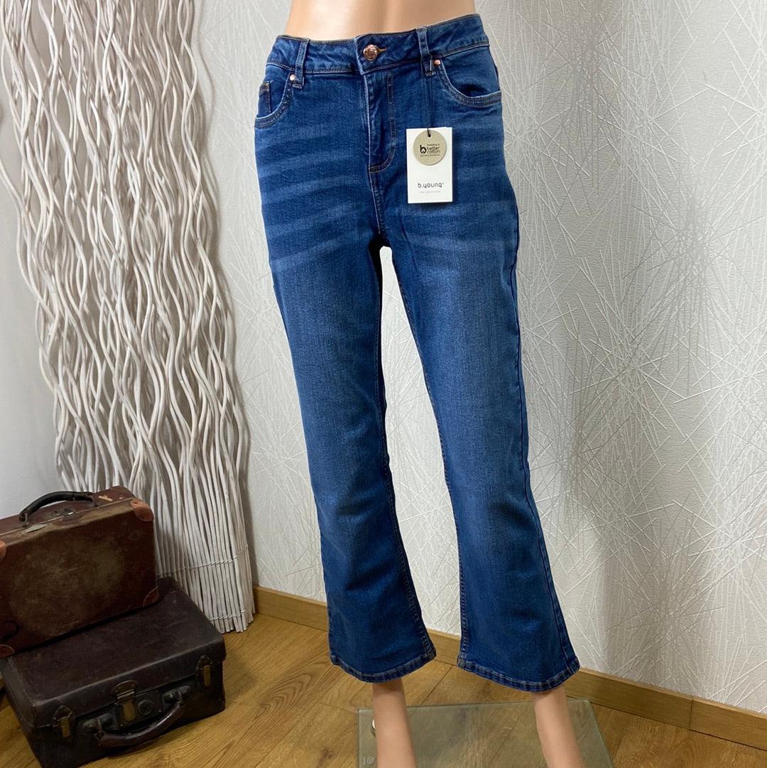 Jeans en coton denim bleu pour femme modèle Byola Bylessa Lola de la marque b.young. Taille normale, effet délavé sur l’avant, 3 poches à l’avant, 2 poches à l’arrière, fermeture bouton et zip. Matière : 99% coton – 1% elasthanne Couleur : Bleu Marque : b.young Dimensions Taille française 37 (Taille américaine 27) : Tour […]