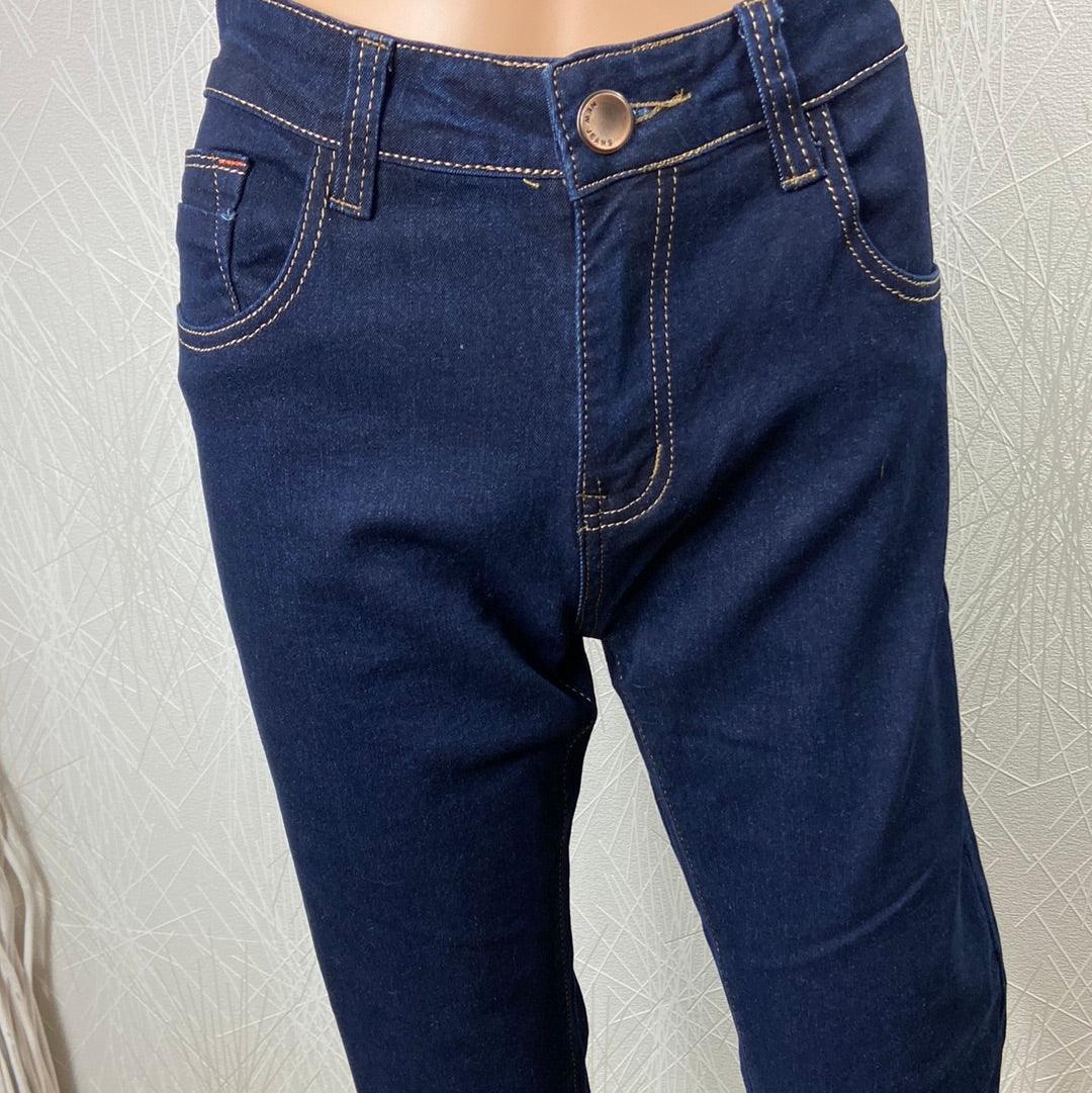 Jeans pour femme en denim bleu foncé de la marque Leggendario. Taille mi-haute, coupe près du corps, couture contrastée orange, fermeture bouton et zip. Matière : 70% coton – 28% polyester – 2% elasthanne Couleur : Bleu foncé Marque : Leggendario Dimensions Taille 42 : Tour de taille : 84 cm ; longueur entrejambe : […]