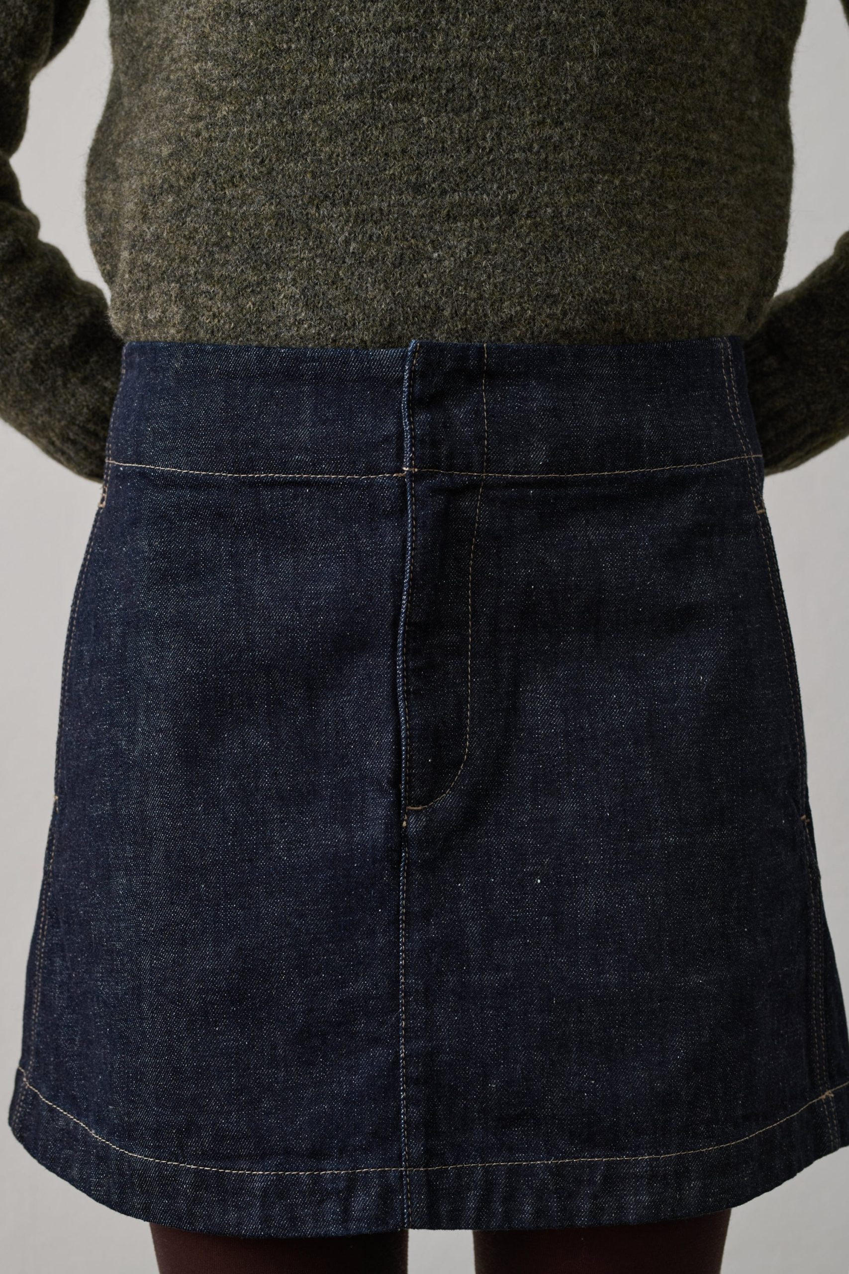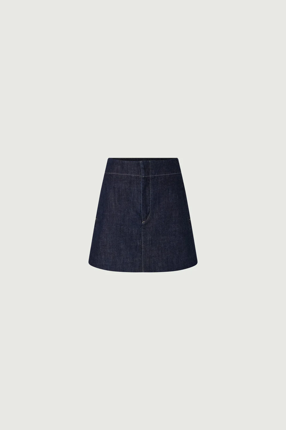 BETSY est une mini jupe en jean à la coupe trapèze. Courte et mi-cuisses, elle se ferme par un zip et des crochets invisibles. Ses poches côtés et surpiqûres blanches contrastées accentuent sa taille haute, allongeant la silhouette. Le denim brut assure une tenue impeccable.