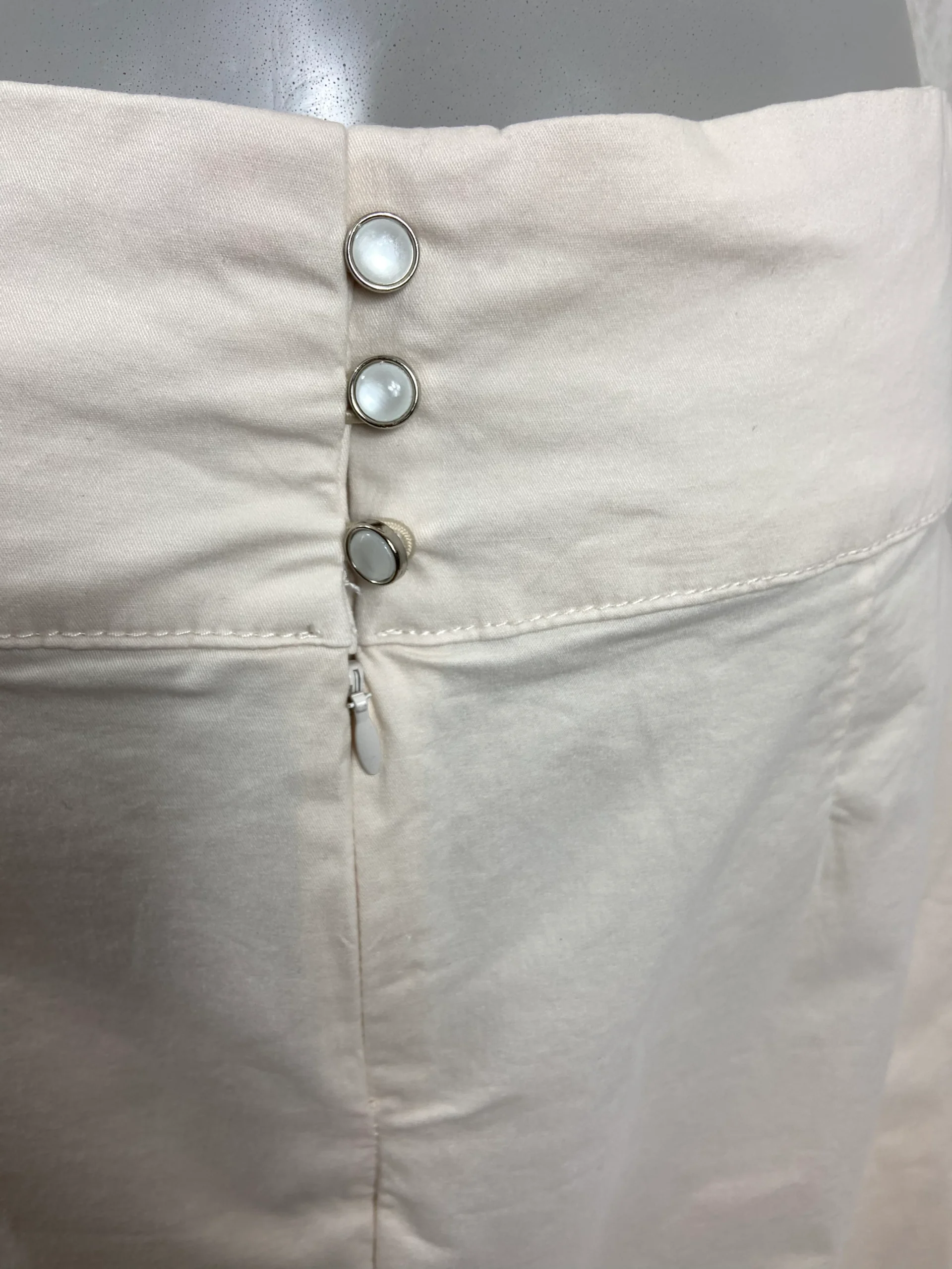 Coupe en trapèze, 3 boutons nacrés à l’arrière et fermeture à zip.