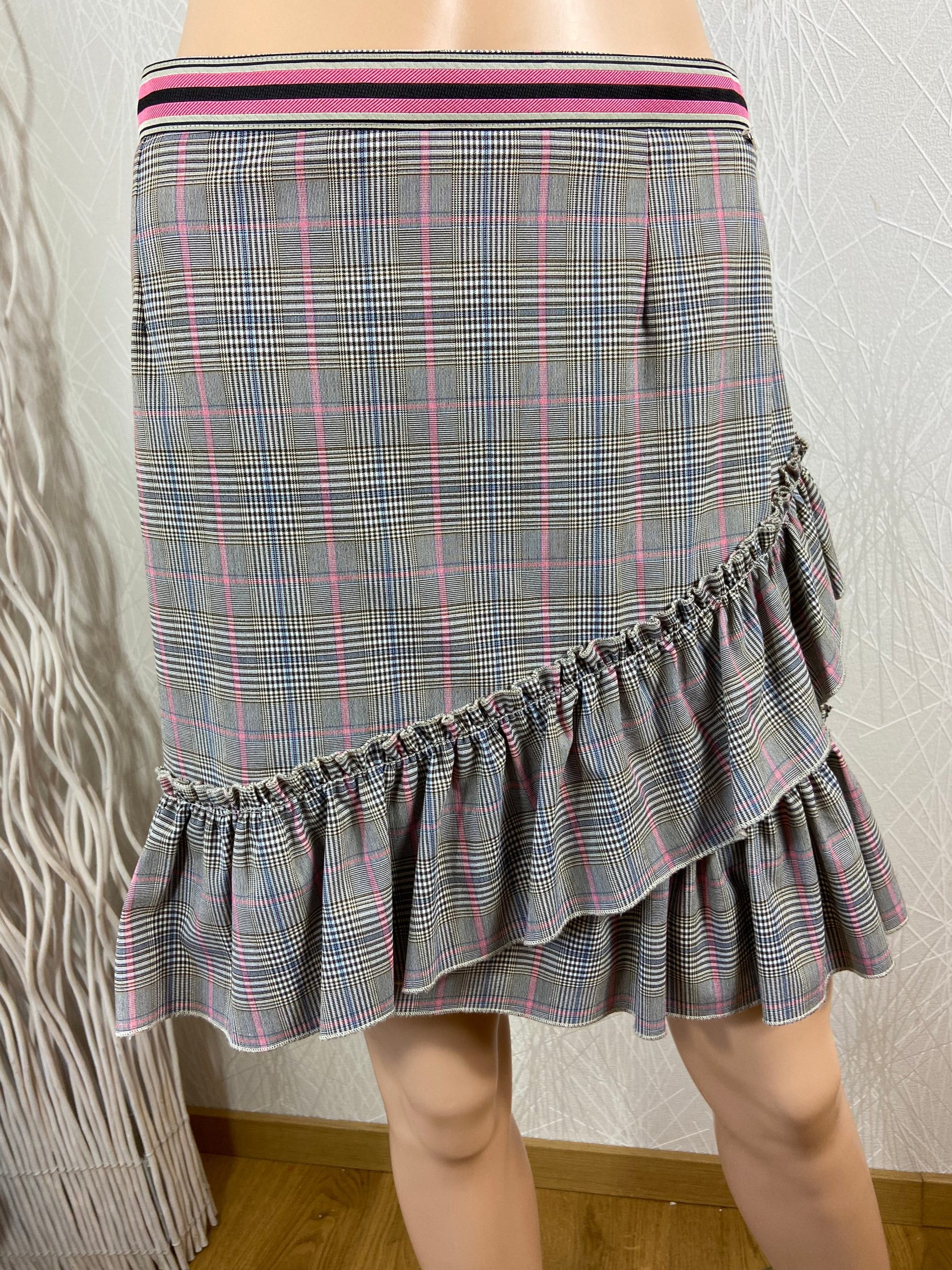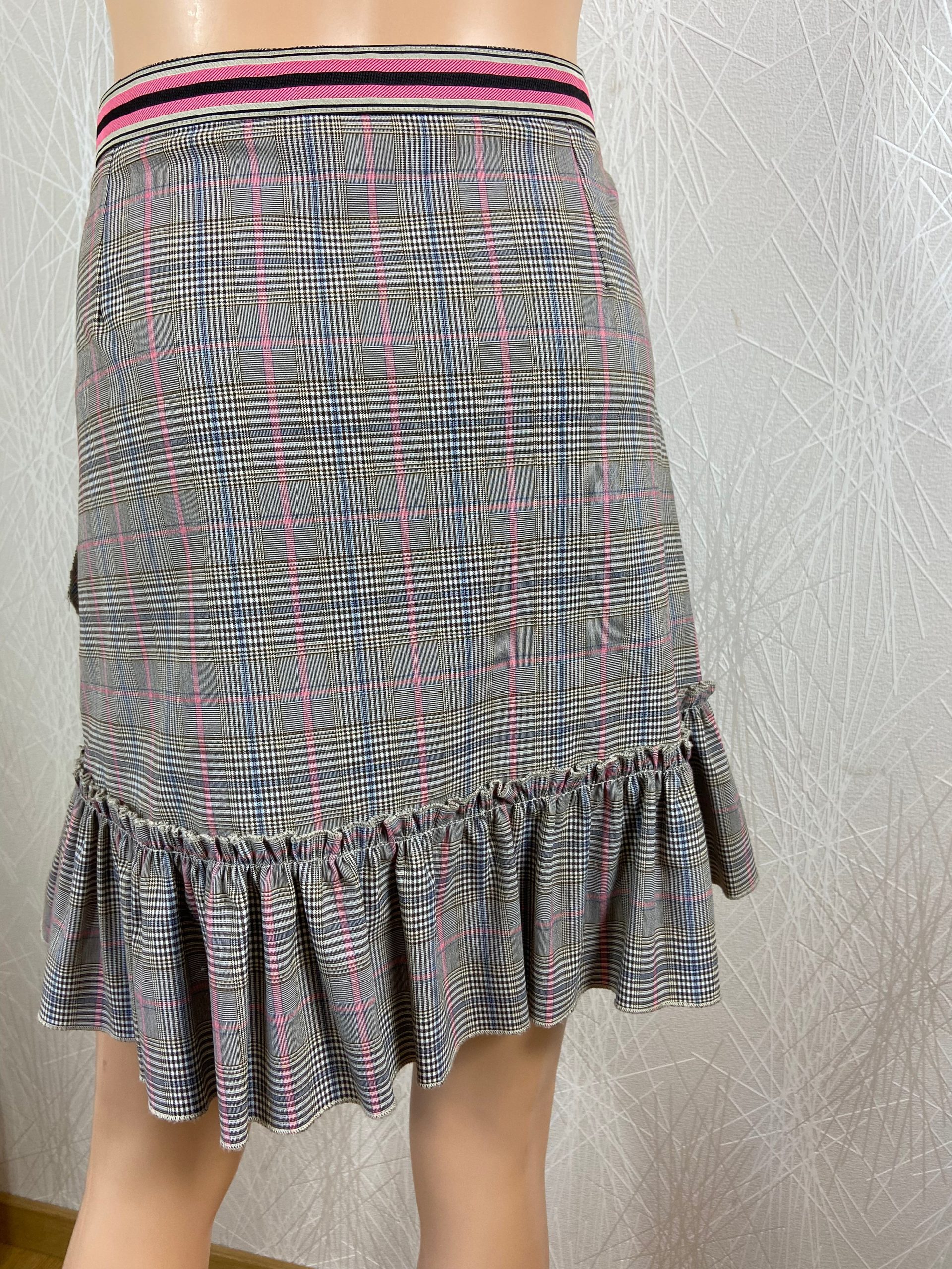 Jupe courte à motifs Prince de Galle dans les tons gris de la marque Liu Jo Milano. Cette jolie jupe haut de gamme à volants a une coupe droite, une bande rose au niveau de la taille et une fermeture par zip sur le côté. Une jupe de grande marque Liu-Jo à prix de déstockage. […]