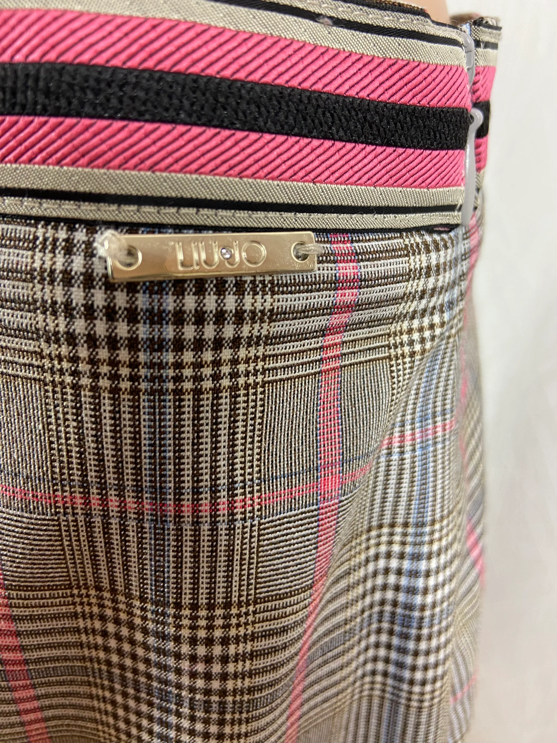 Jupe courte à motifs Prince de Galle dans les tons gris de la marque Liu Jo Milano.
