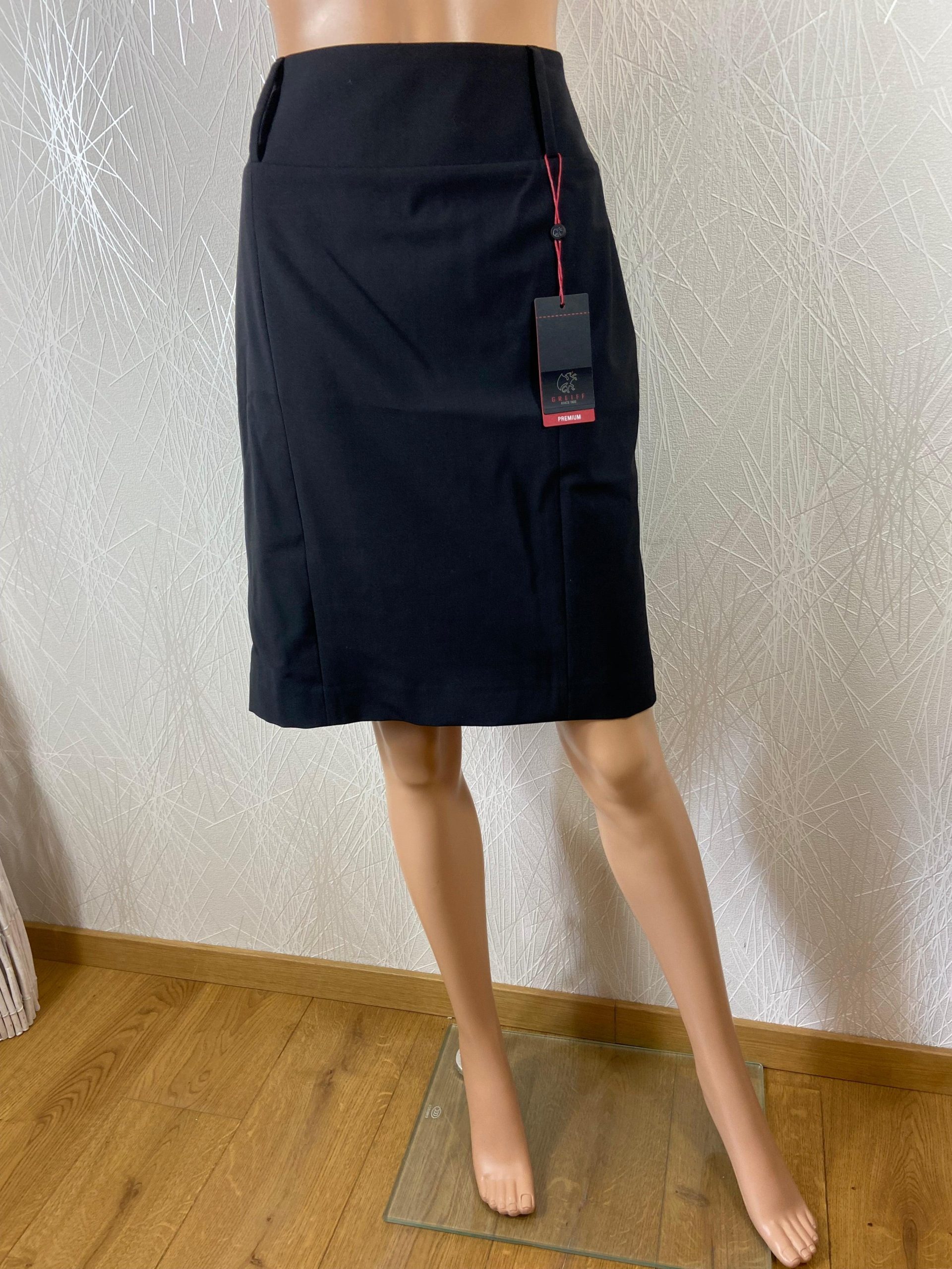 Jupe crayon, noir ou gris, de style business, modèle Regular Fit, de la marque haut de gamme allemande GREIFF. Jupe doublée, large ceinture à la taille, fente d’aisance à l’arrière masquée, fermeture avec zip et bouton caché. Très belle qualité de confection, avec des matières nobles. Nous avons différentes pièces de vêtements pouvant être assorties […]