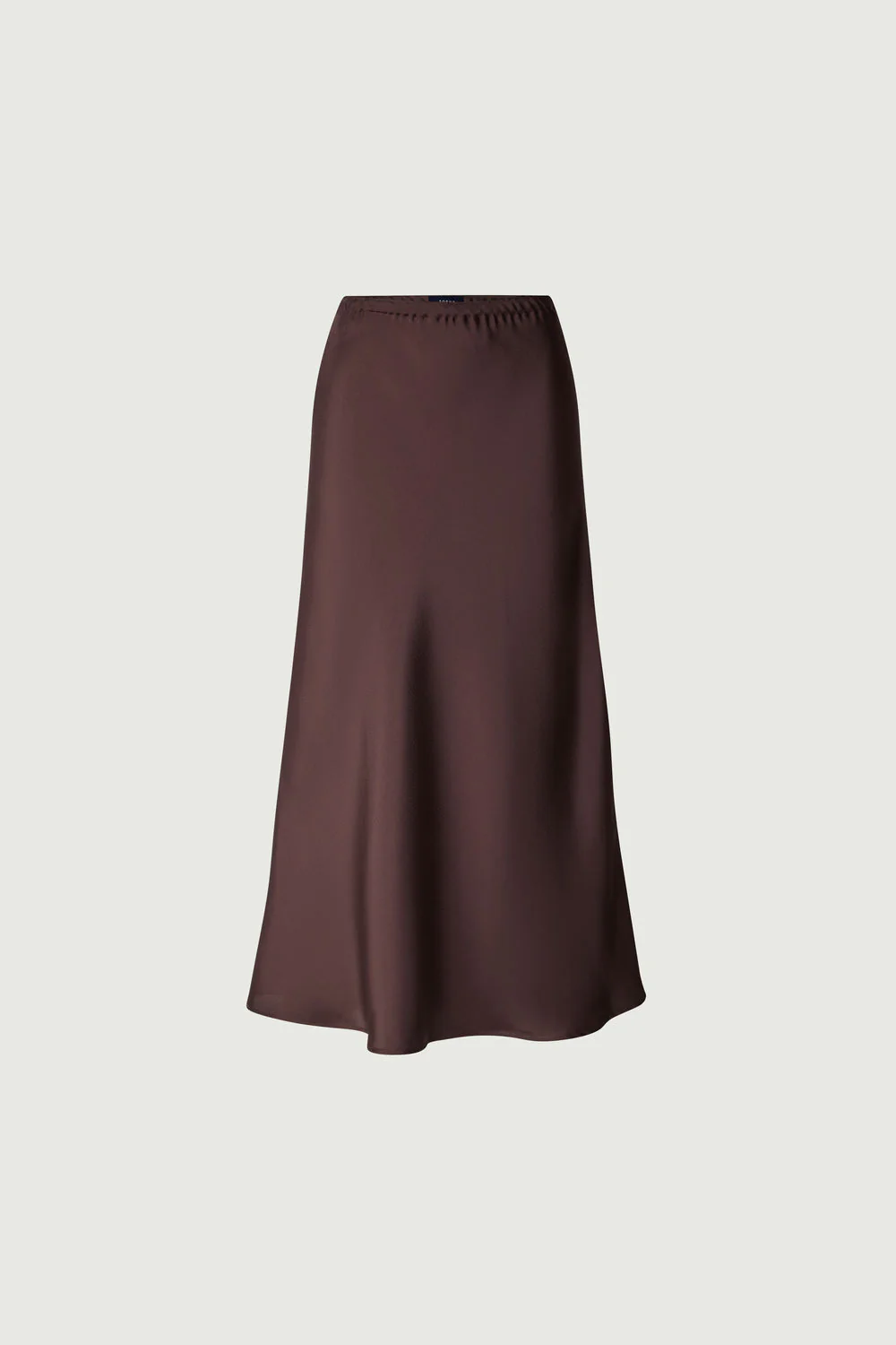 FEVER est une jupe à la taille élastiquée qui s’adapte à toutes les morphologies. Sa coupe minimaliste met en valeur le tombé de son étoffe fluide et brillante et sa forme tube à la découpe en biais la rend légèrement évasée.