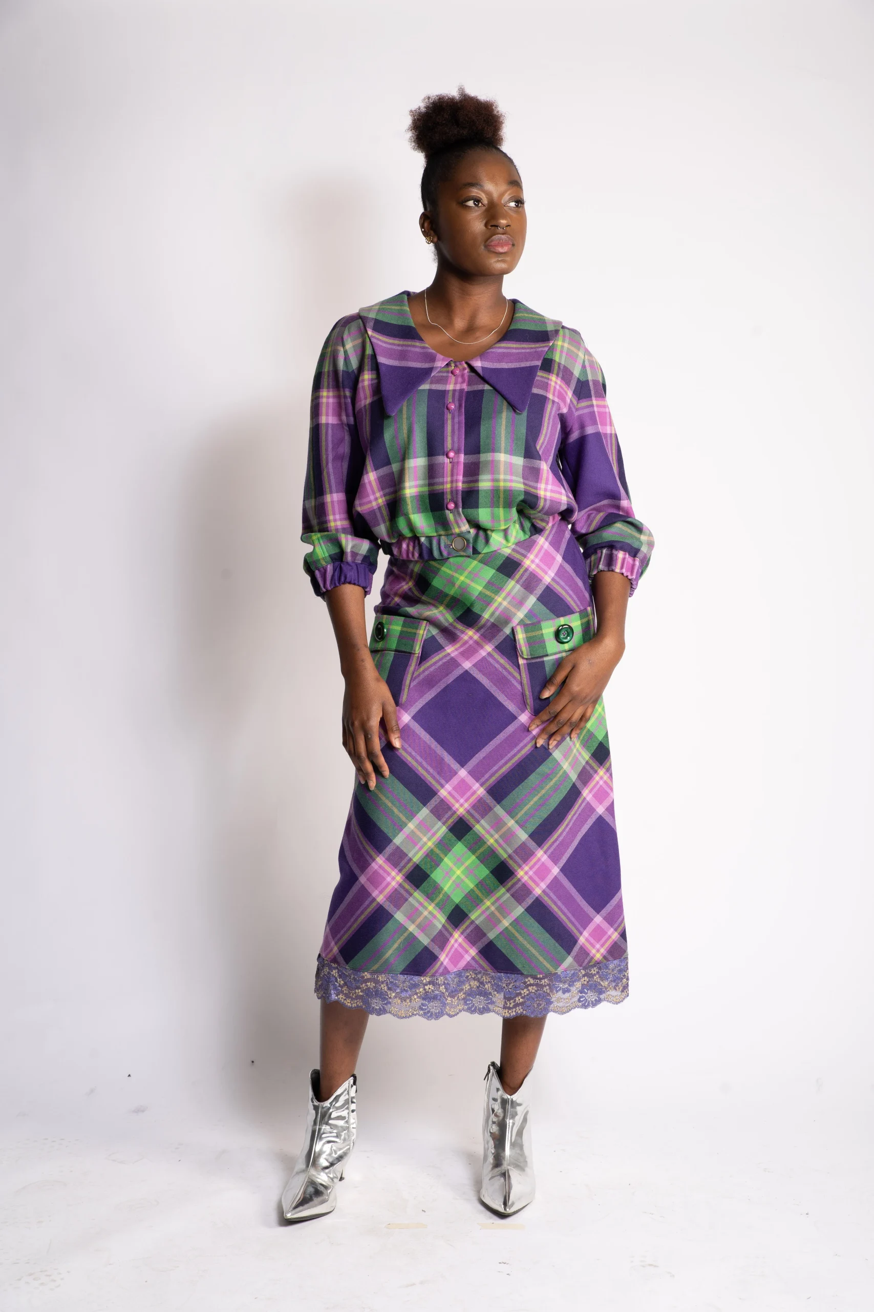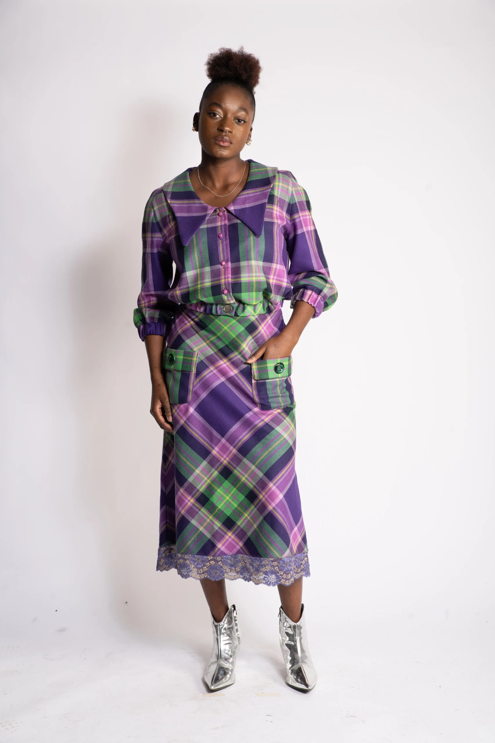Découvrez notre jupe Jenny O confectionnée en pure laine vierge d’Écosse et fabriquée en France selon les standards de qualité traditionnels. Cette pièce intemporelle s’intègre facilement dans une garde-robe moderne. Ce tissu est issu d’un stock d’une grande maison de luxe.