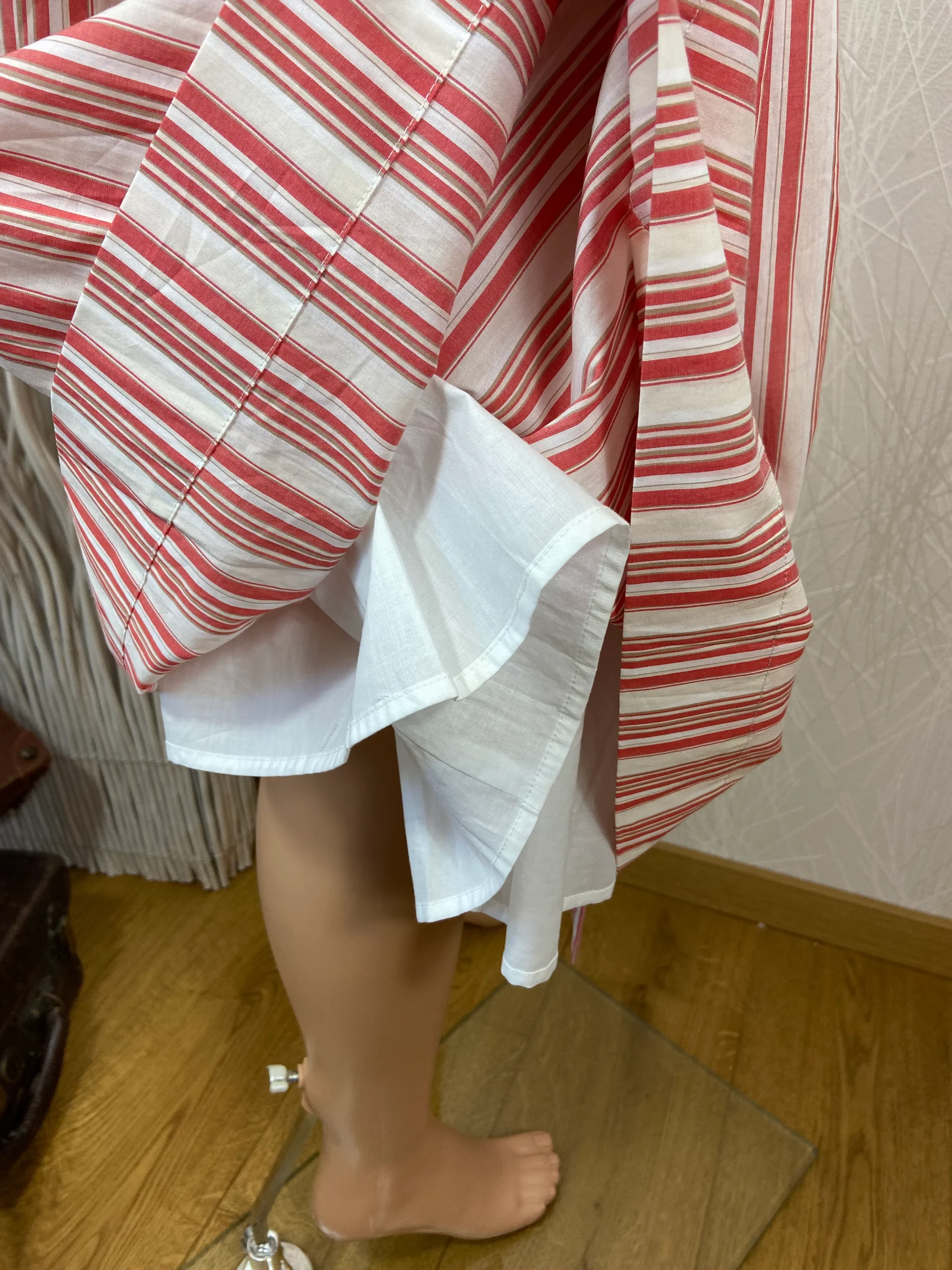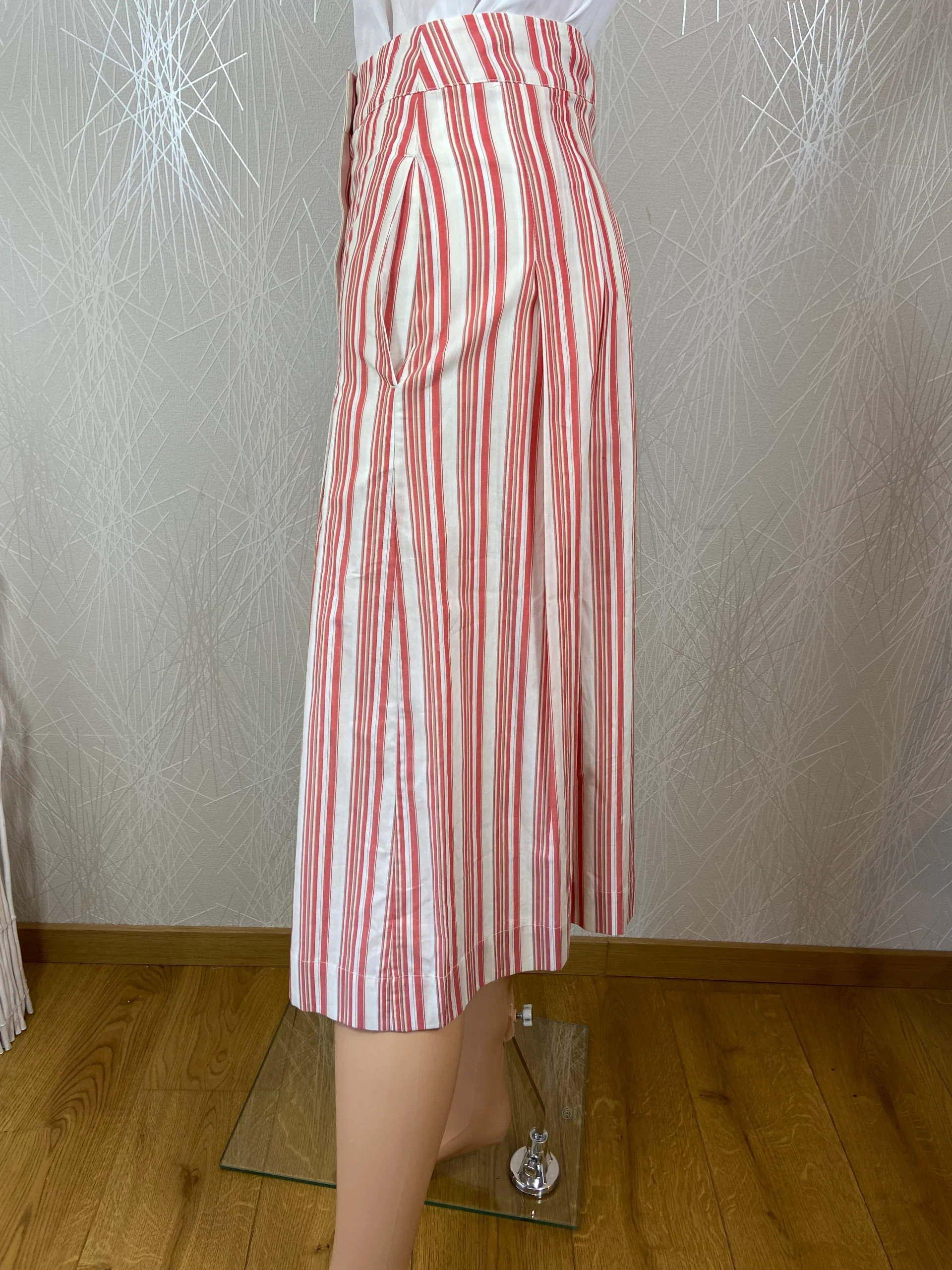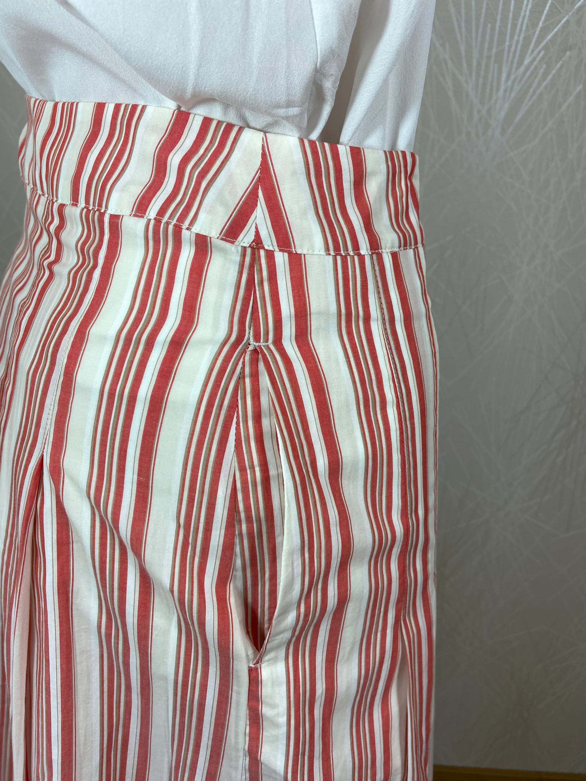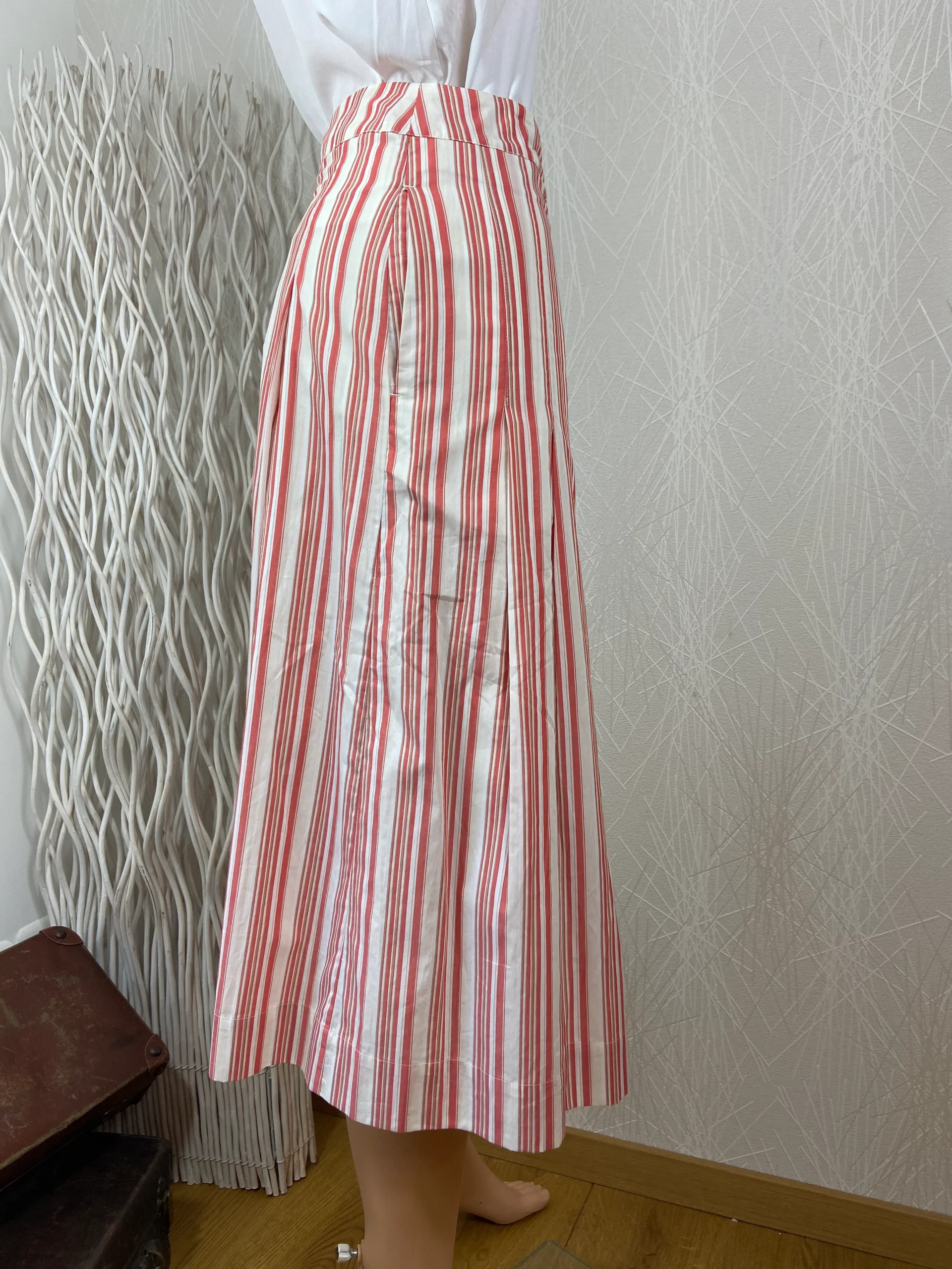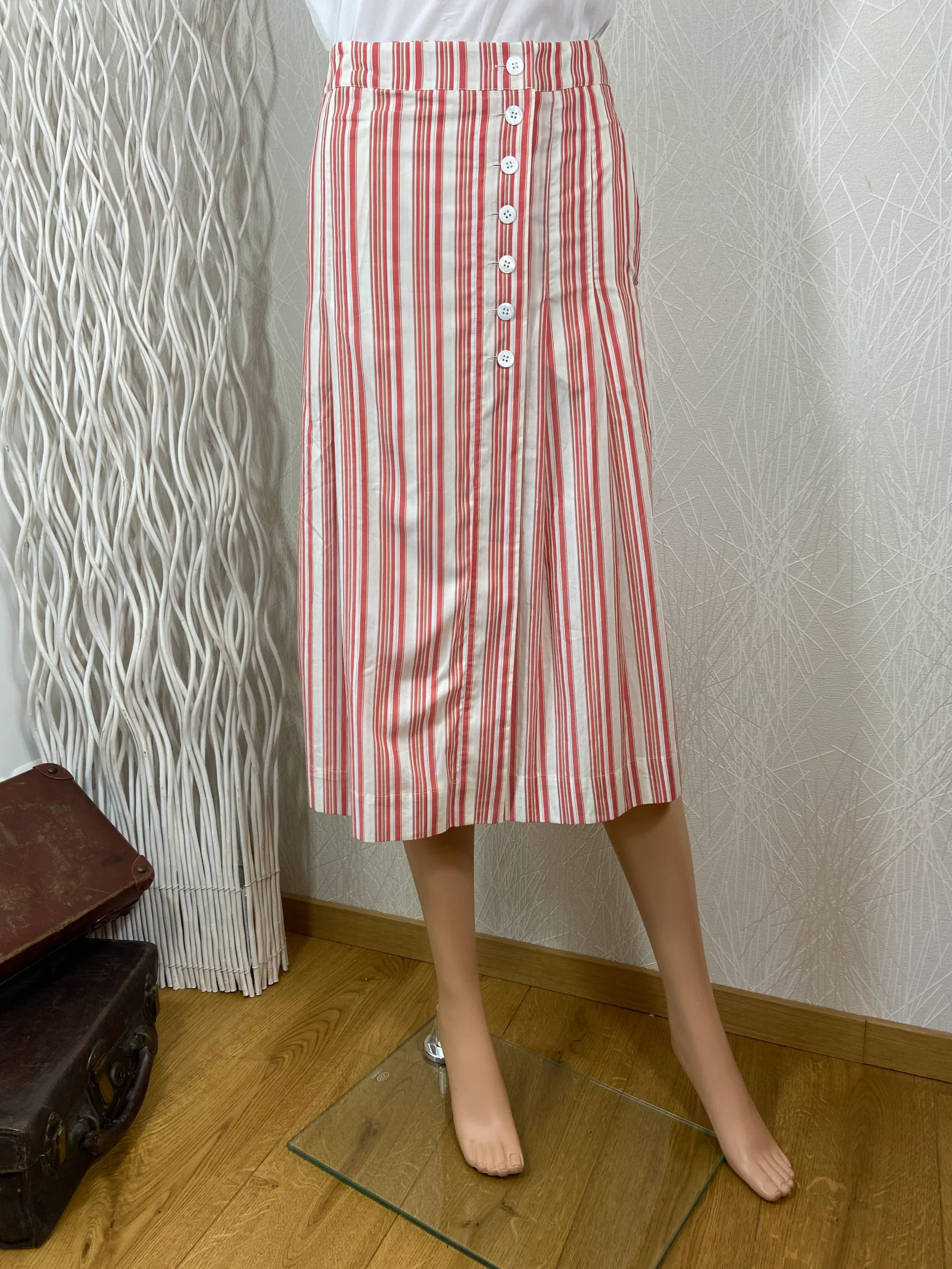 Jupe doublée mi-longue blanc avec rayures verticales rouge de la marque Comptoir des Cotonniers.
