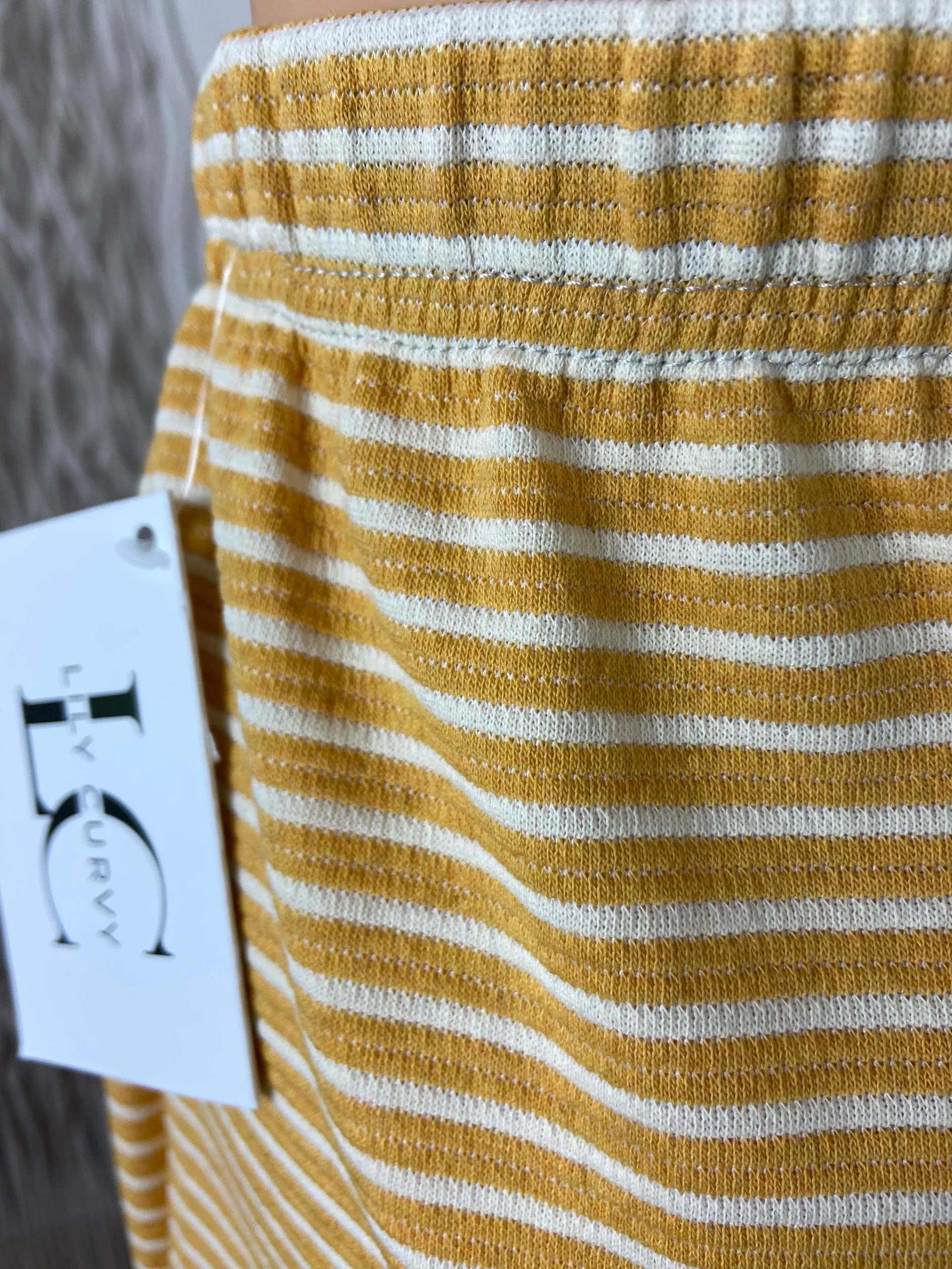 Jupe midi coton jaune orange rayures beige taille haute élastique Edmond Boublil