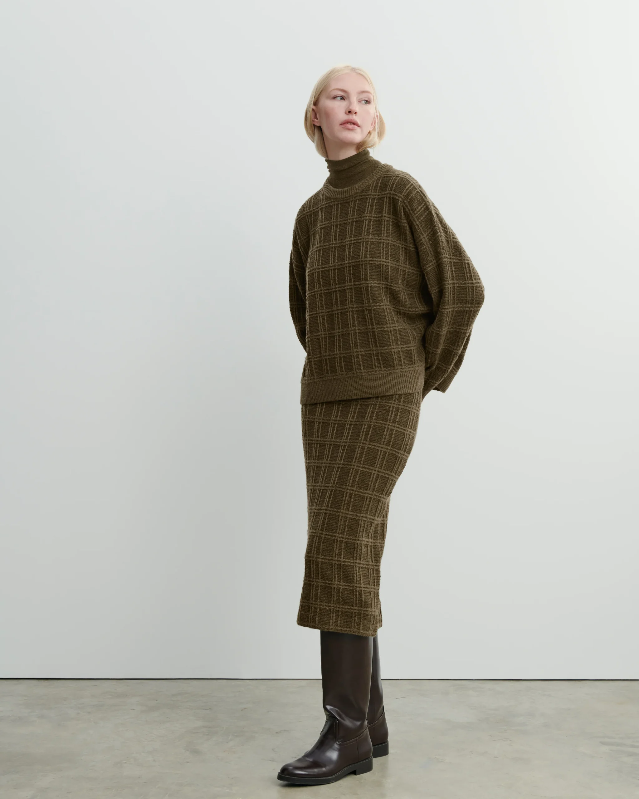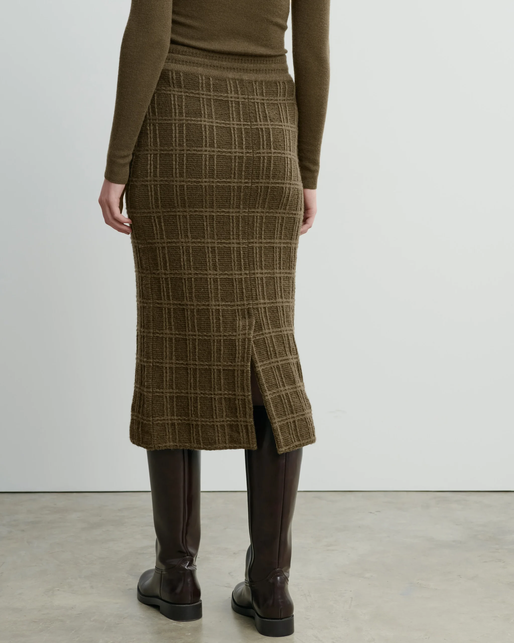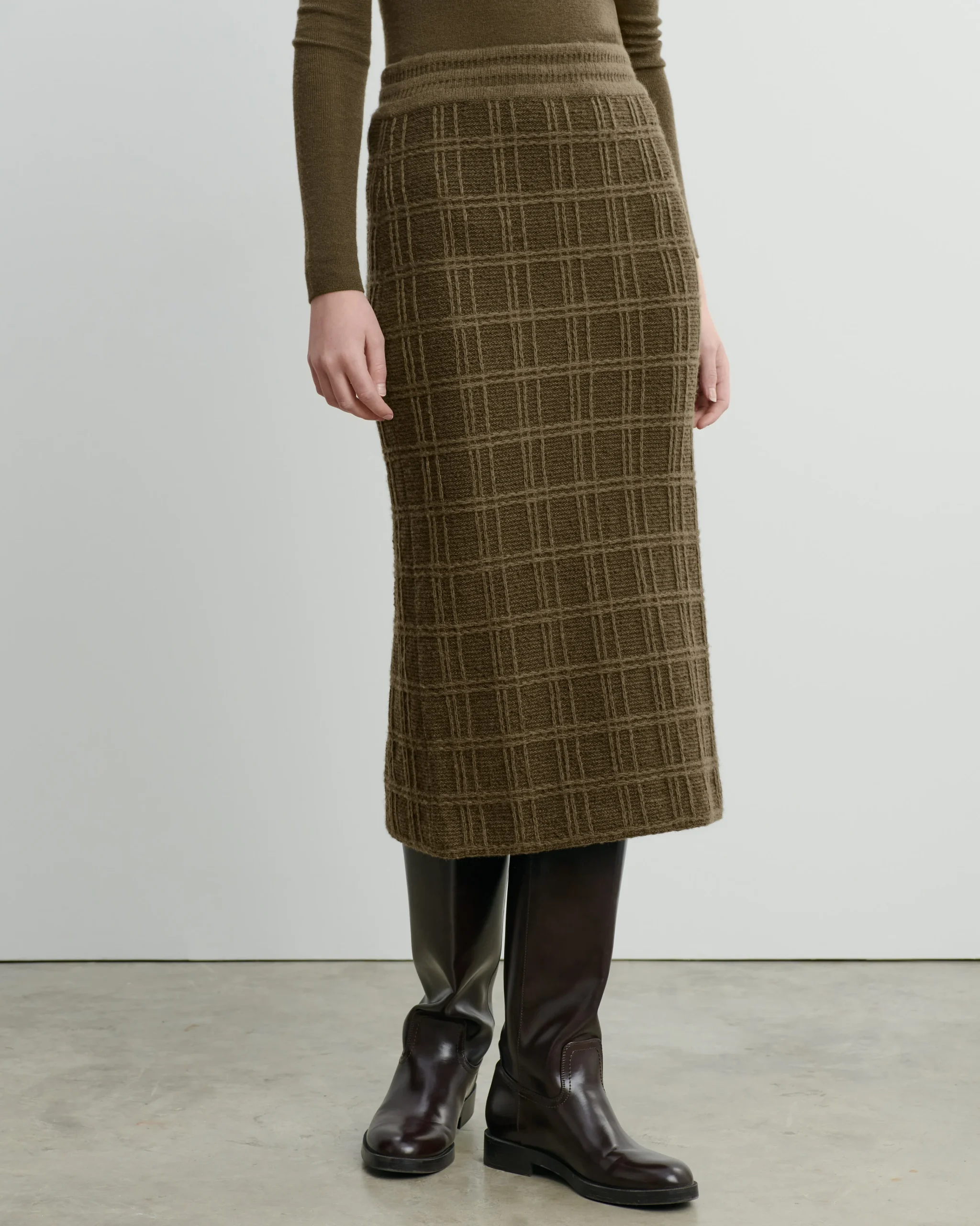 Jupe midi en tweed. Modèle à coupe fluide, réalisé en laine et cachemire.