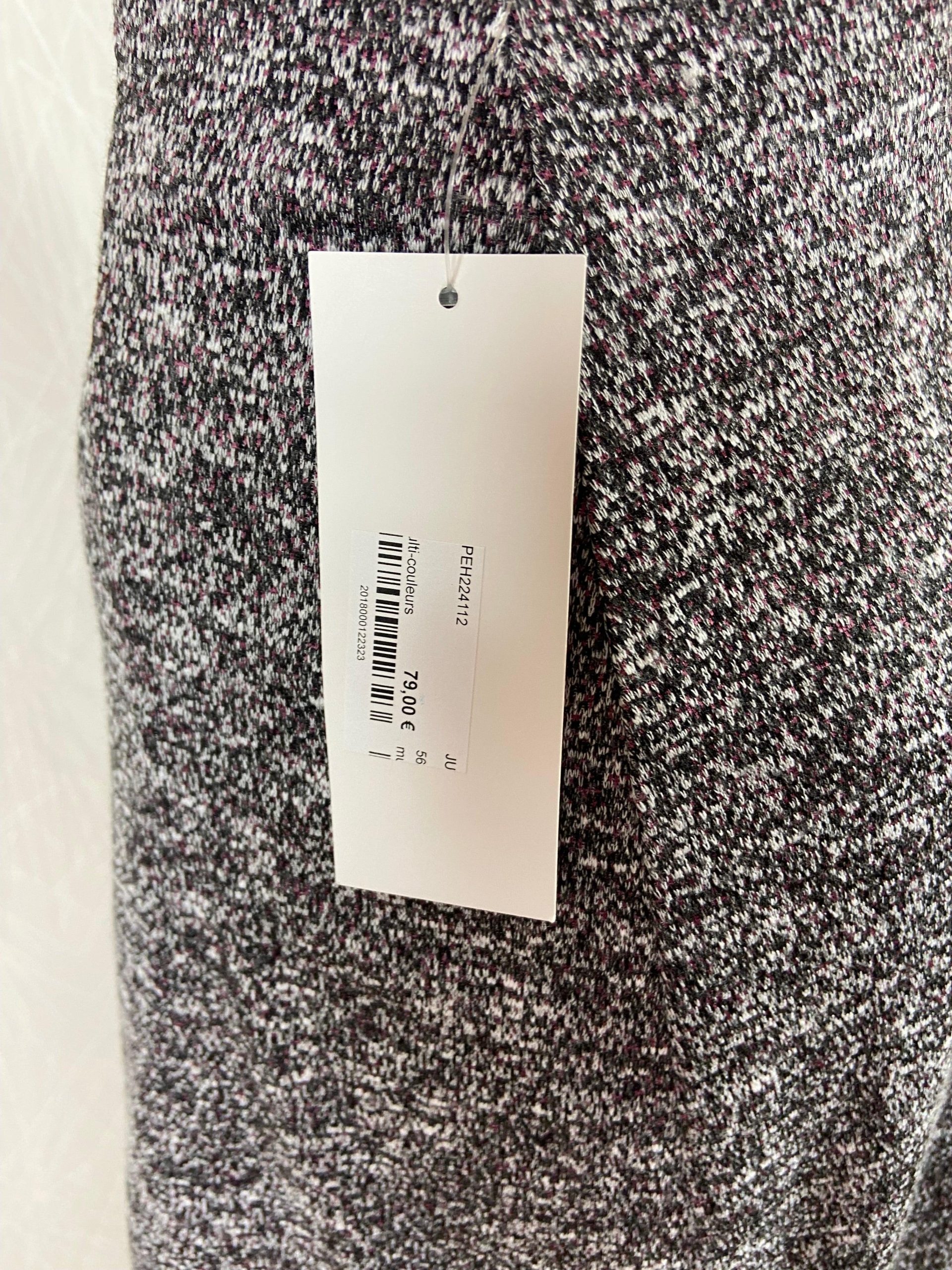Jolie jupe gris moucheté de la marque Gévana. Taille haute élastique, doublée, coupe évasée et longueur midi. Belle fabrication française. Matière : 85% polyester – 10% rayon – 5% élastomère Couleur : Gris Marque : Gévana Dimensions Taille 52 : Tour de taille : de 104 à 112 cm ; tour de hanches : 120 […]