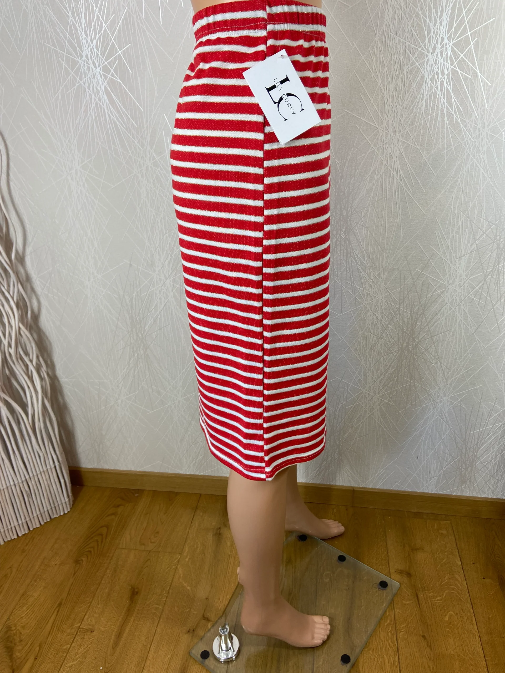 Jupe midi rouge rayures blanches taille haute élastique grande taille Edmond Boublil