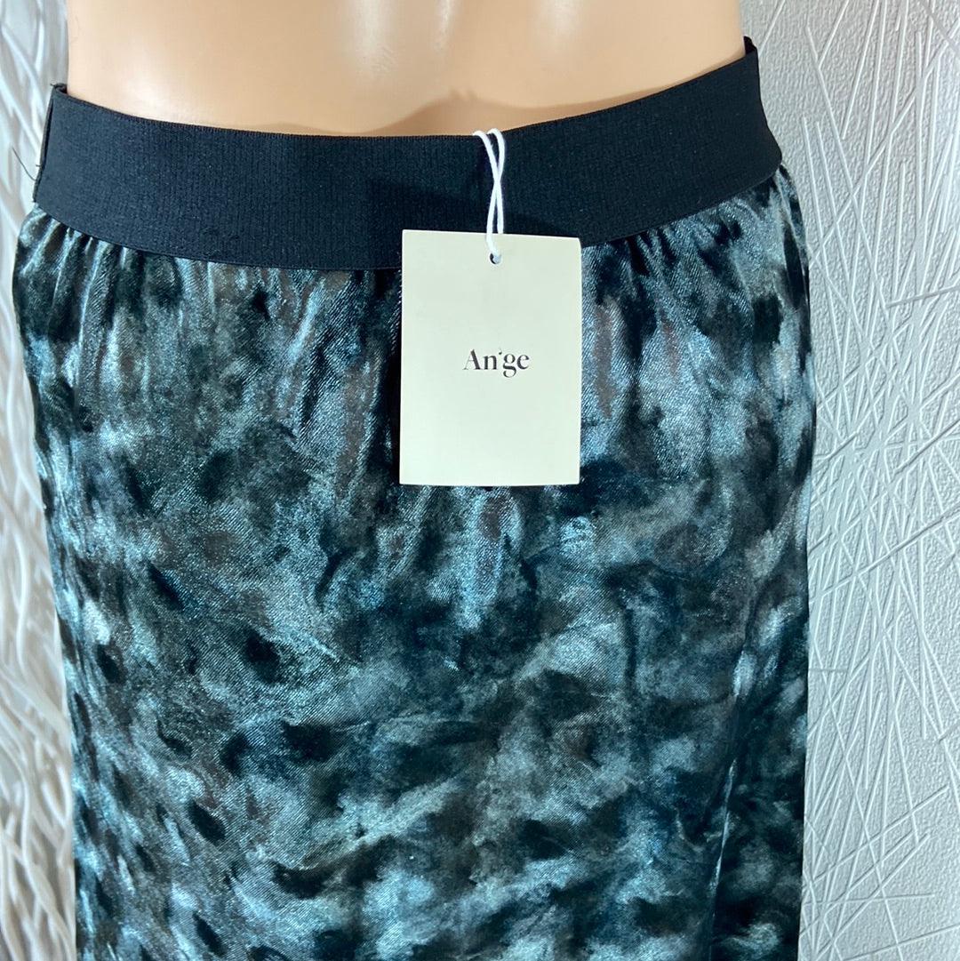 Jupe midi velours lisse gris anthracite taille élastique coupe droite effet satin An’ge