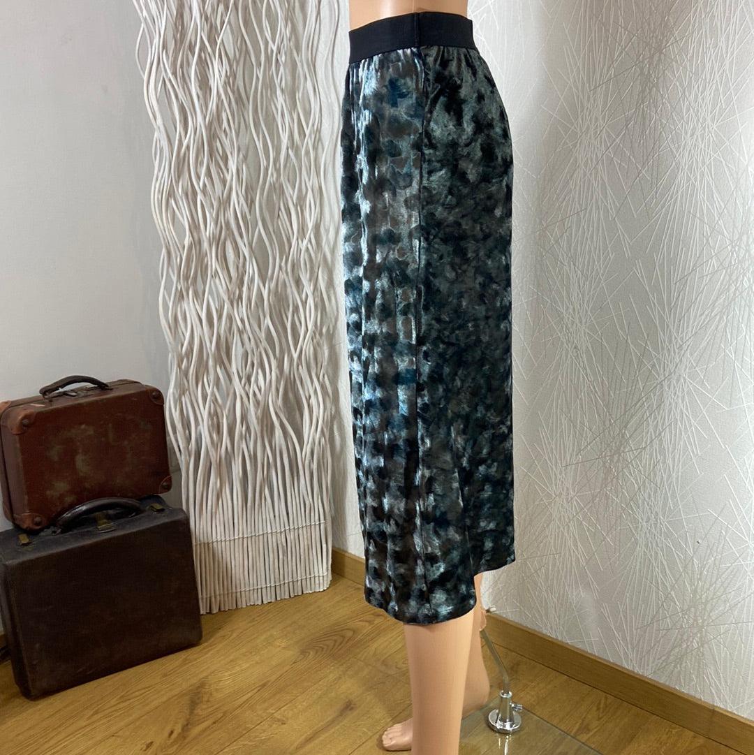 Jupe midi gris anthracite en velours lisse de la marque An’ge Taille élastique, coupe droite et effet satin. Matière : 97% polyester – 3% élasthanne Couleur : Gris anthracite Marque : An’ge Taille Unique – Réf : TUNJ3280 Dimensions : Tour de taille : de 67 à 90 cm ; longueur : 77 cm.