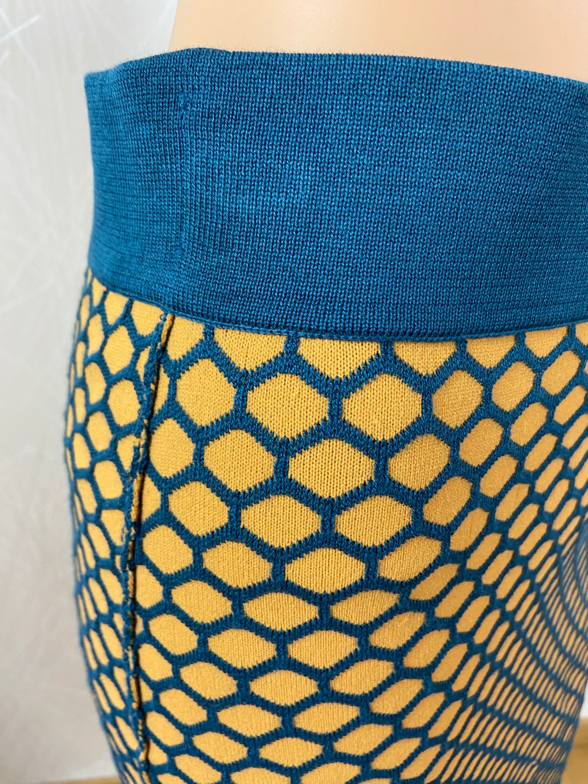 Cette jupe est réversible en couleur jaune et bleu.