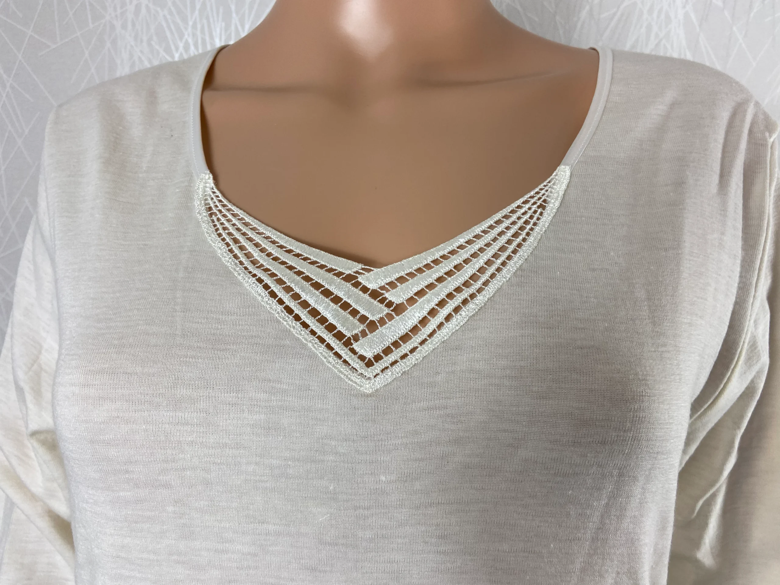 Manches longues, encolure en V avec dentelle et coupe près du corps.