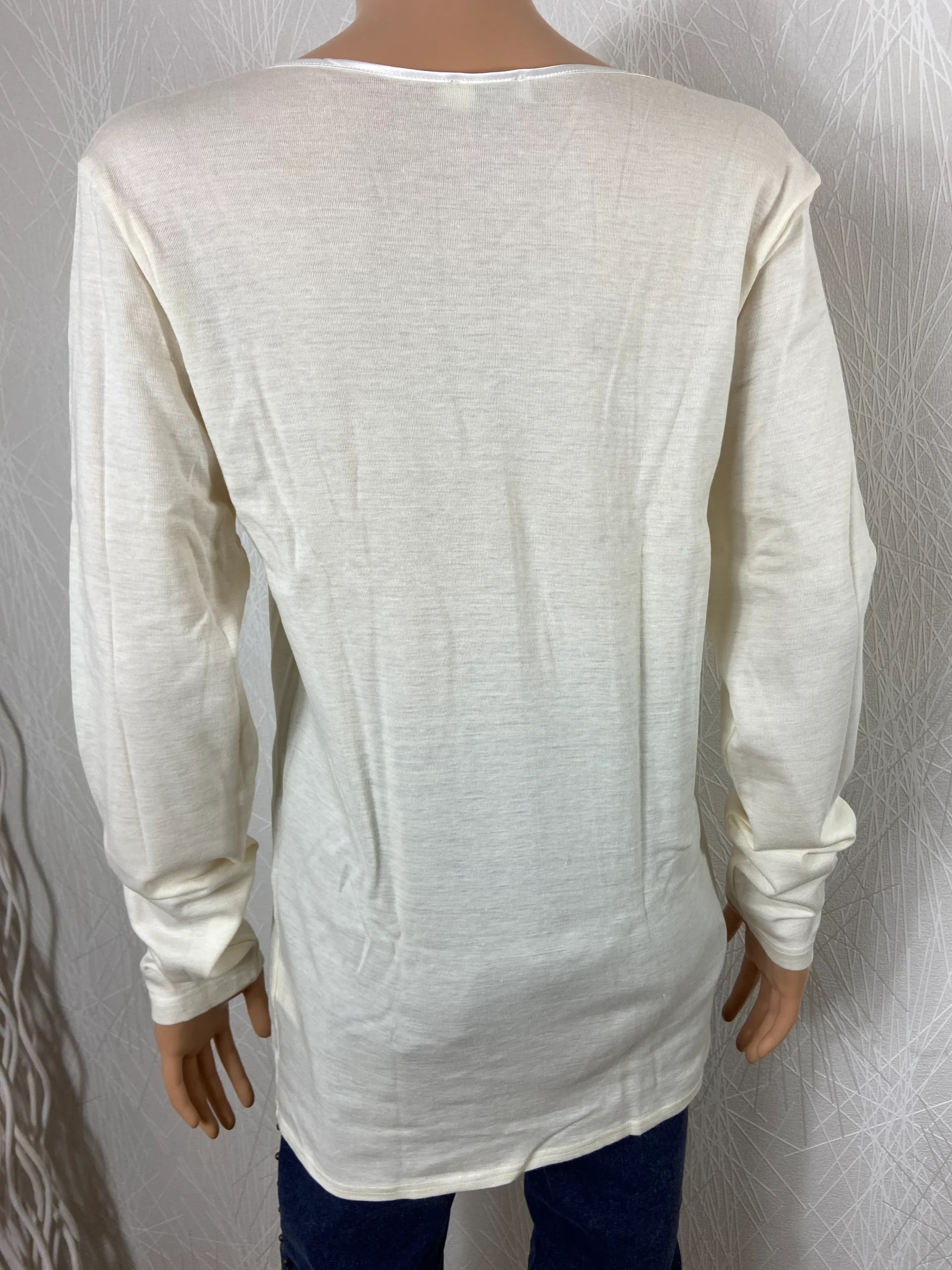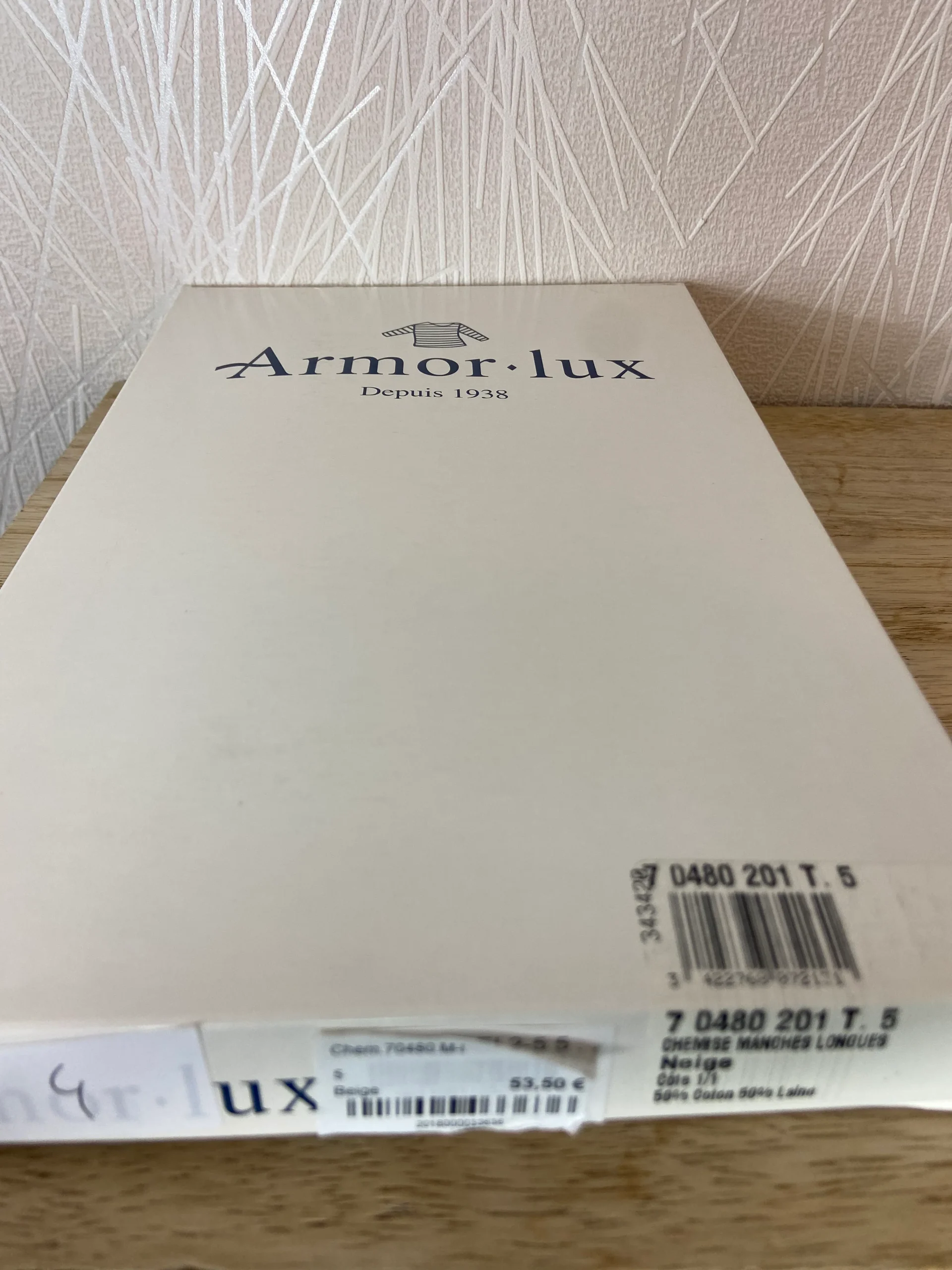 Maillot de corps pour femme, chaud avec laine, de la marque Armor Lux Manches longues, encolure en V avec dentelle et coupe près du corps. Fabriqué en France. Matière : 50% laine – 50% coton Couleur : Beige Marque : Armor Lux Taille 5 / 2XL / 44 – Réf : 44RM5612 Dimensions : Largeur […]