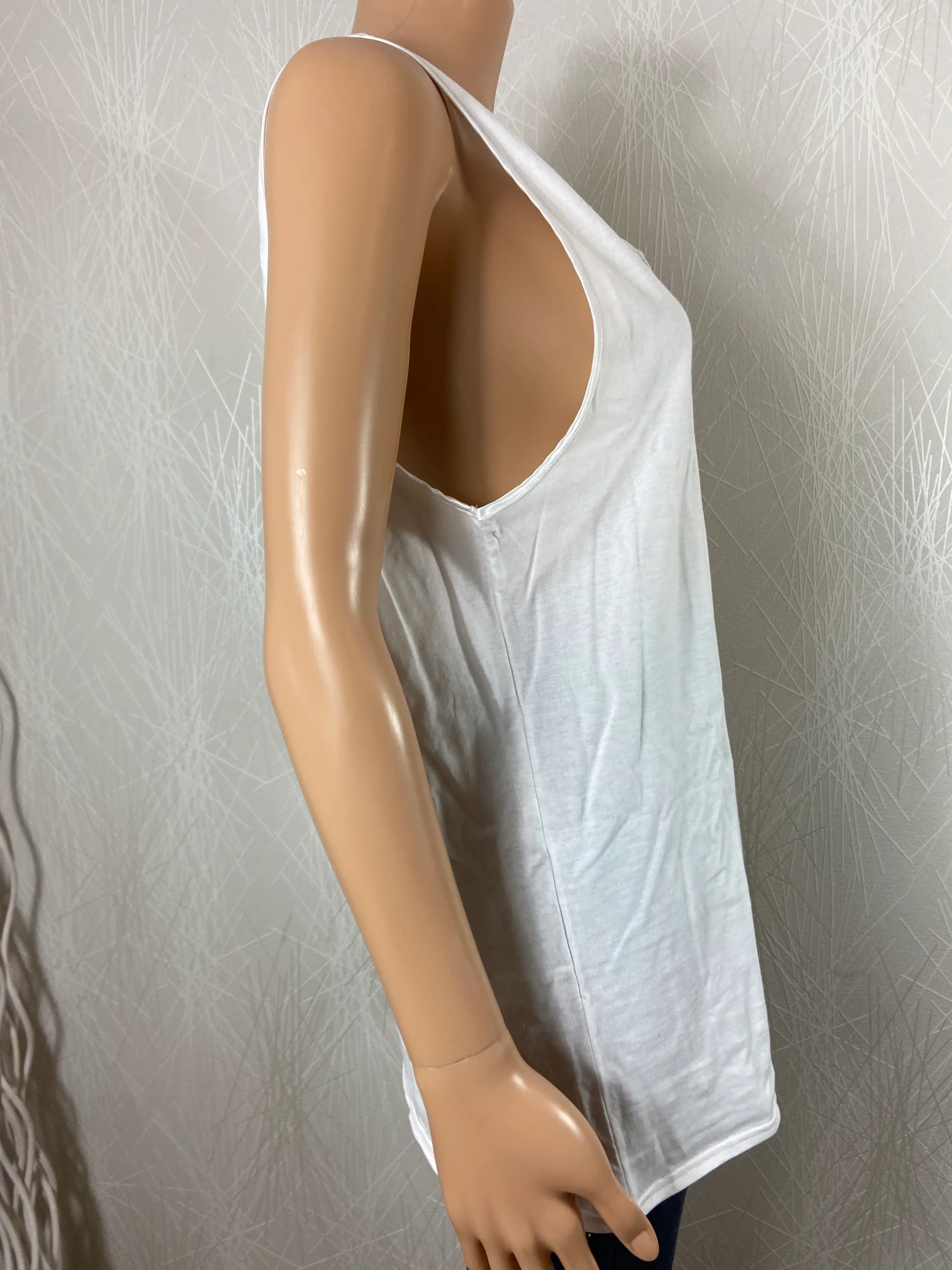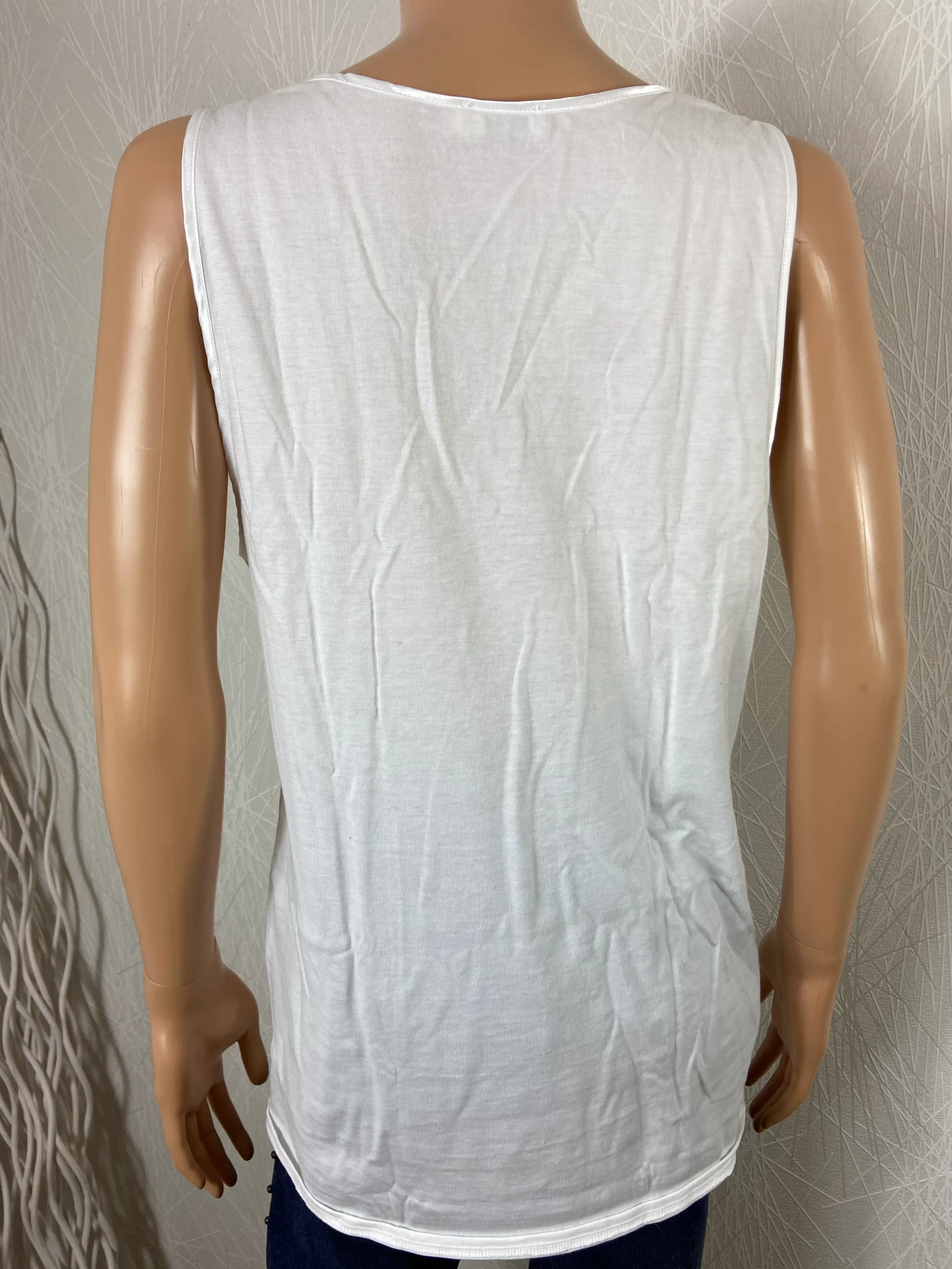 Coupe sans manches, encolure en V avec dentelle et coupe droite.