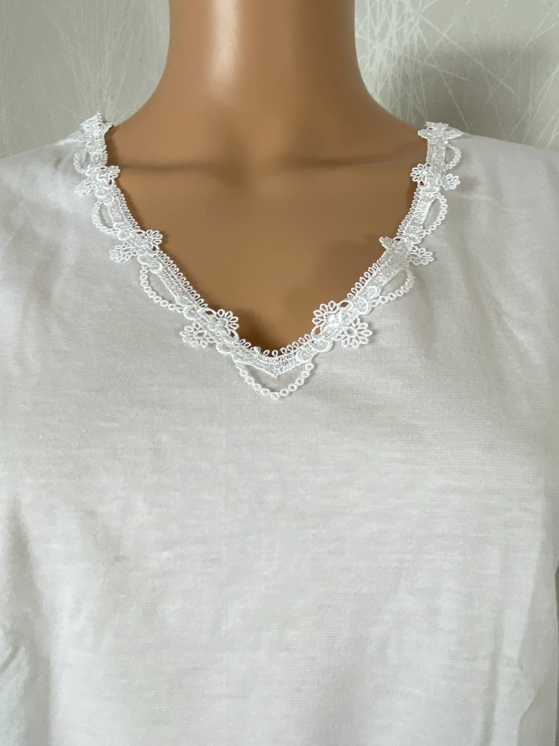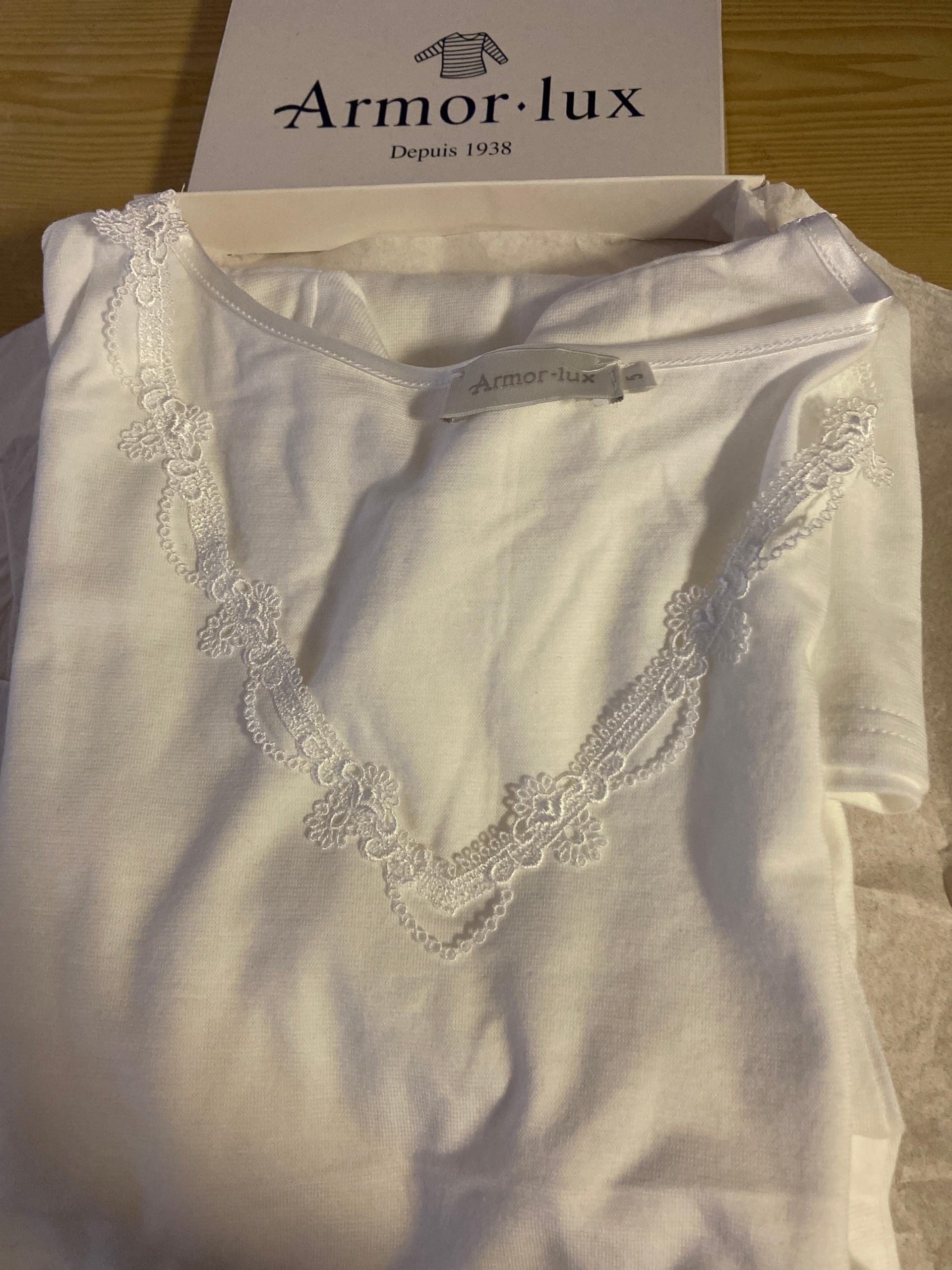 Maillot de corps en coton blanc pour femme, avec dentelle, de la marque Armor Lux.
