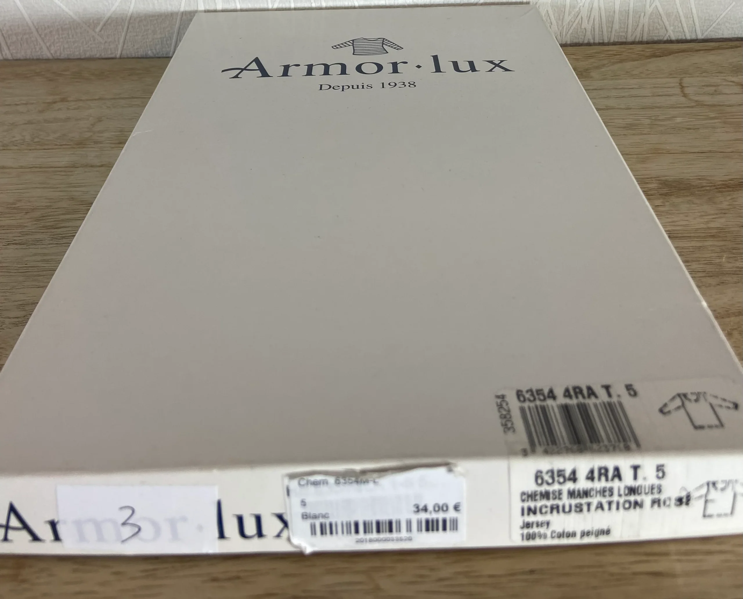 Maillot de corps en coton blanc pour femme, avec dentelle, de la marque Armor Lux. Manches longues, encolure en V avec dentelle et coupe droite. Fabrication française Matière : 100% coton Couleur : Blanc Marque : Armor Lux Taille 5 / 2XL / 44 – Réf : 44RM5611 Dimensions : Largeur épaule : 45 cm […]
