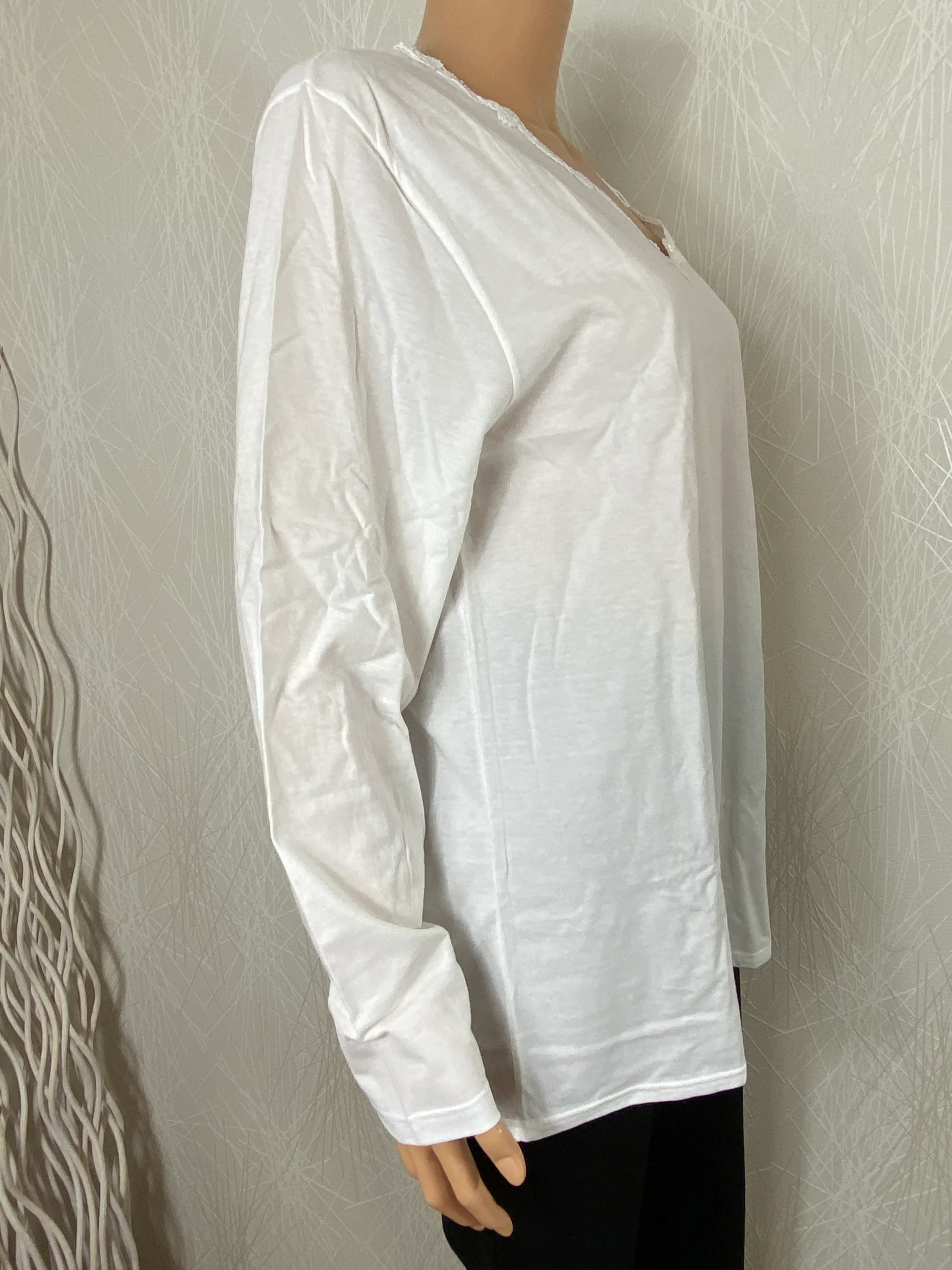 Manches longues, encolure en V avec dentelle et coupe droite.