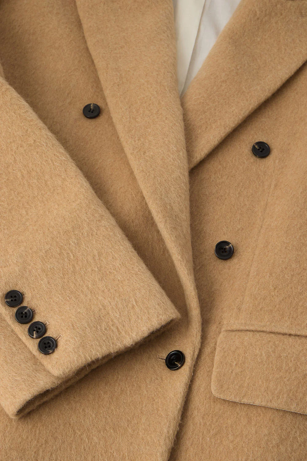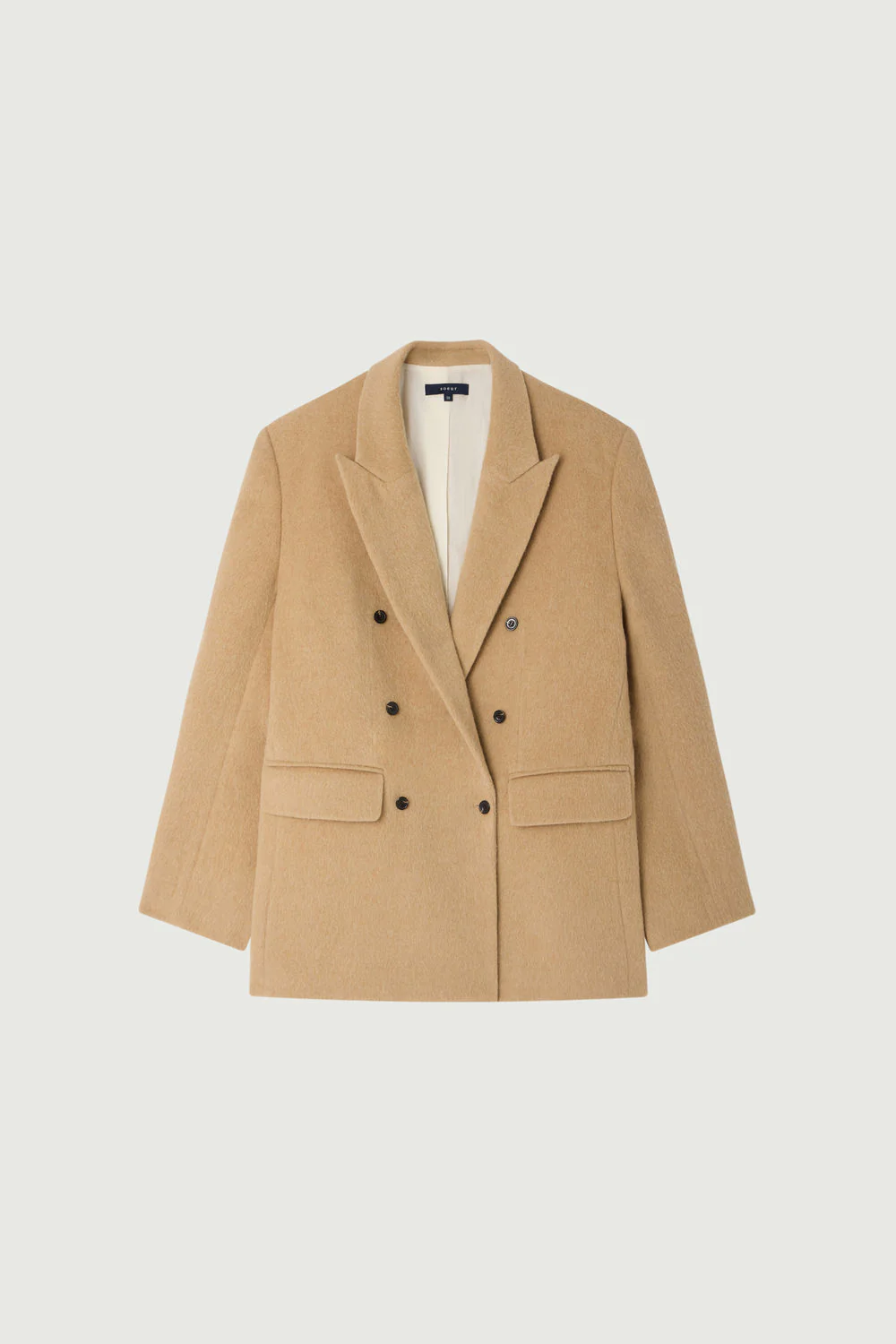 – Coupe ample – Longueur hanches – Col tailleur – Ouverture avec double boutonnage – Deux poches devant à rabats – Lainage gratté