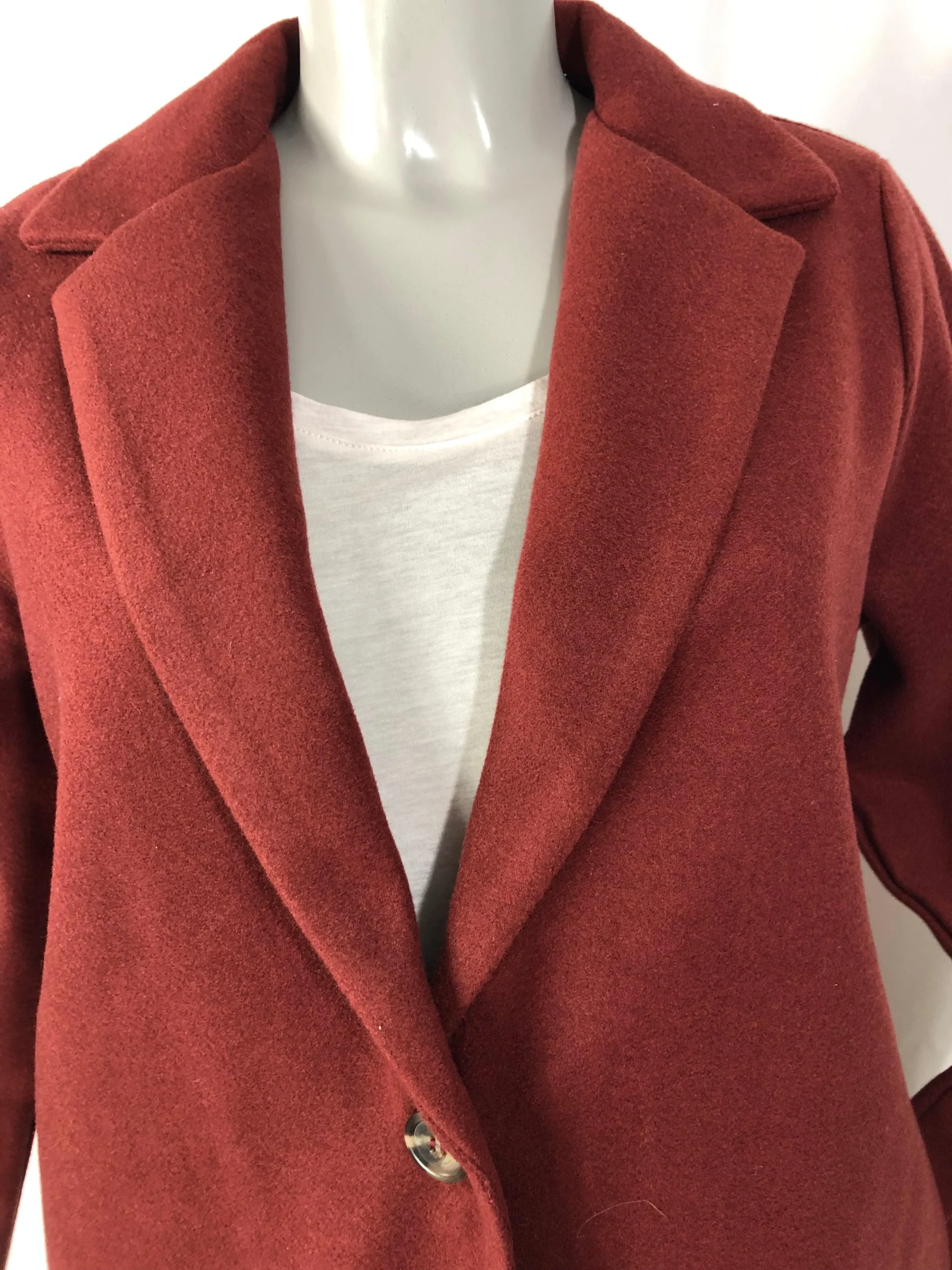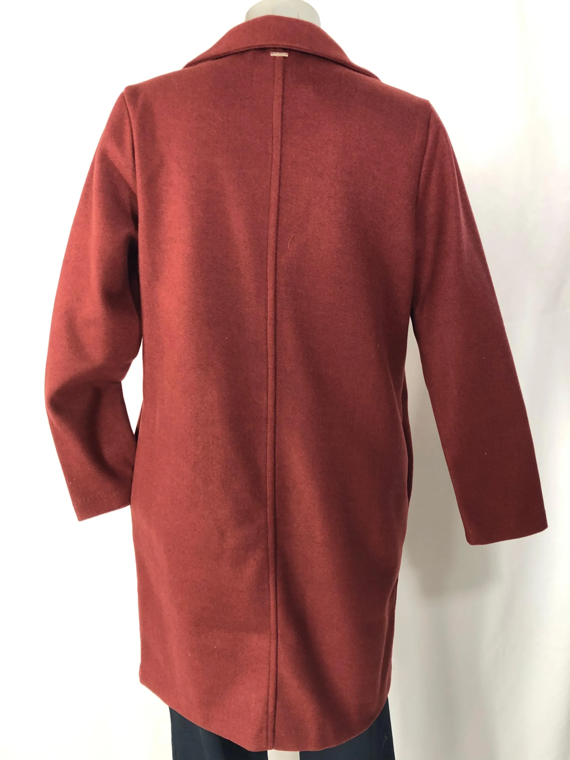 Manteau rouge acajou mi-long coupe droite classique Deeluxe
