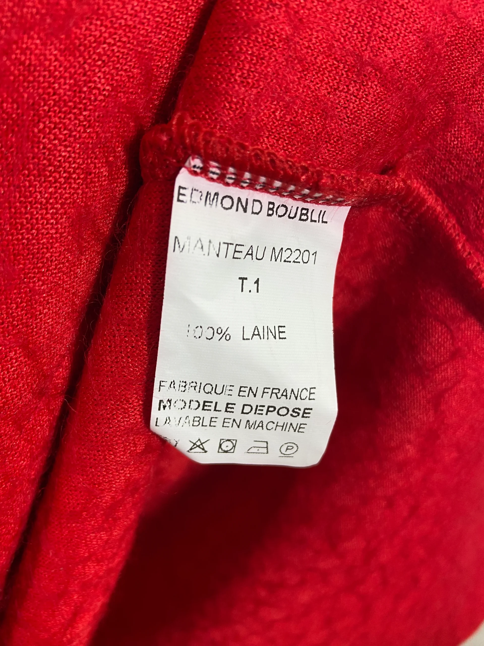 Manteau rouge en laine bouillie pour femme, en grande taille, fruit de la collaboration entre la styliste Fabienne Thibeault et la marque Edmond Boublil.
