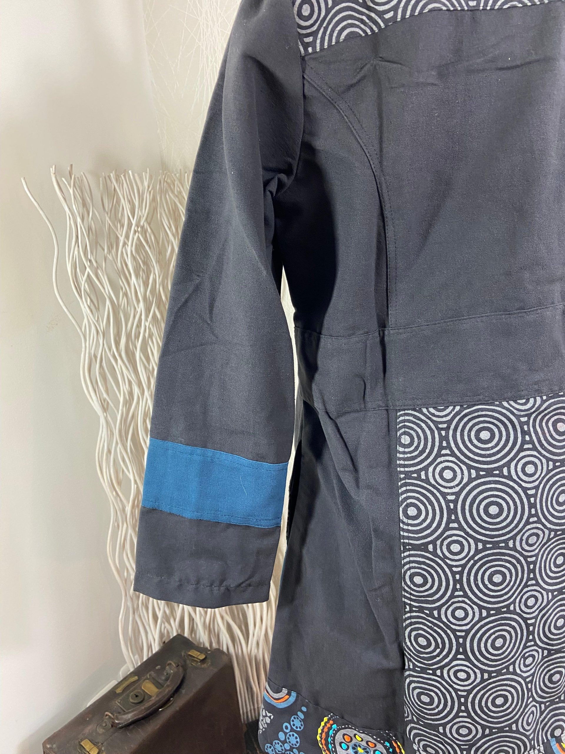 Manteau pour femme mi-long entièrement doublé de la marque Aller Simplement. De style ethnique avec col chemise, légèrement évasé à partir de la taille, se ferme avec une fermeture éclair et il a 2 poches sur les côtés. Différents motifs brodés en forme de cercles font le charme de ce joli manteau de tendance Hippie […]