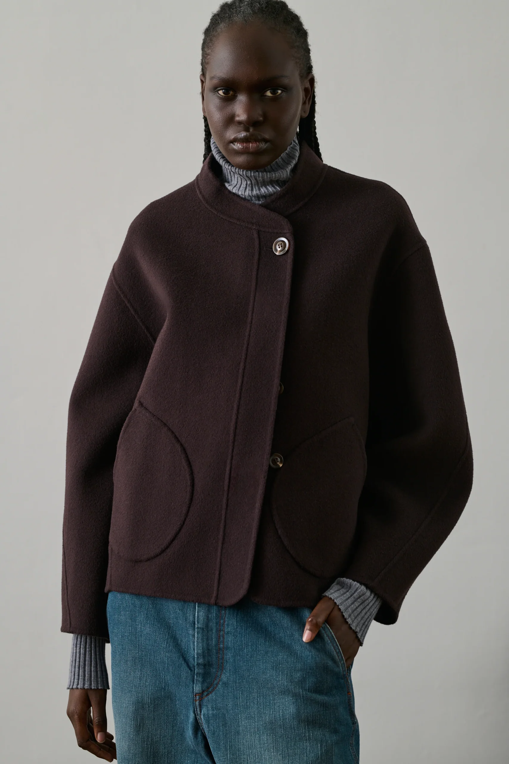 WINDSOR est une veste courte en lainage chaud, doux et souple, idéale pour la mi-saison. Pensée comme un manteau léger ou une veste chaude, son design épuré en fait une pièce intemporelle iconique vestiaire Soeur. Son volume rond est accentué par des pinces au dos, des manches généreuses et deux poches plaquées au devant.