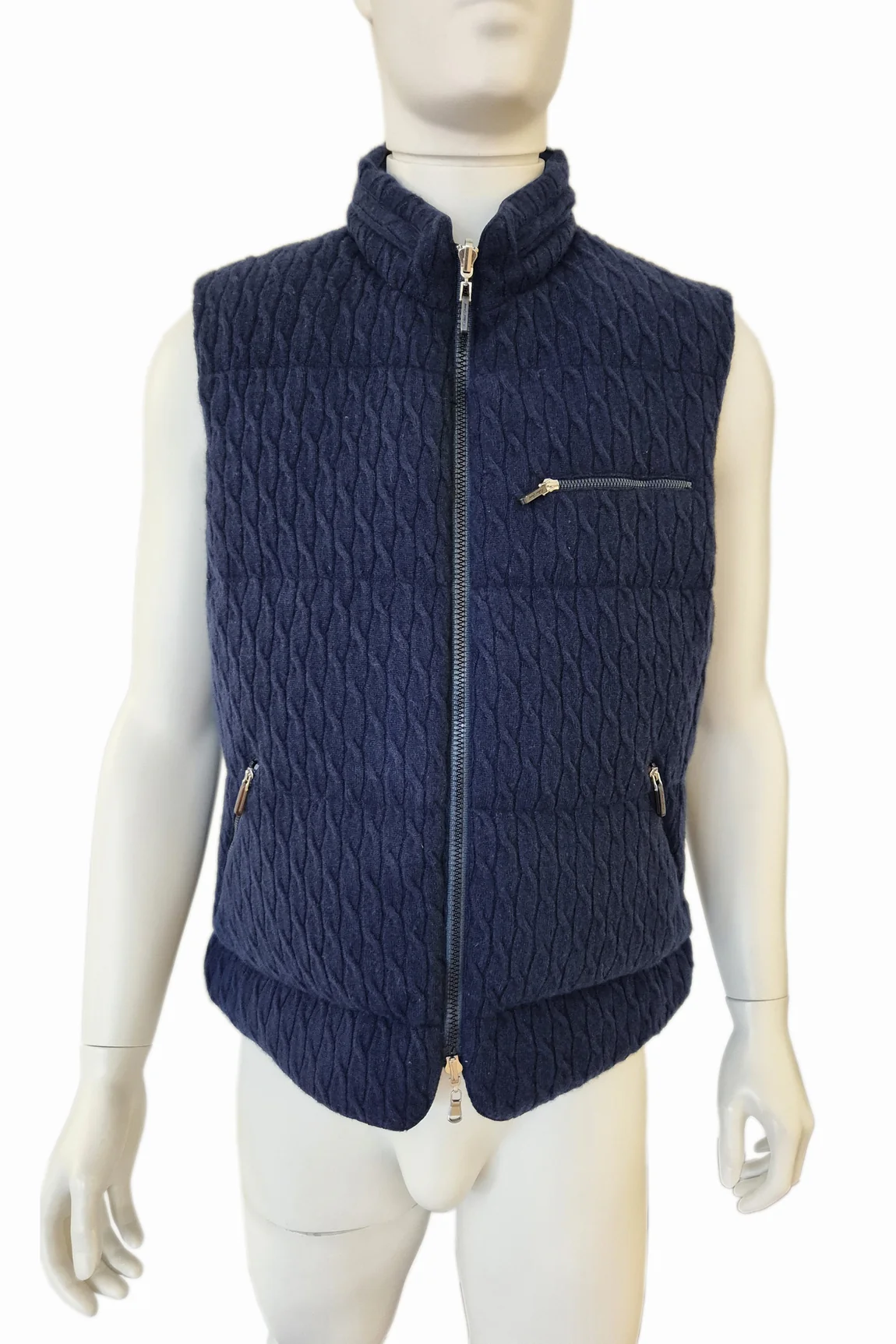 100% Cashmere Cable zip-up Vest. Men’s reversible style. Entirely manufactured in Italy in our own workshops.