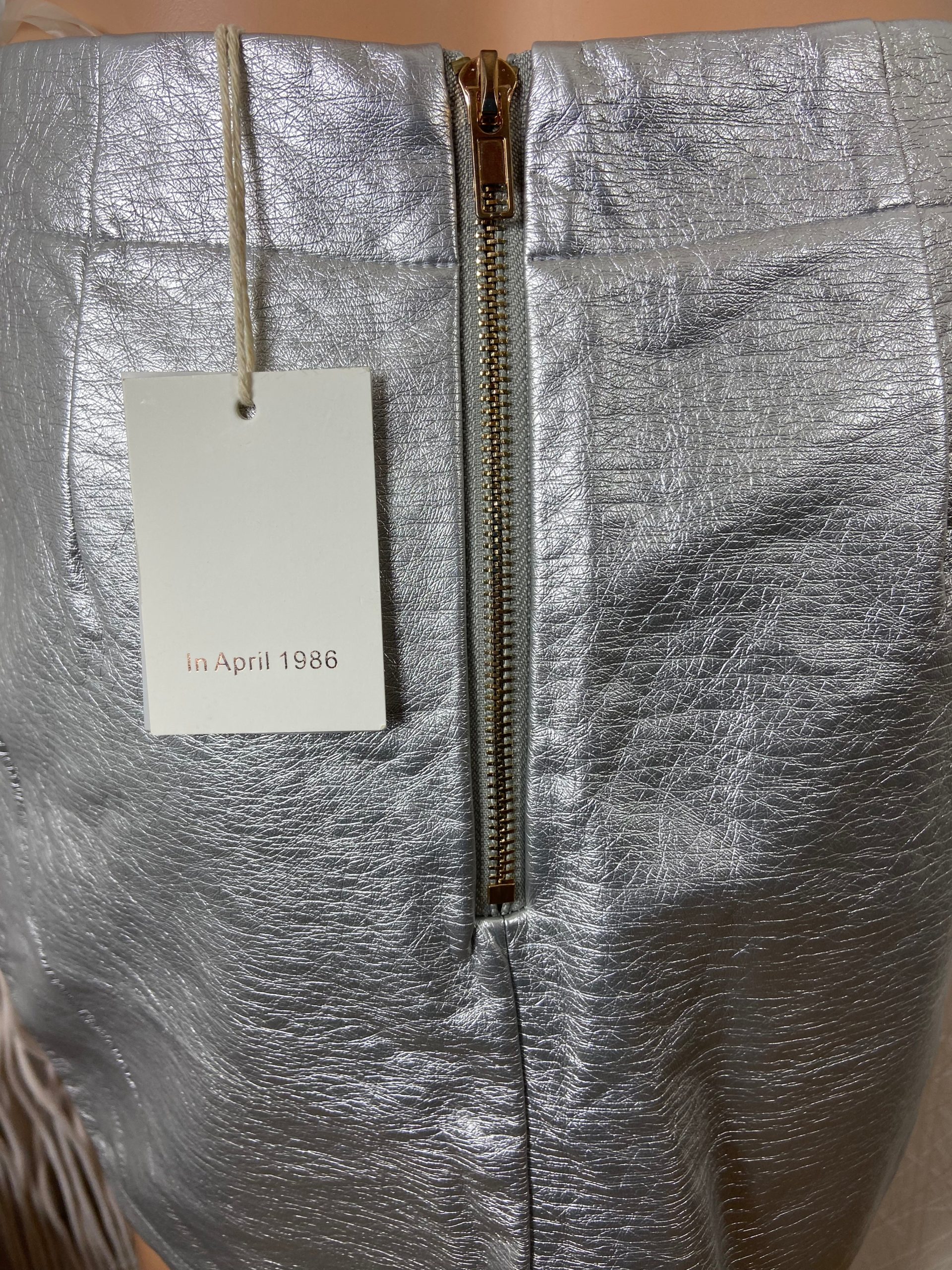 Mini jupe argentée de la marque In April 1986.