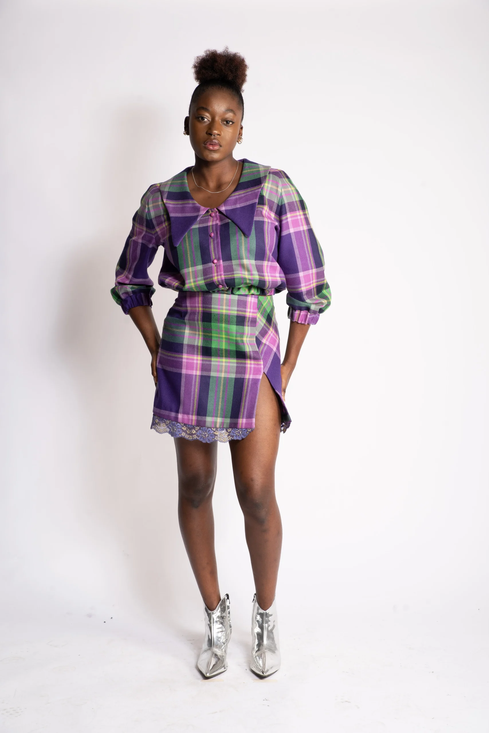 Mini jupe en laine vierge d’Écosse.