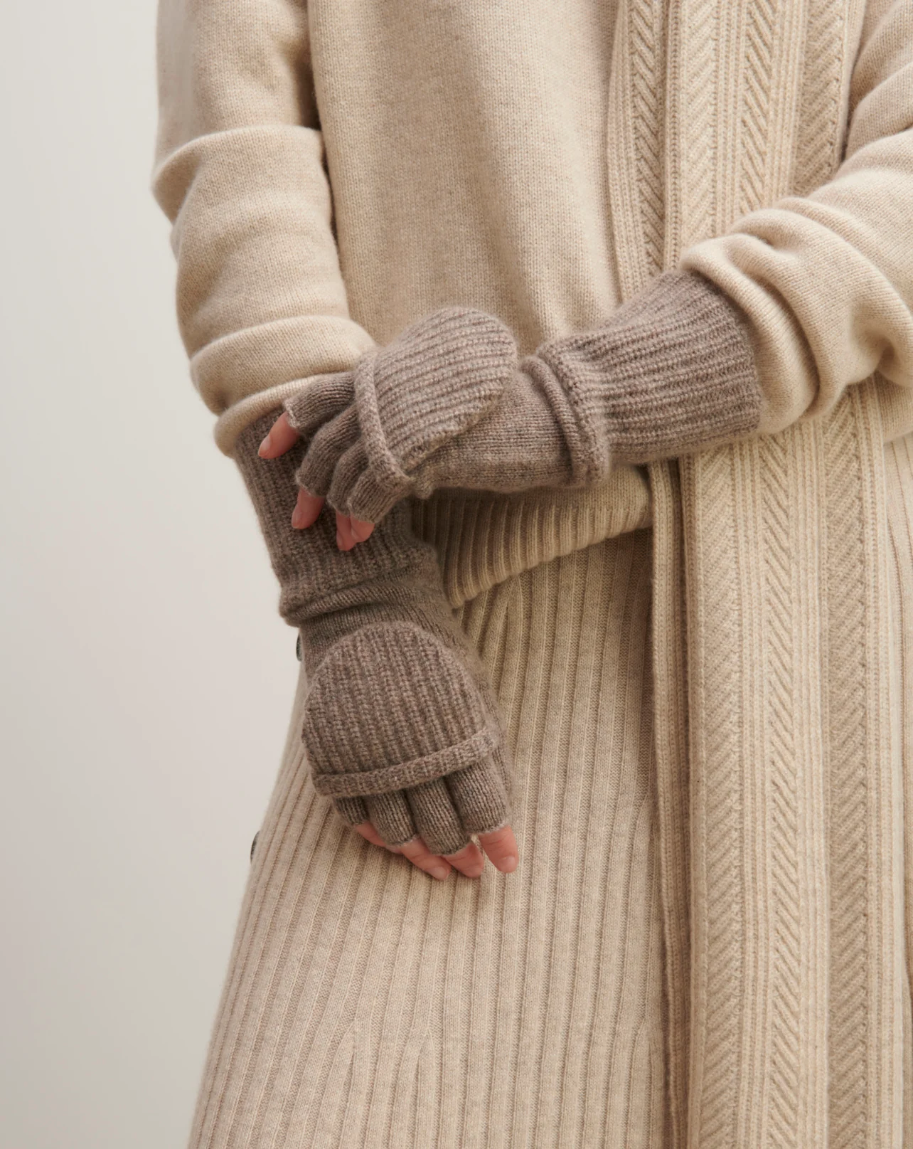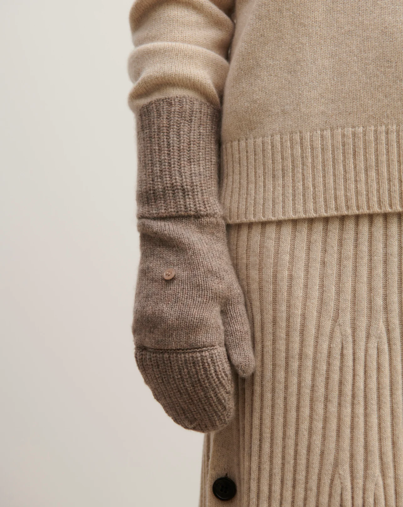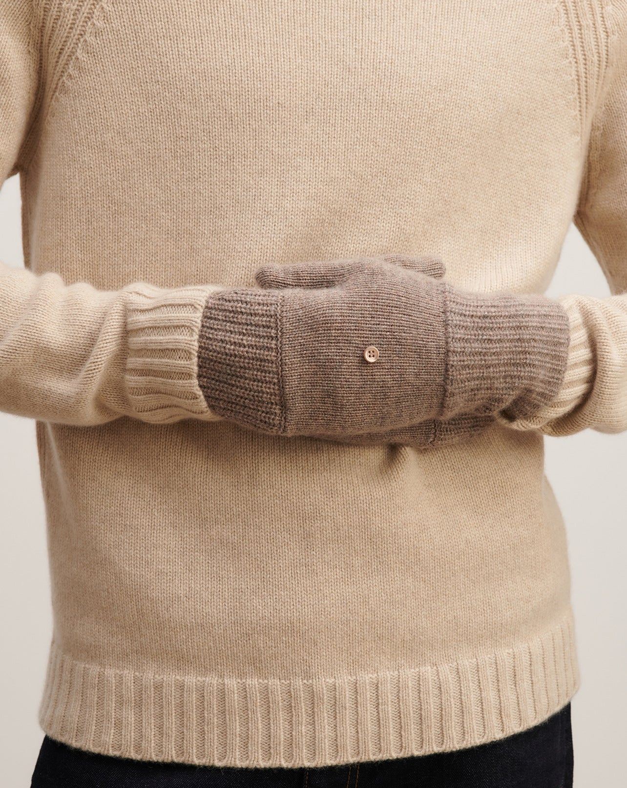 Mitaines en cachemire avec pouce et rabat.