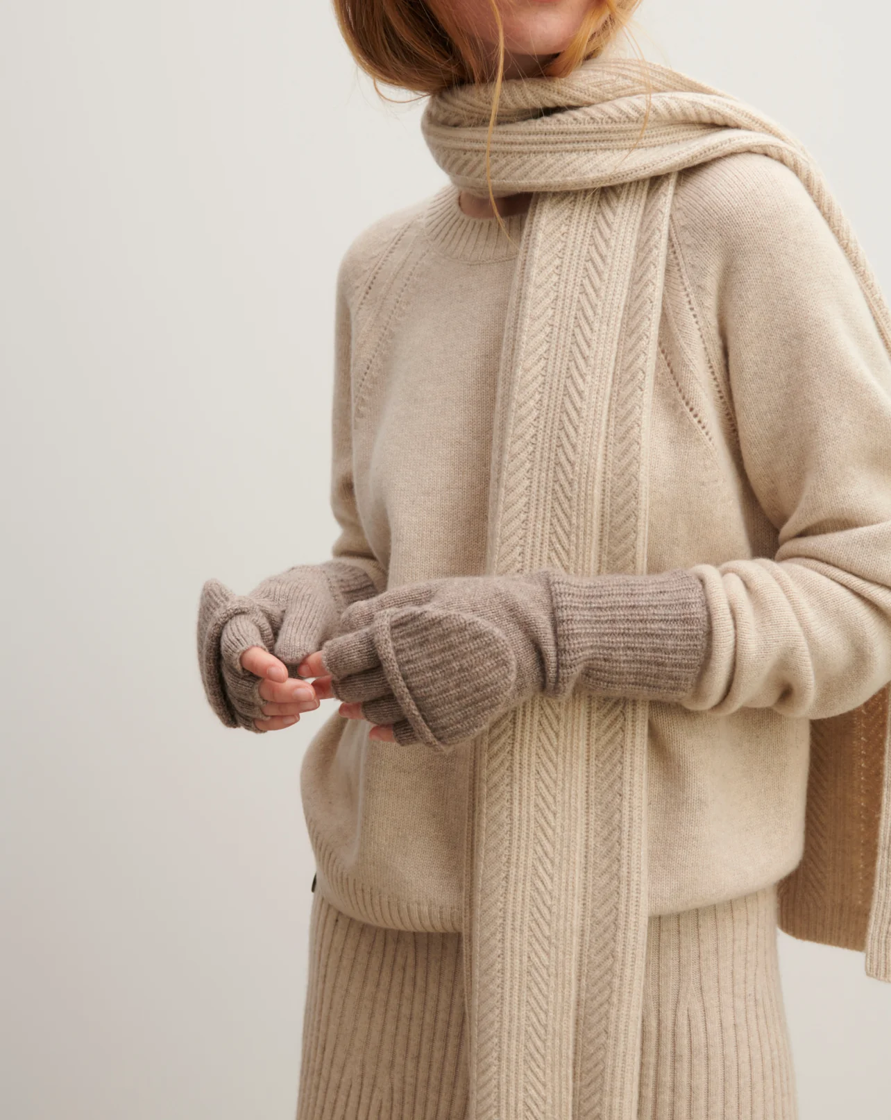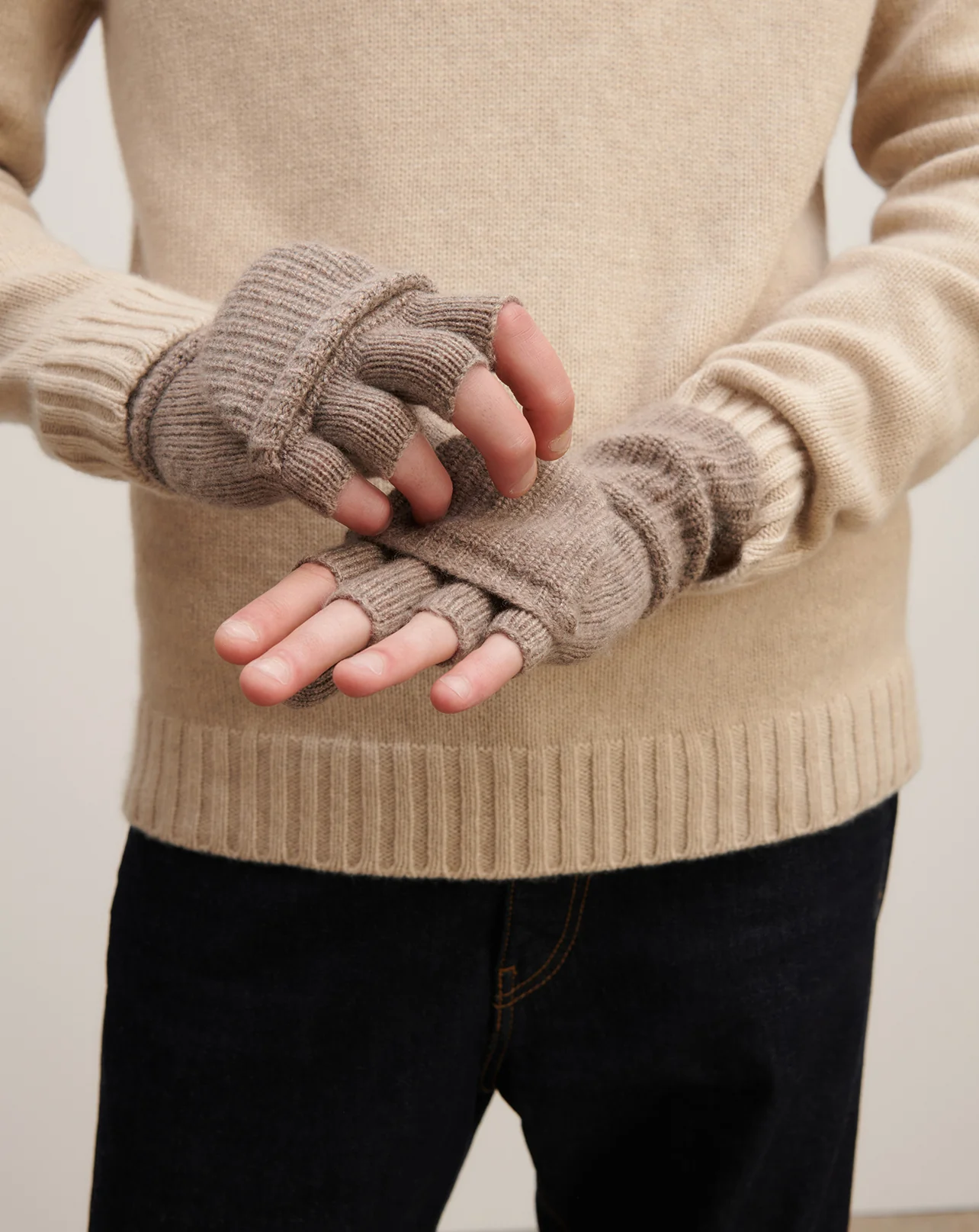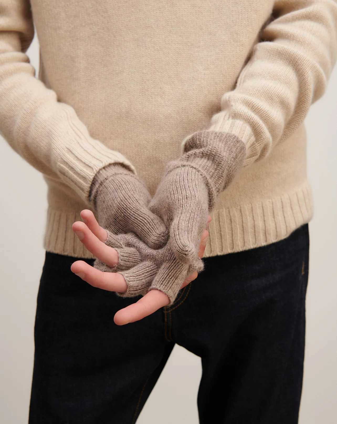 Mitaines en cachemire avec pouce et rabat.