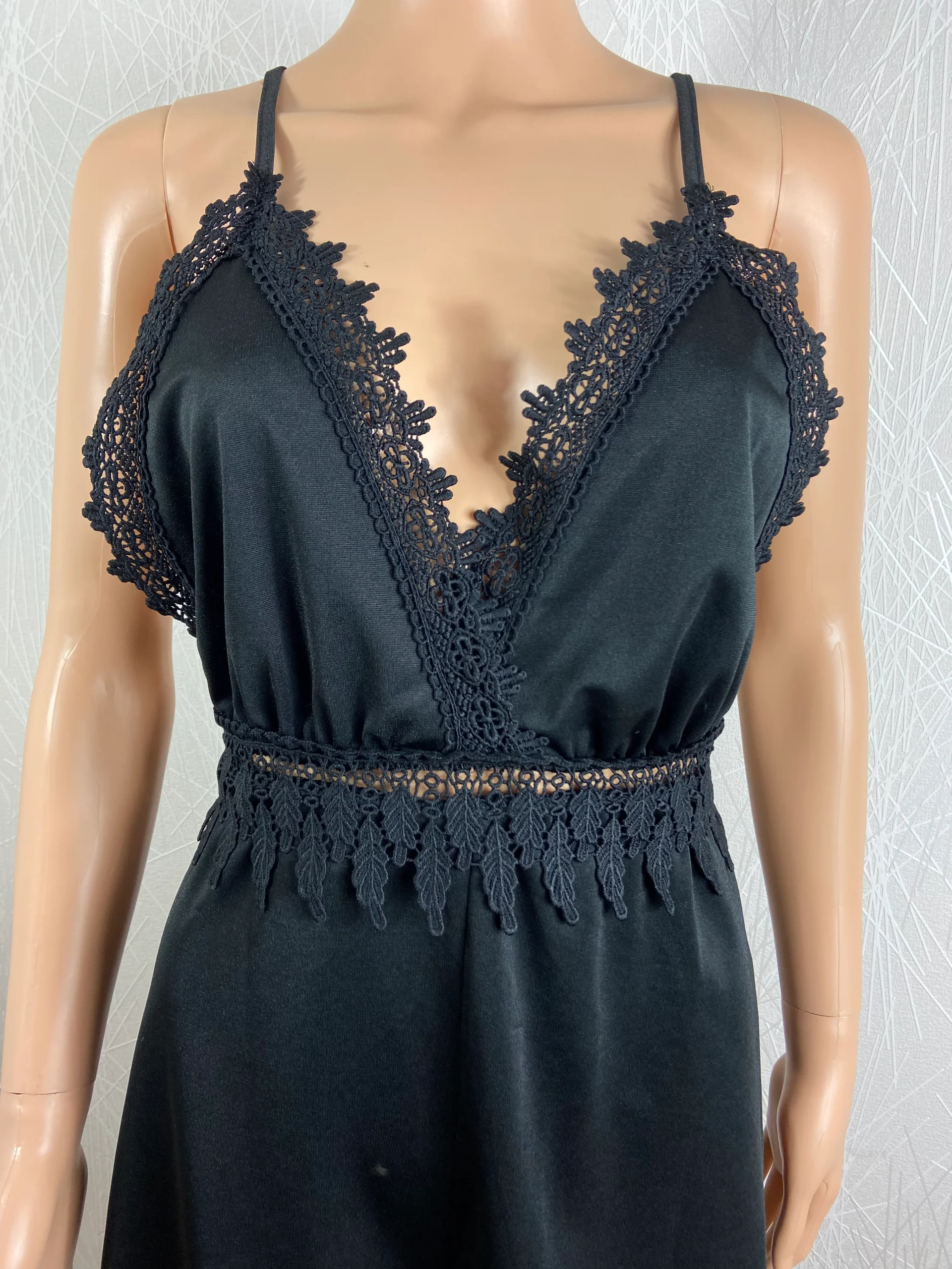 Cette jolie nuisette sexy a un tissu satin doux au toucher