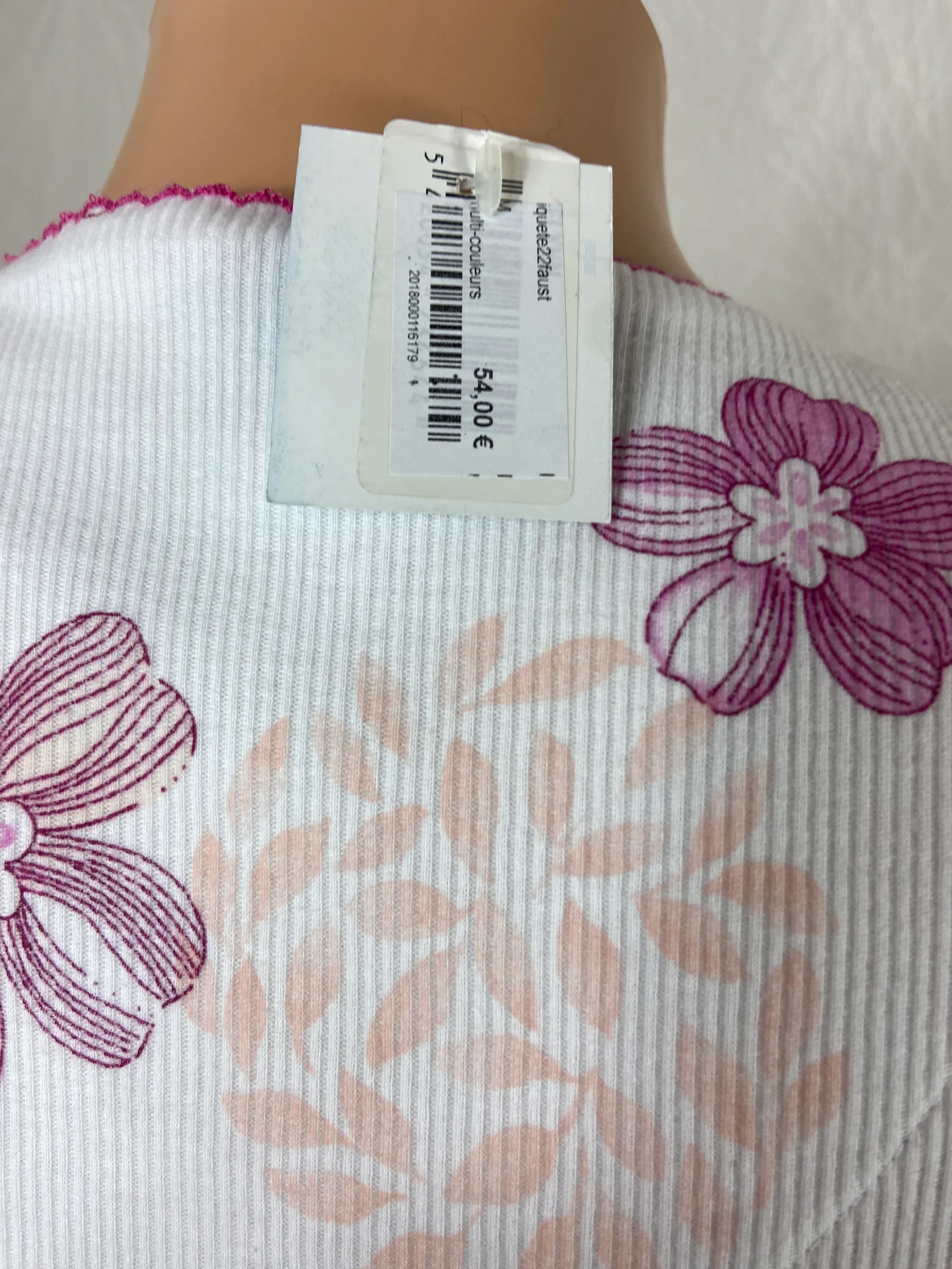 Nuisette blanche coton motif fleuri manches courtes Peignora