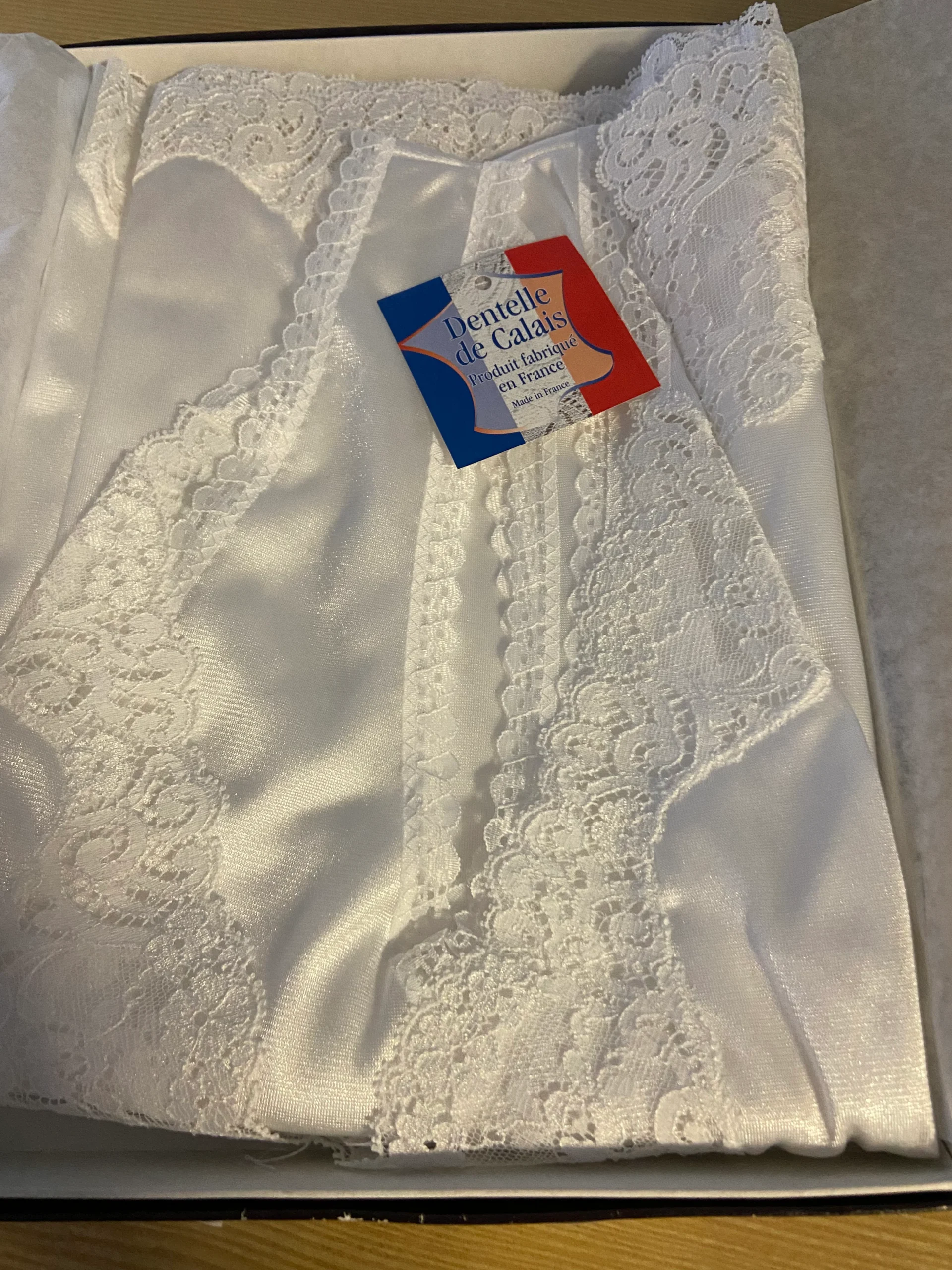 Nuisette blanche tissu satin dentelle broderie modèle Valentine Privilège