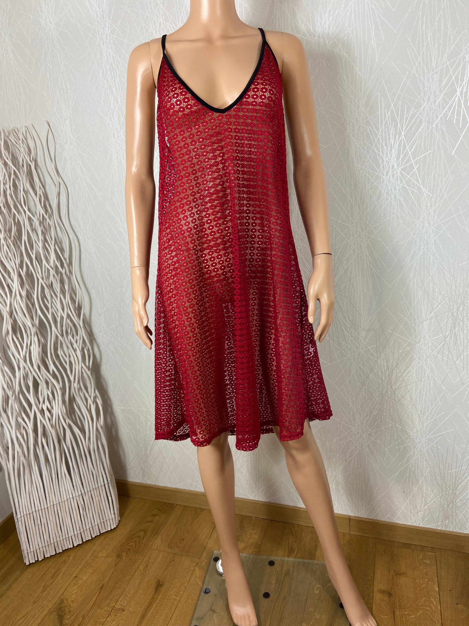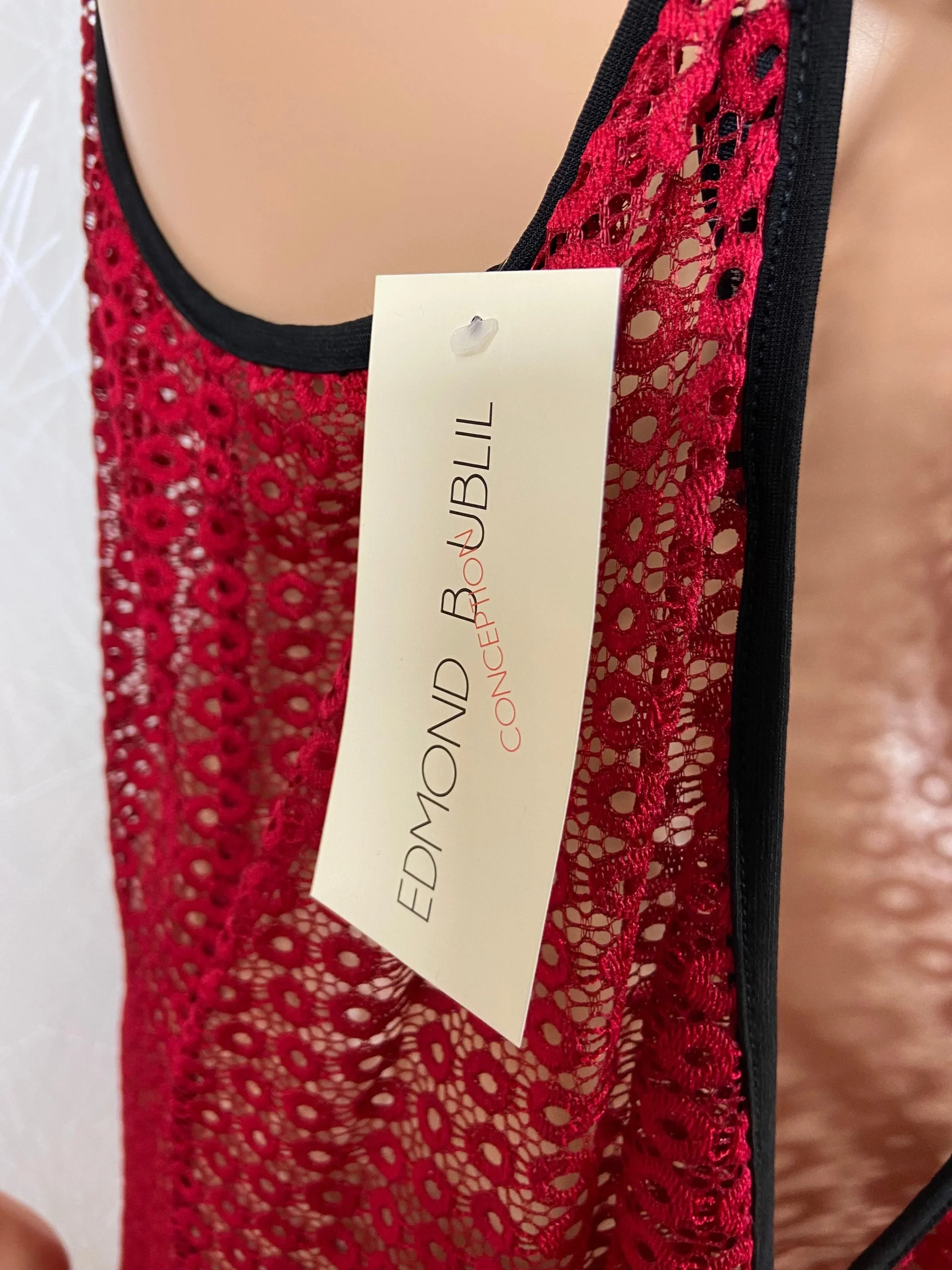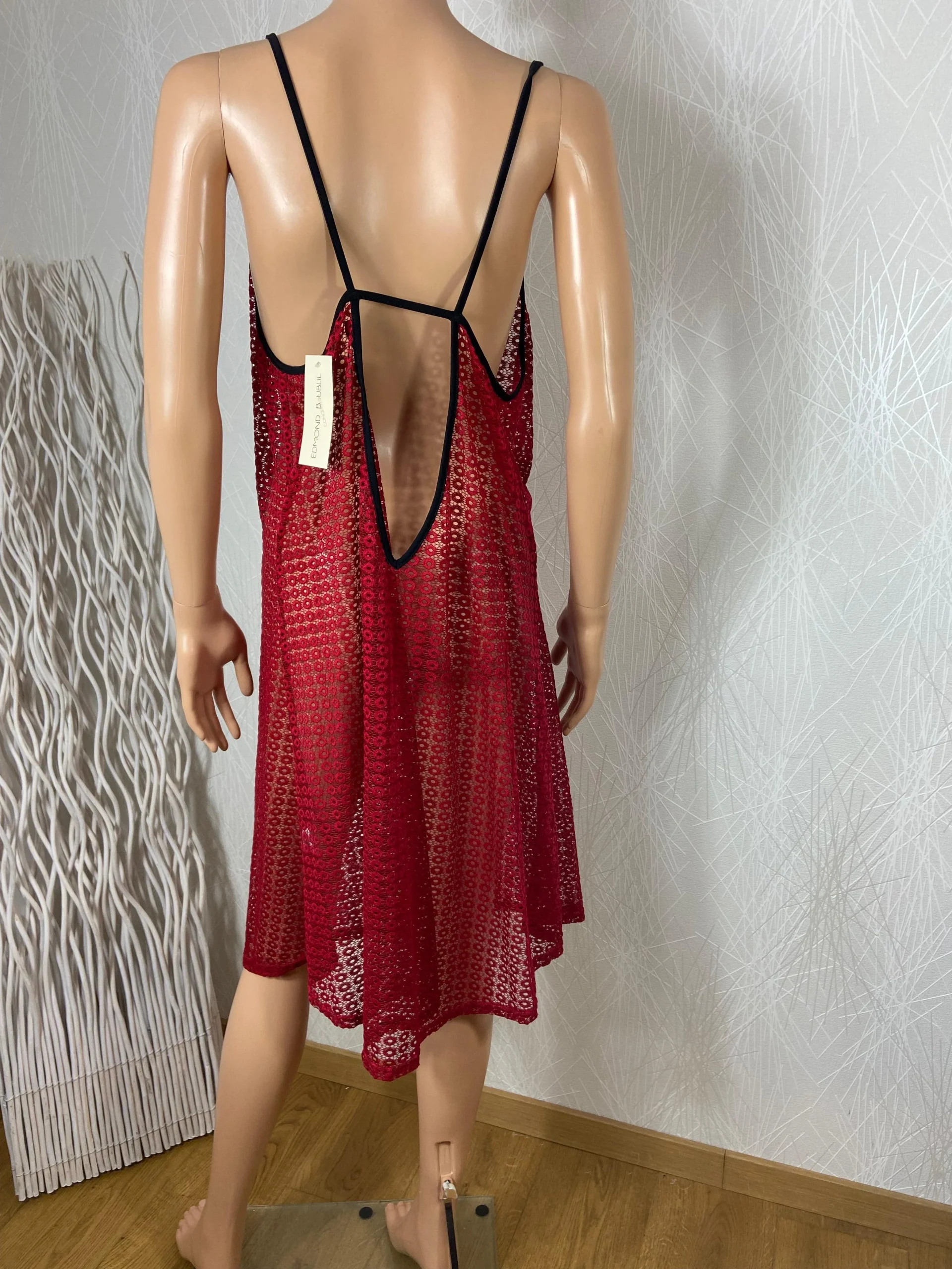 Nuisette courte rouge transparente sexy broderies Edmond Boublil